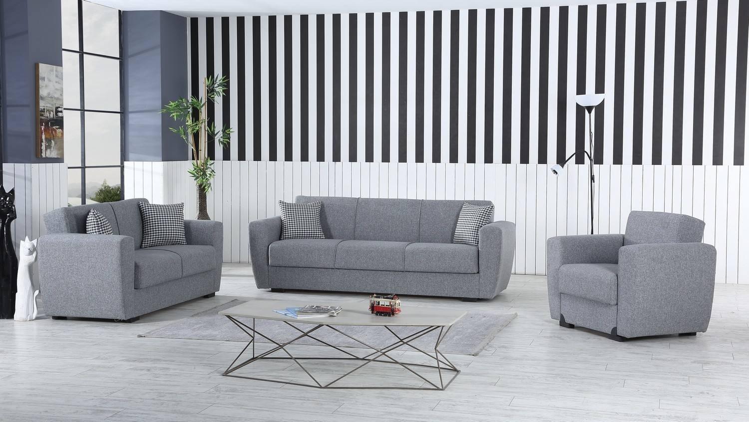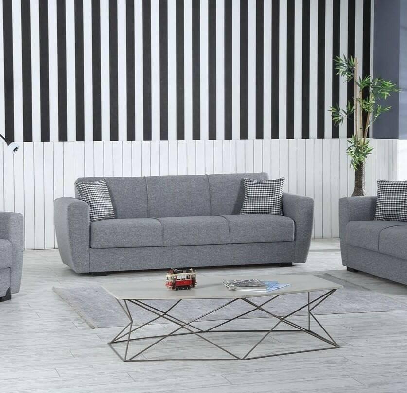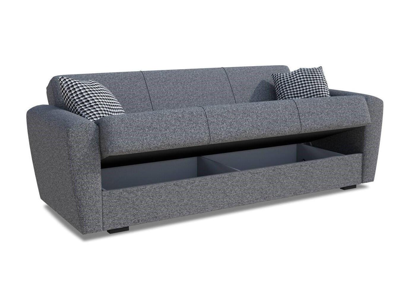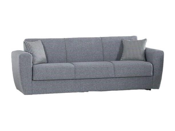 Canapé Escobar, Canapé conteneur 3 places linéaire, Canapé de salon en tissu rembourré avec ouverture clic-clac, 223x84xh80 cm, Gris