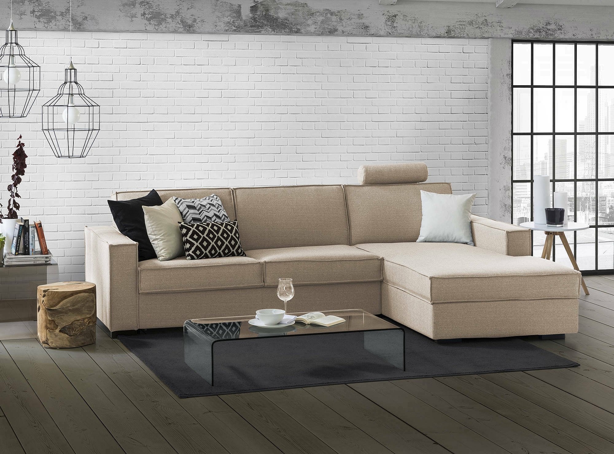 Canapé fixe Dgodea, Canapé d'angle, 100% Made in Italy, Canapé de salon avec, Péninsule conteneur droite, avec accoudoirs fins, Cm 260x95h90, Beige