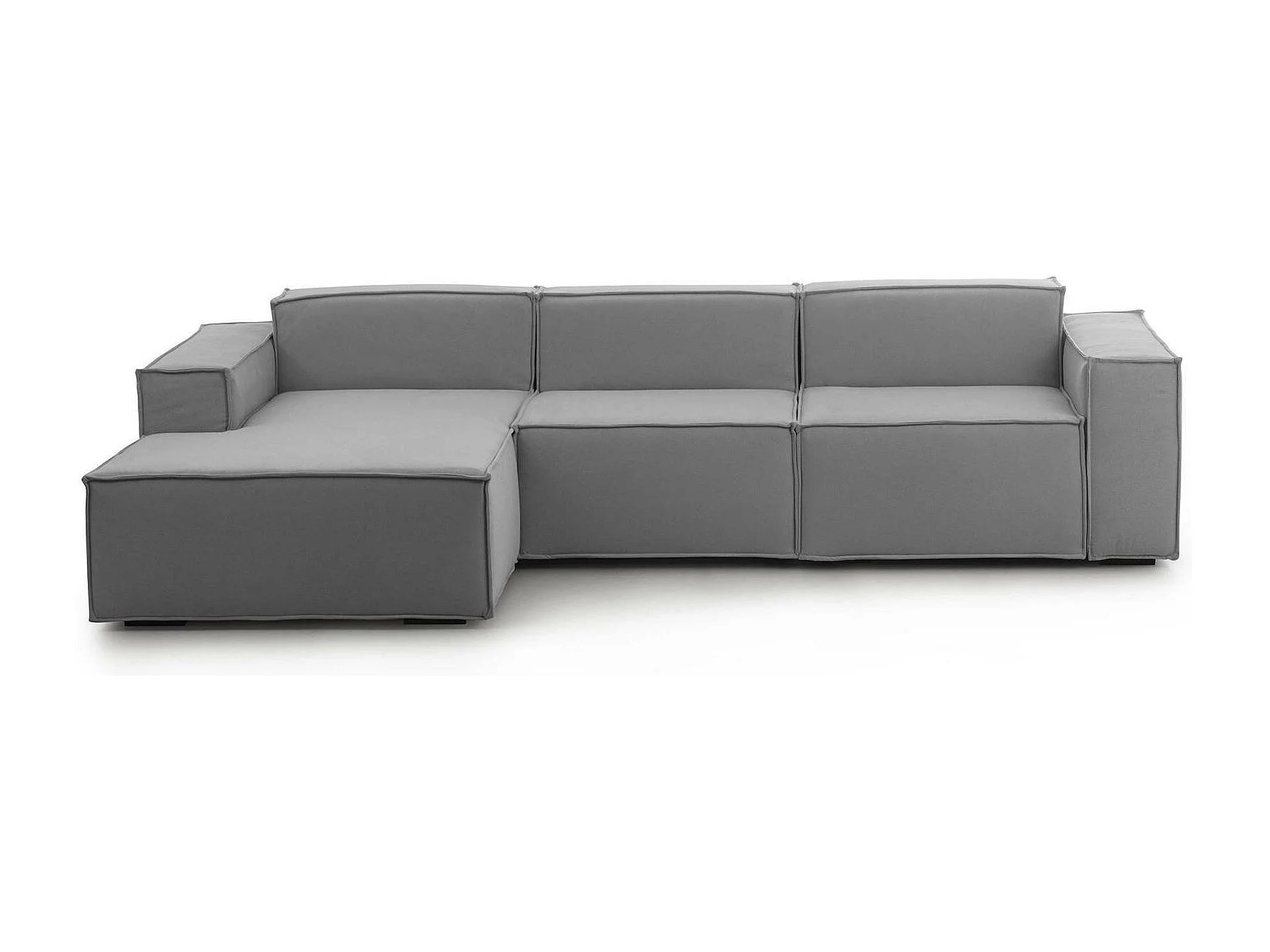 Canapé fixe Jessica, canapé modulable 3 places avec péninsule gauche, 100% Made in Italy, Canapé moderne en tissu, 300x170h70 cm, Gris