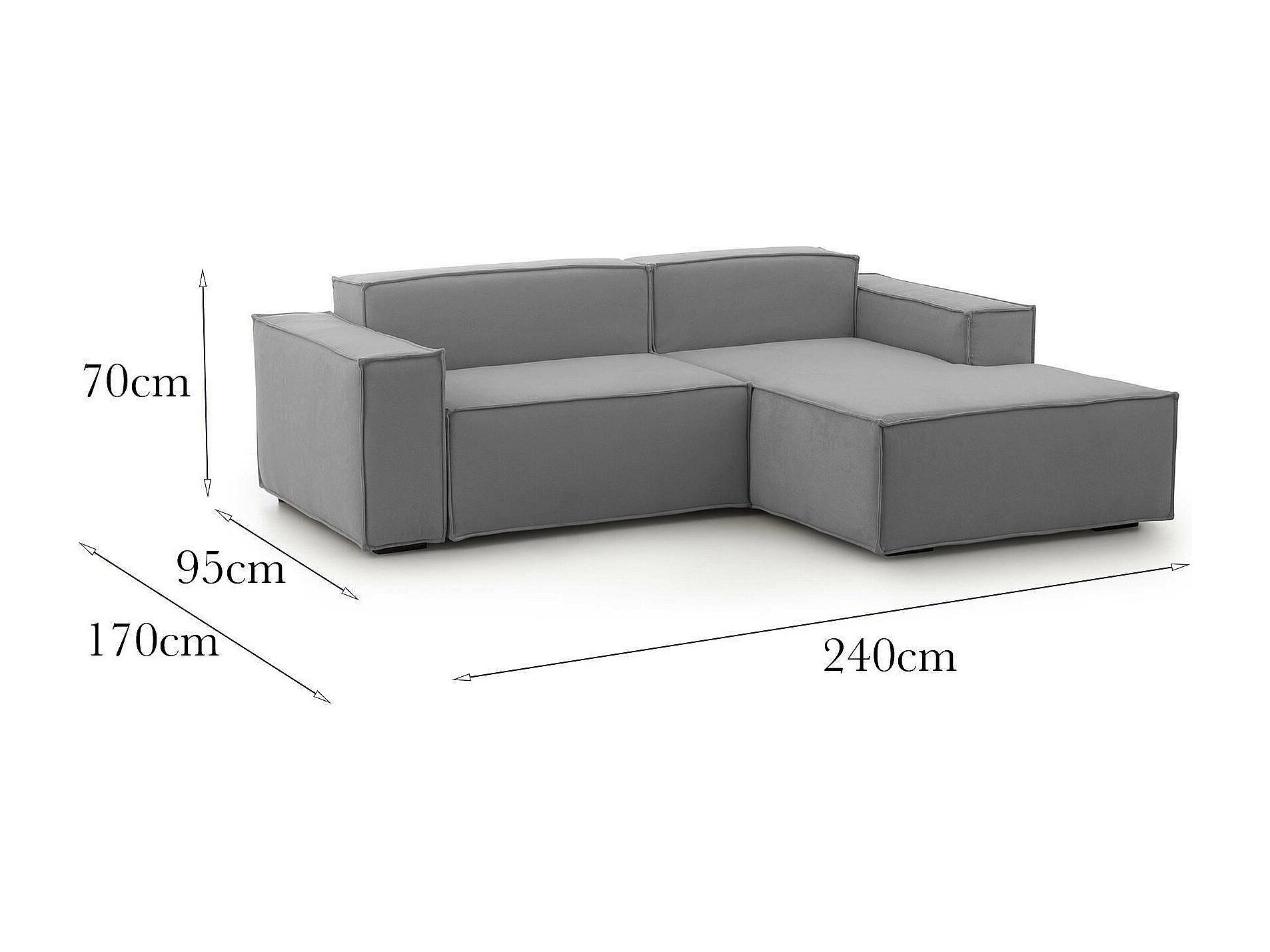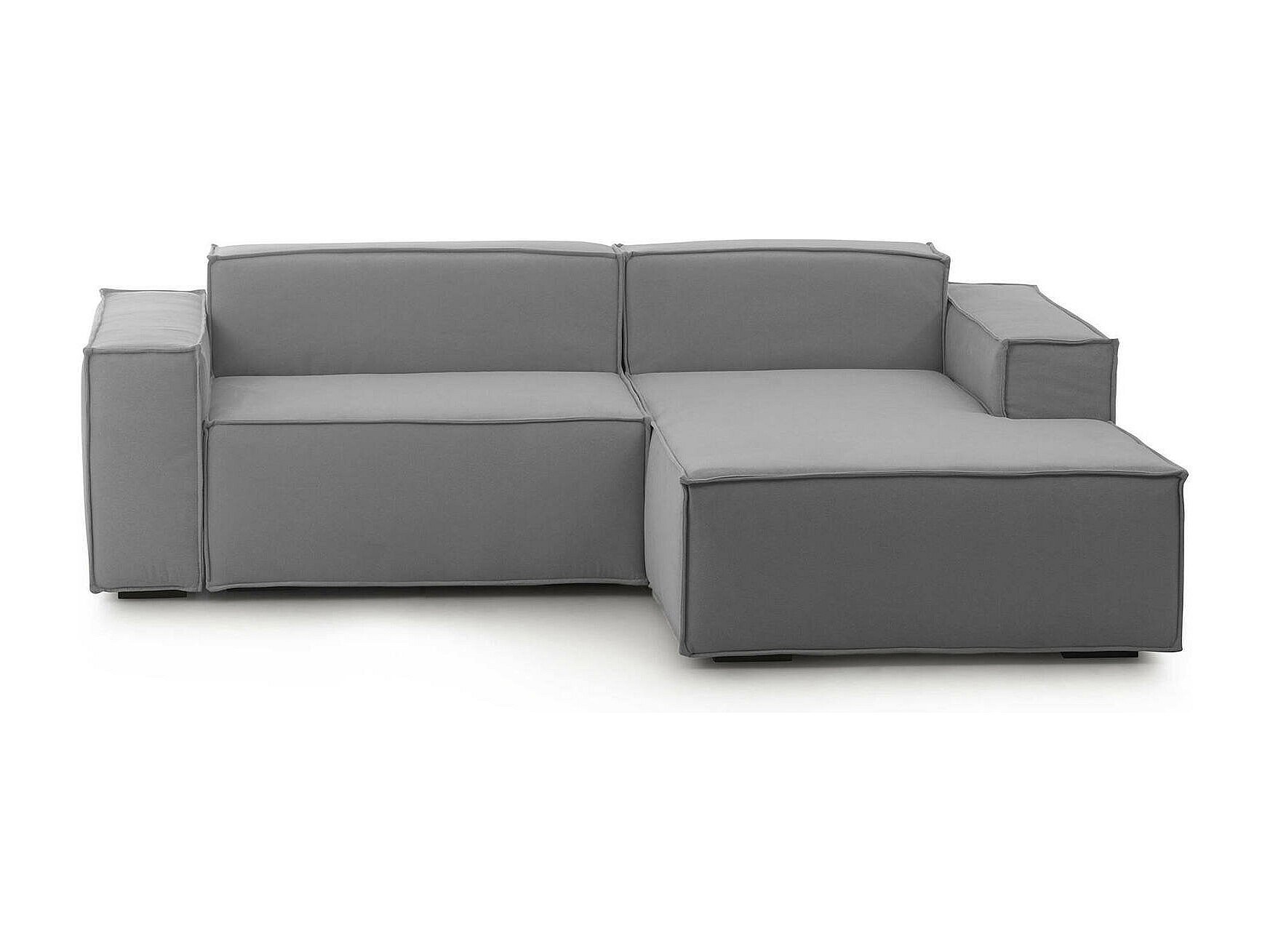 Canapé fixe Lidia, Grand canapé modulable 2 places avec péninsule droite, 100% Made in Italy, Canapé moderne en tissu, 240x170h70 cm, Gris