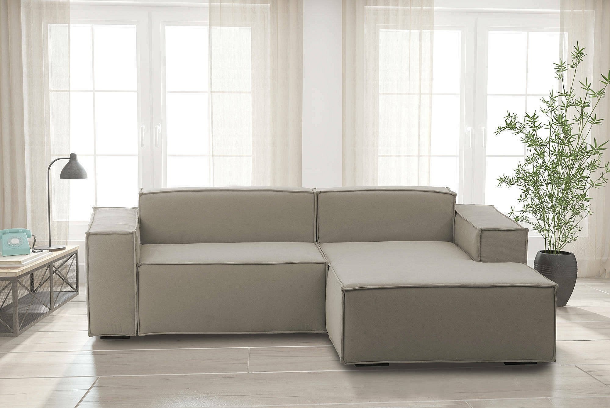 Canapé fixe Patrizia, canapé modulable 2 places avec péninsule droite, 100% Made in Italy, Canapé moderne en tissu, 220x170h70 cm, Taupe