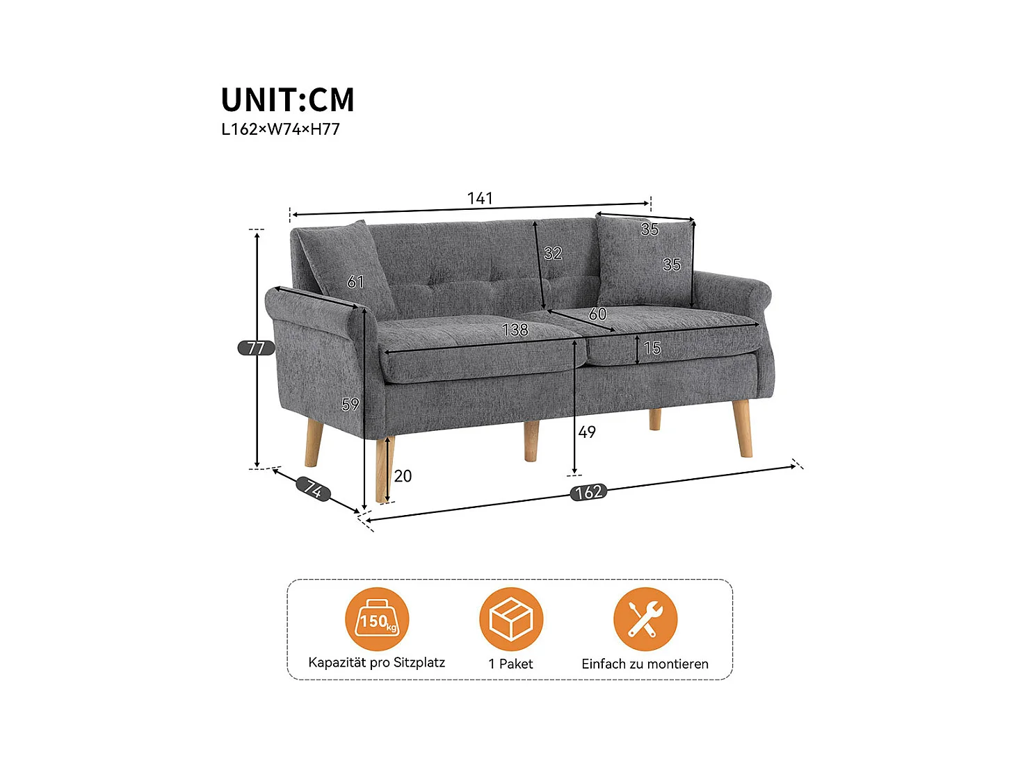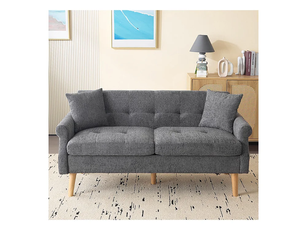 Canapé fixe rembourrés tissu chenille canapé deux places canapé rembourré canapé avec coussins épais gris