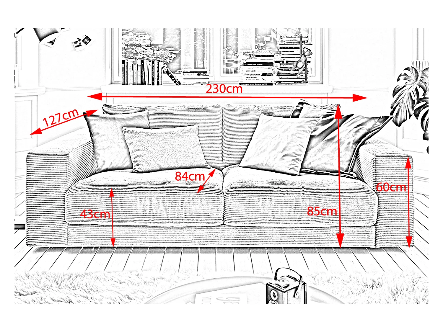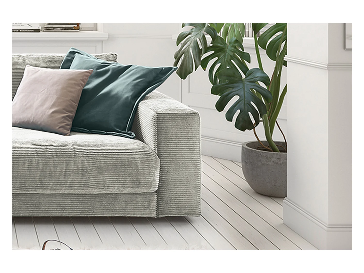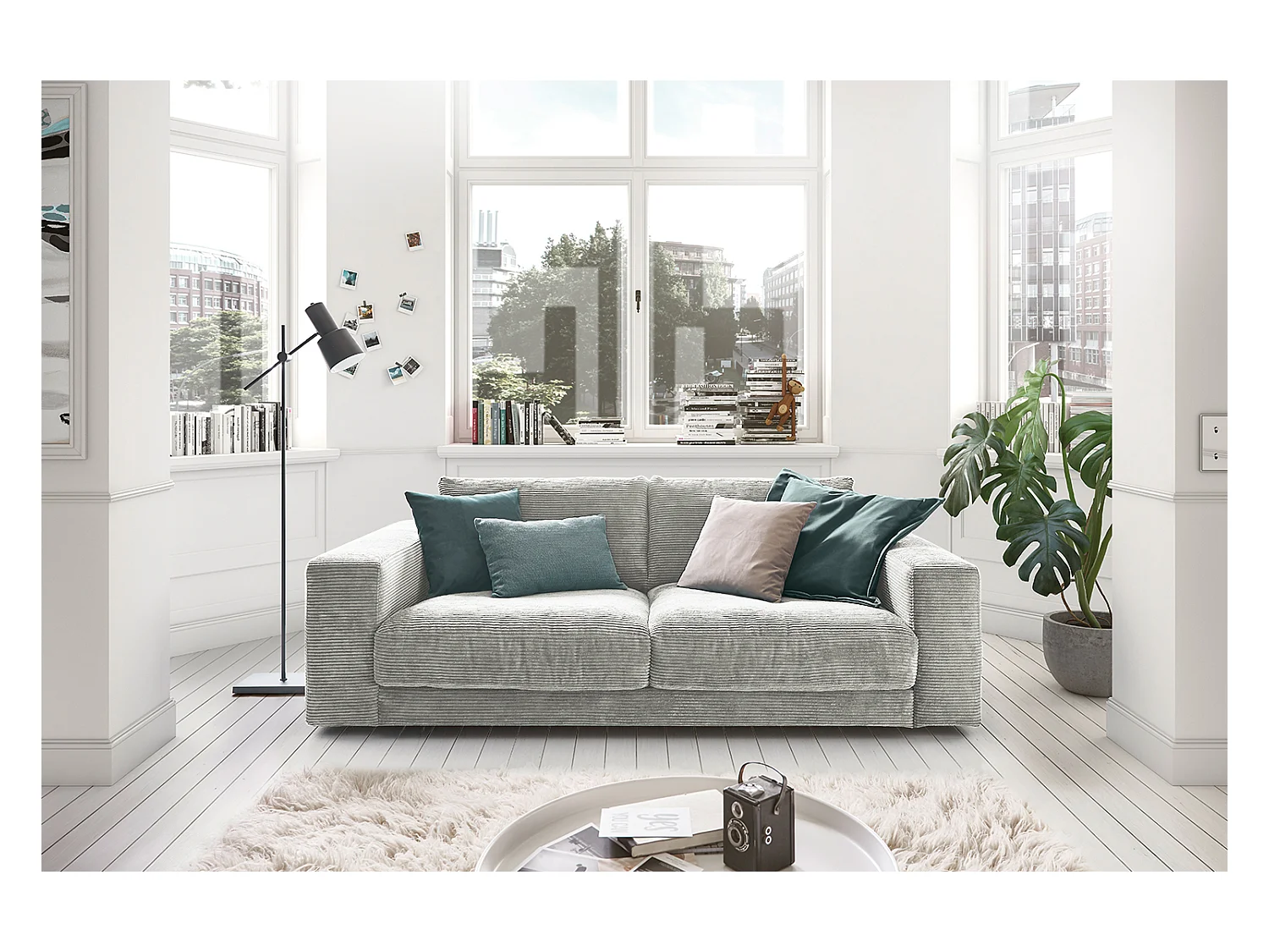 Canapé - gris clair Velours côtelé - MADELINE