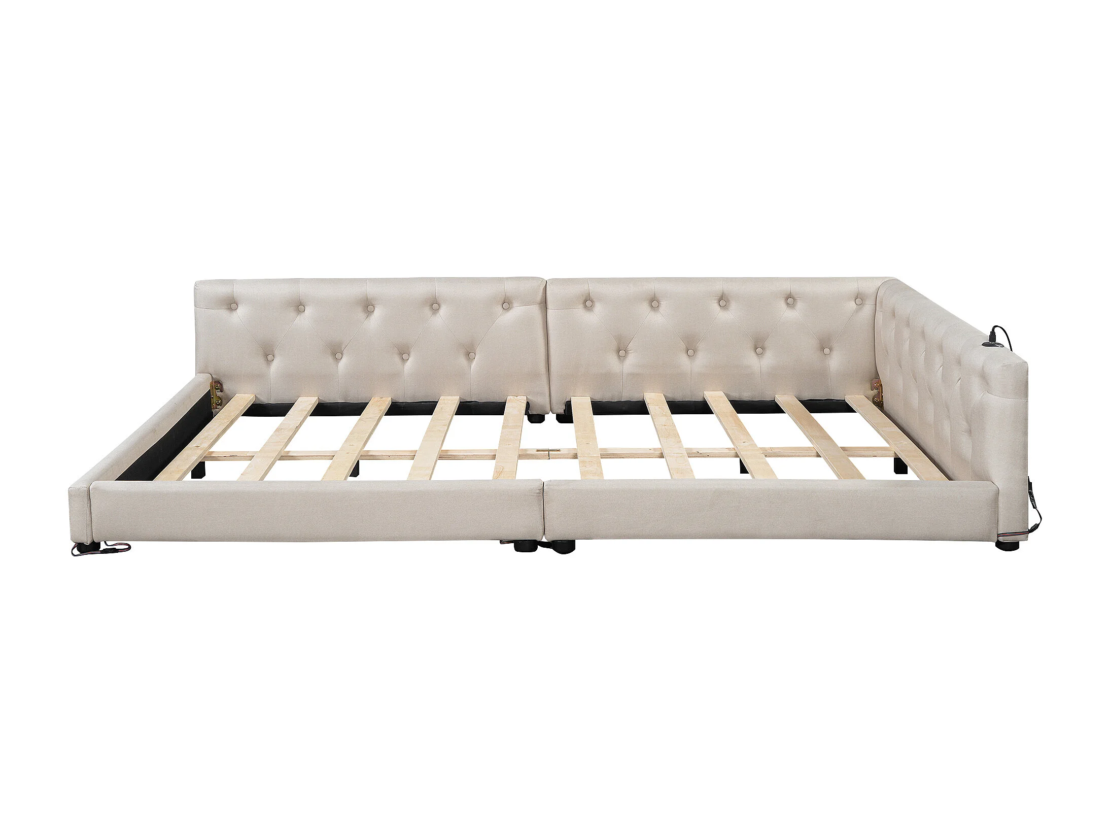 Canapé-lit 140x200 cm, éclairage d'ambiance avec télécommande, tête de lit capitonnée, Usb+Typ-c, lin, beige