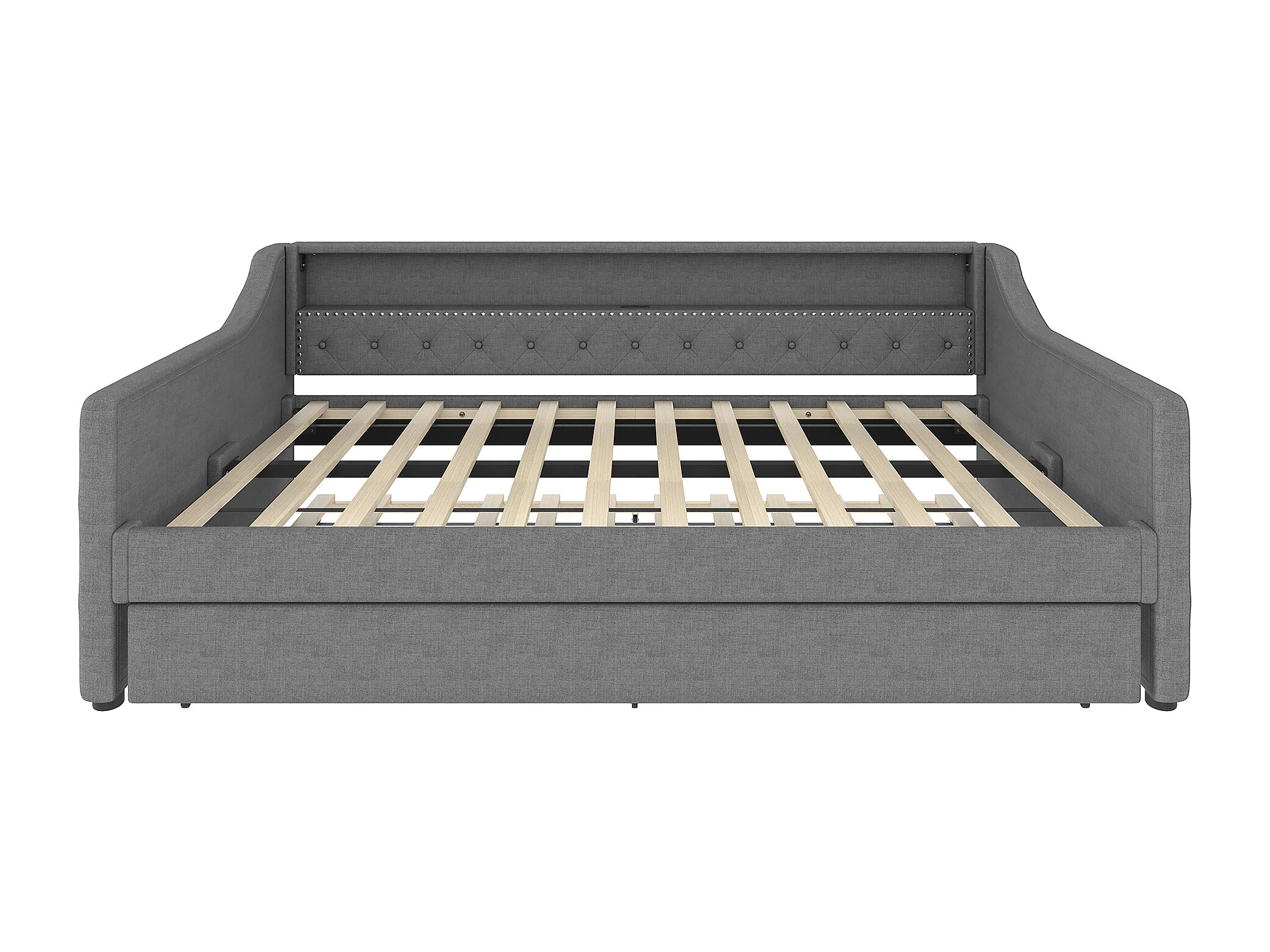 Canapé-lit 90 x 200 cm - avec éclairage LED - avec lit gigogne - avec USB - lin - avec sommier à lattes - gris