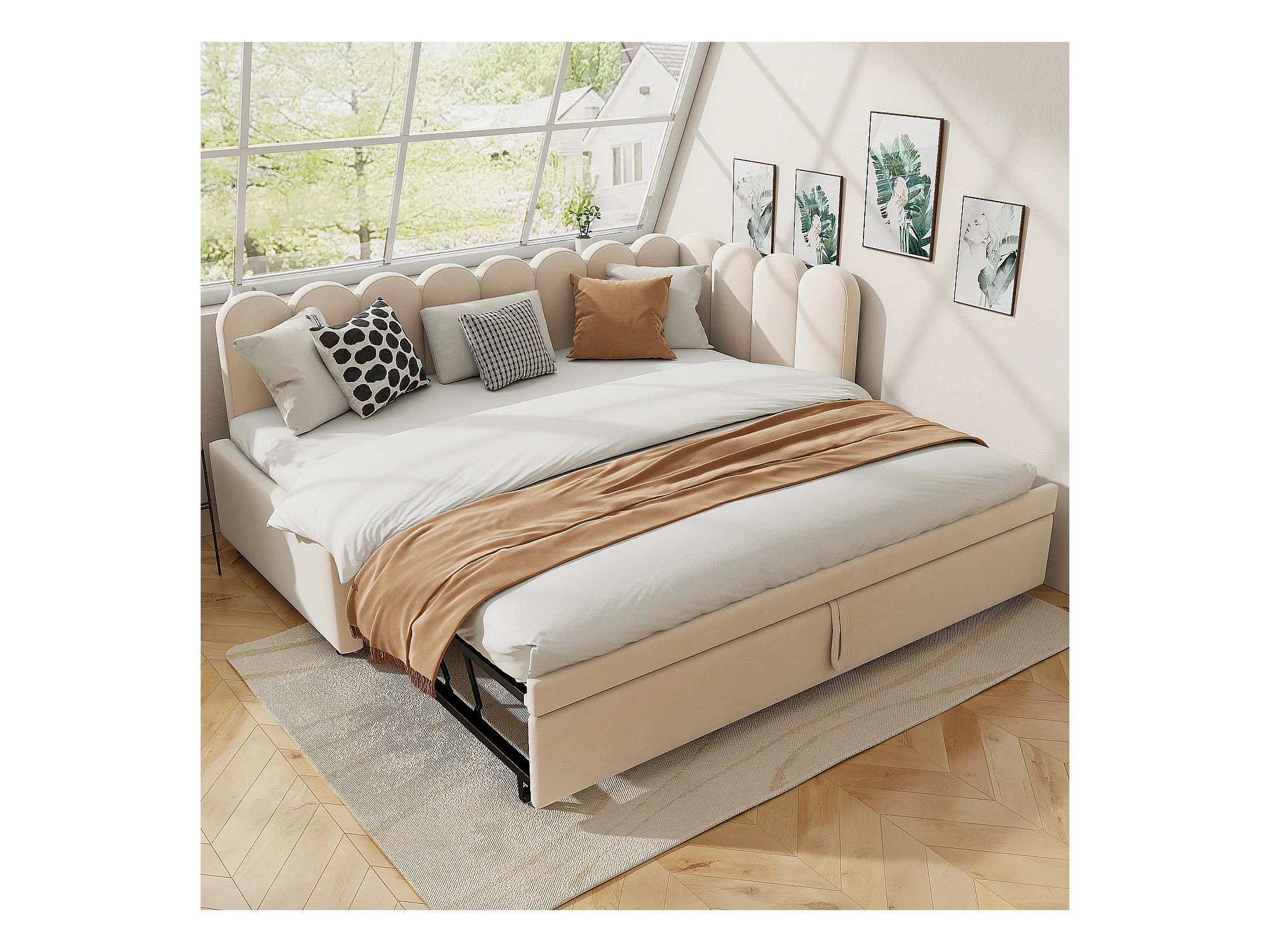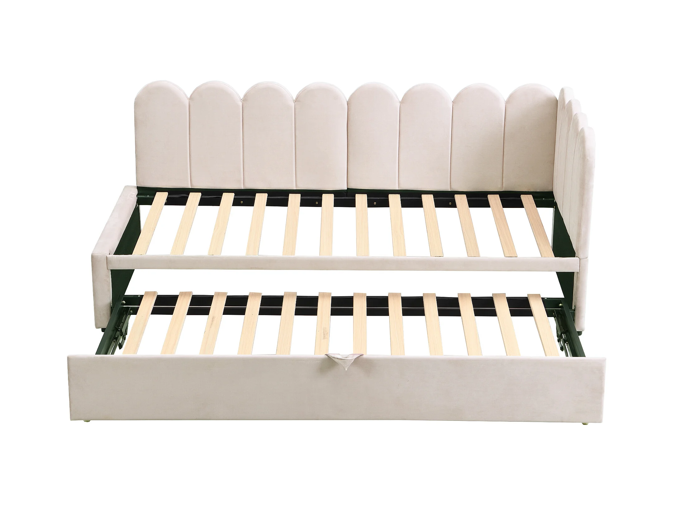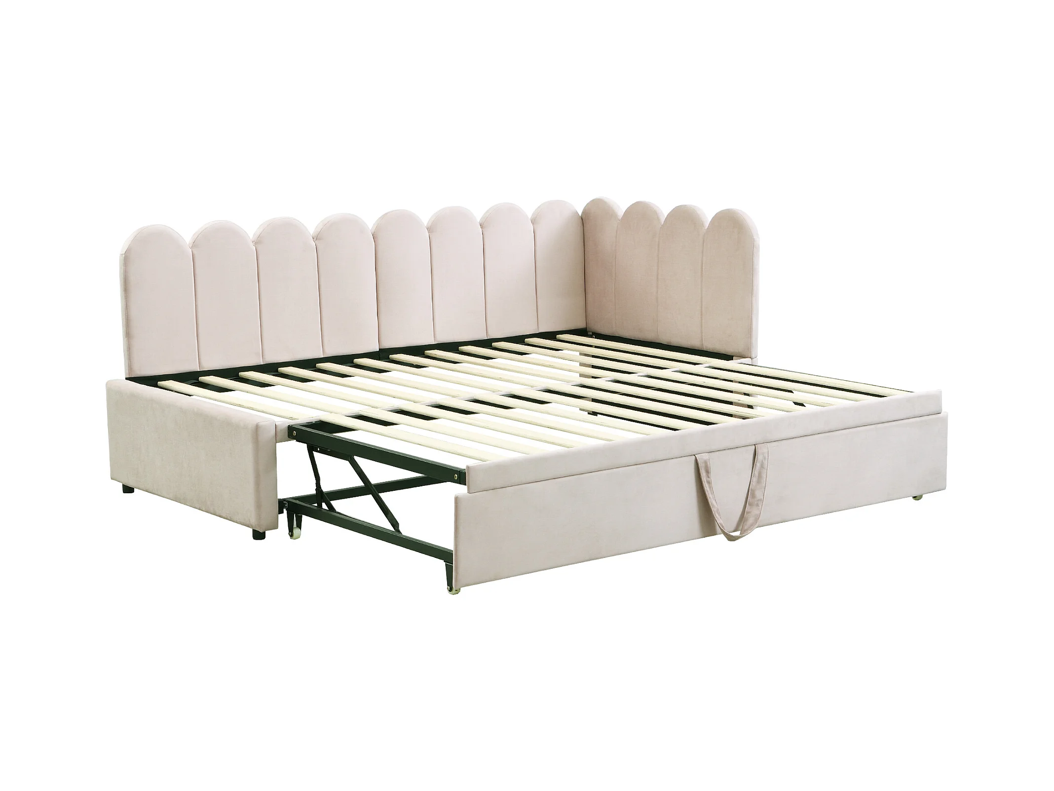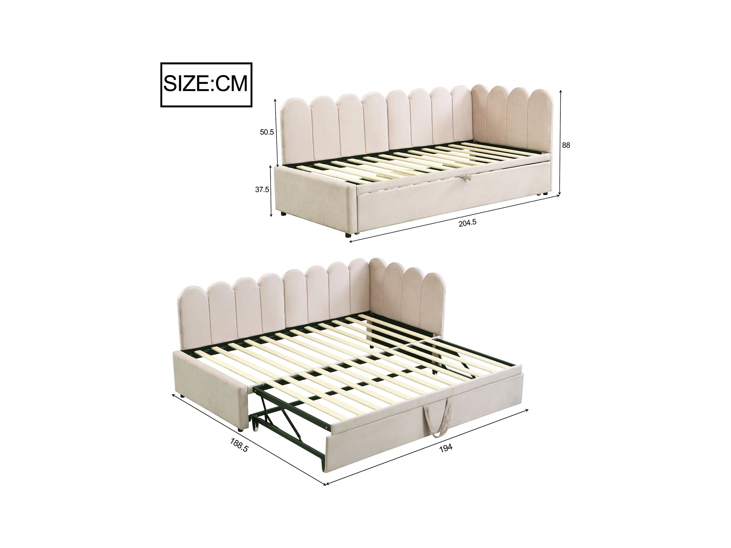 Canapé-lit 90x200cm - avec lit gigogne - velours - beige (matelas non inclus)