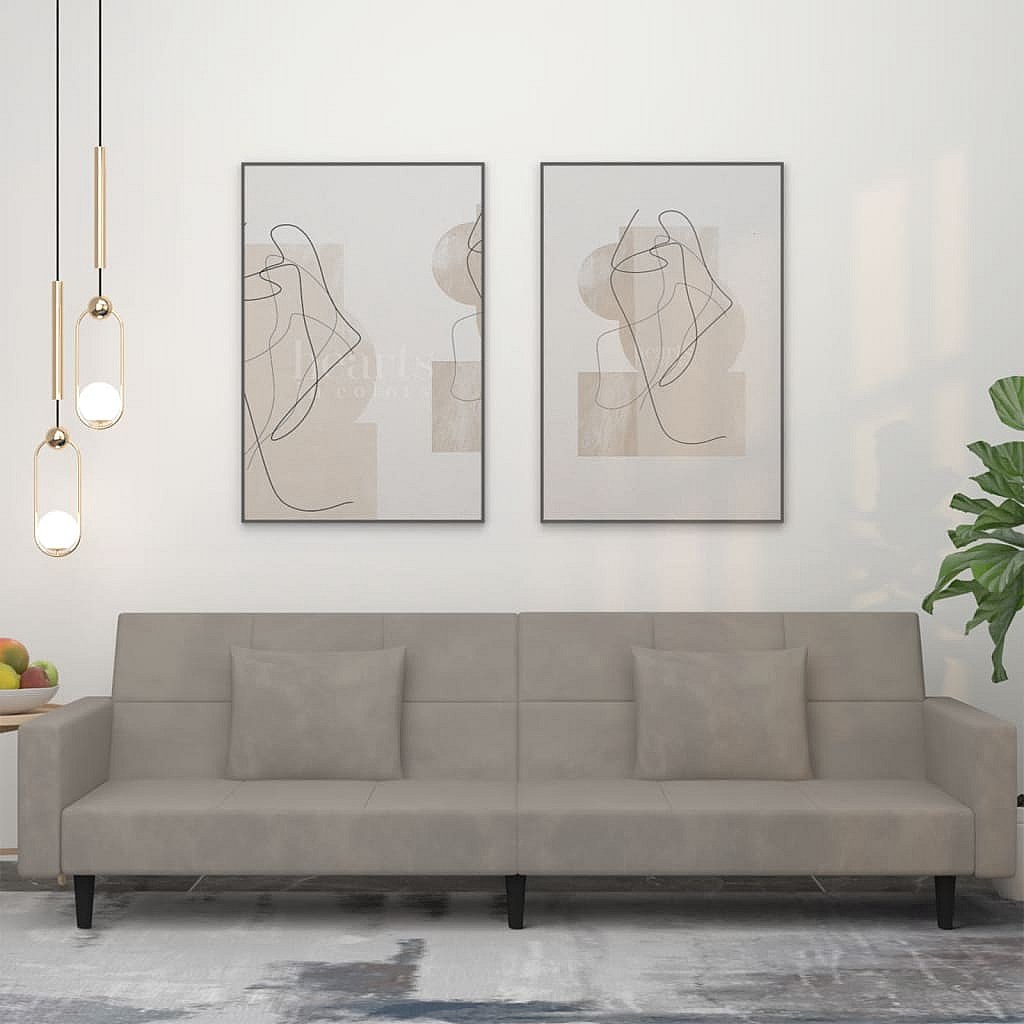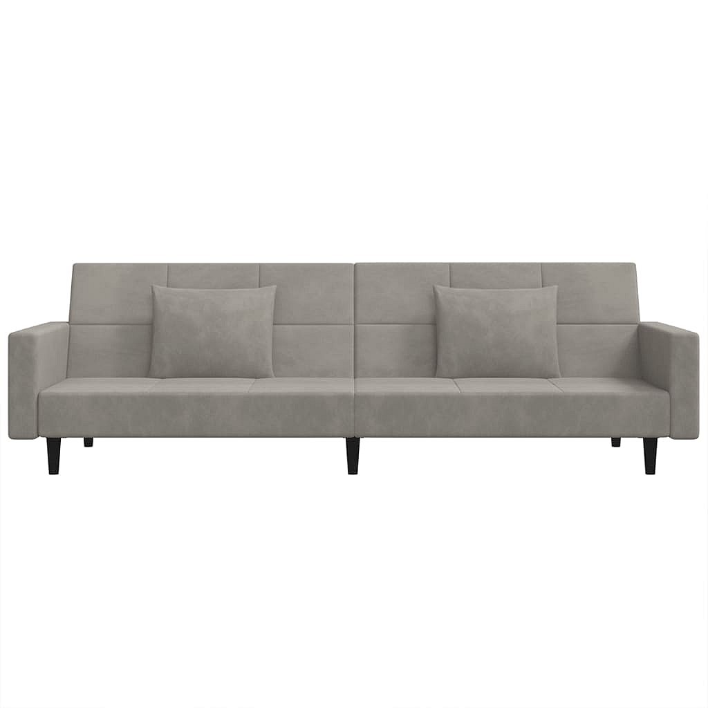 Canapé-lit à 2 places avec deux oreillers Gris clair Velours