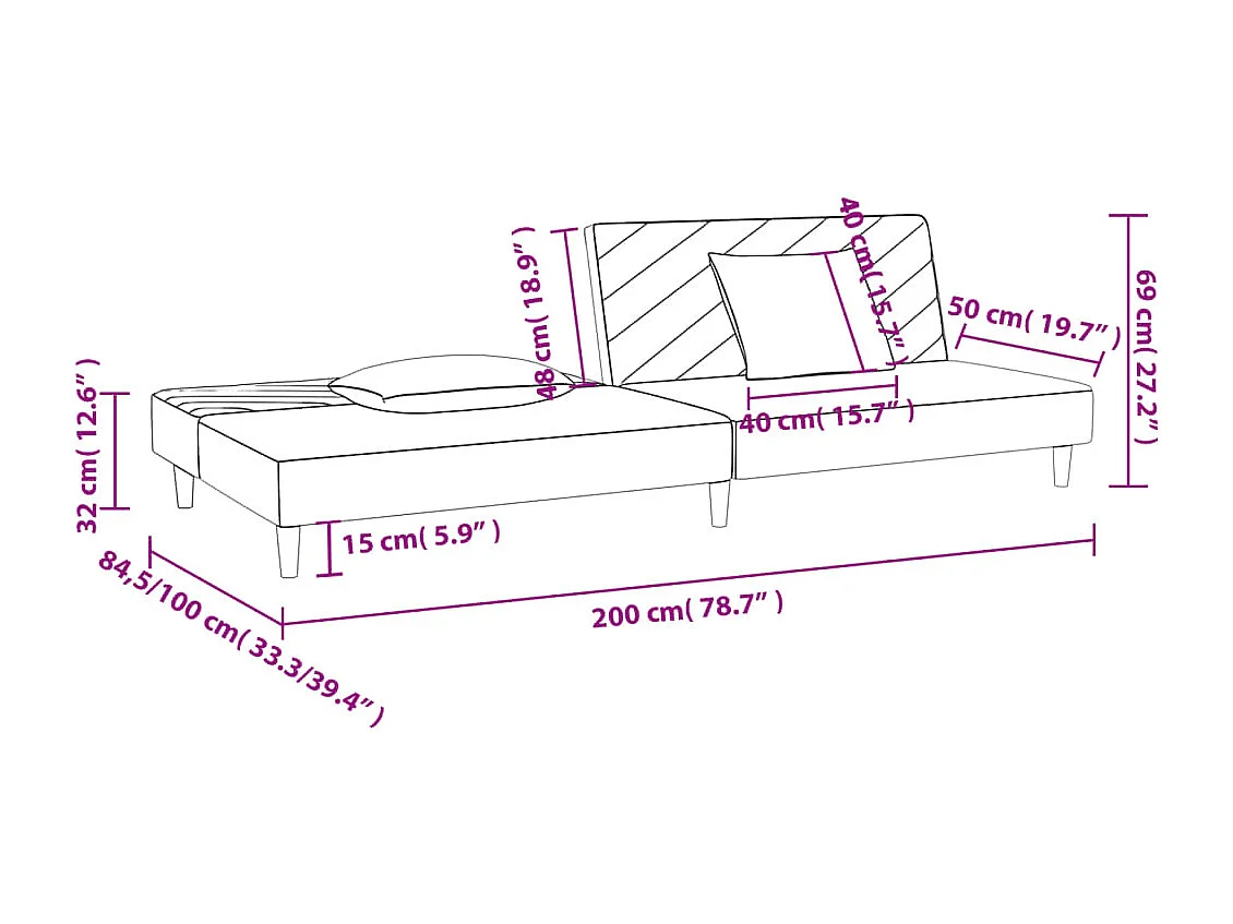 Canapé-lit à 2 places avec deux oreillers Gris foncé Tissu