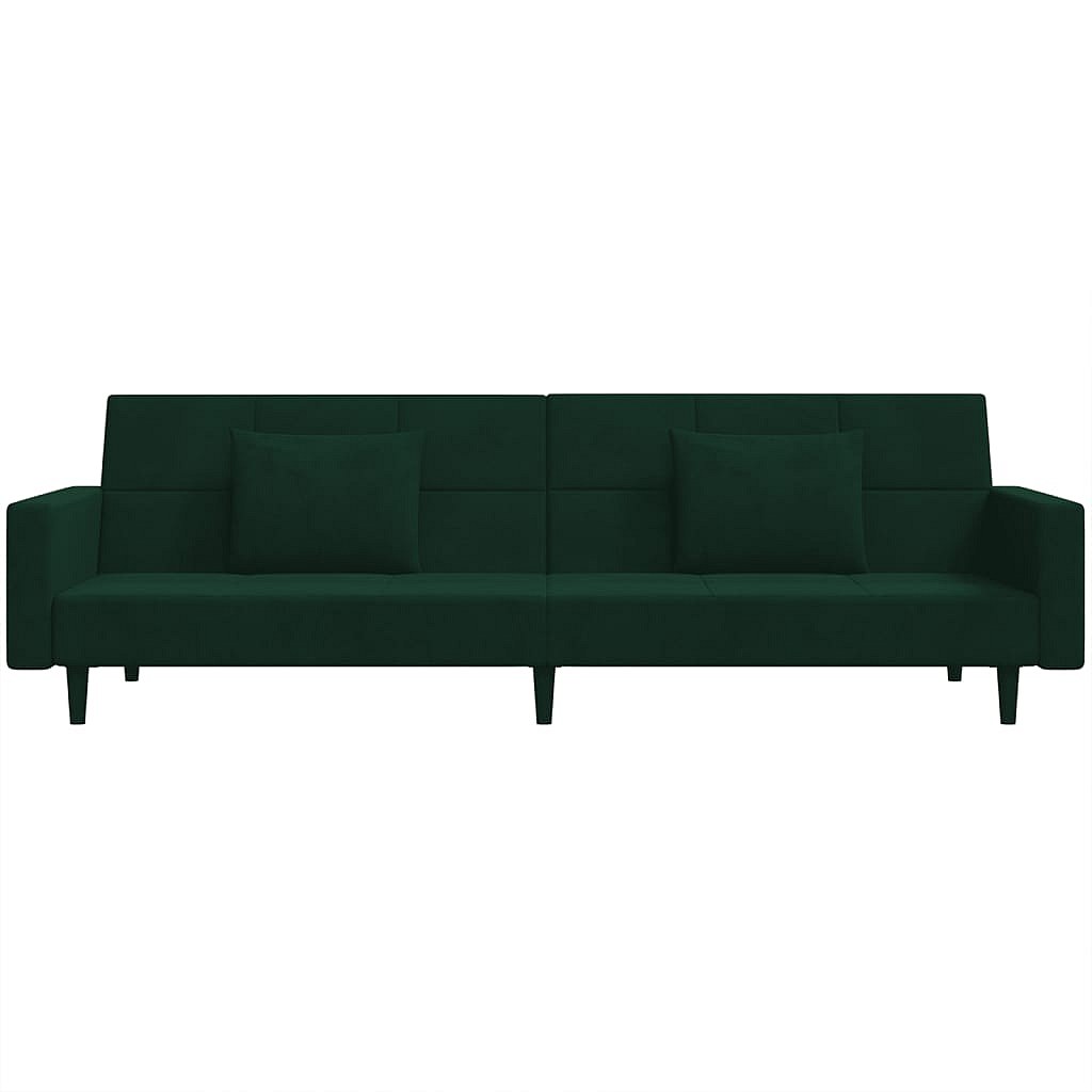 Canapé-lit à 2 places avec deux oreillers Vert foncé Velours