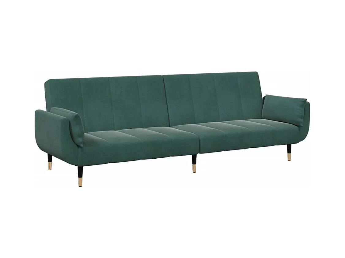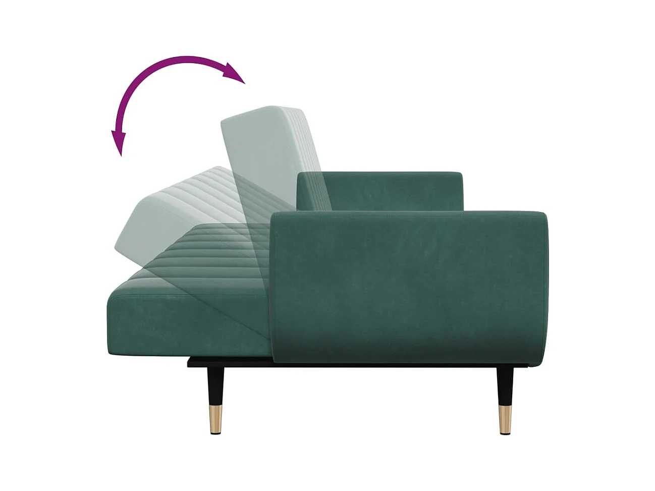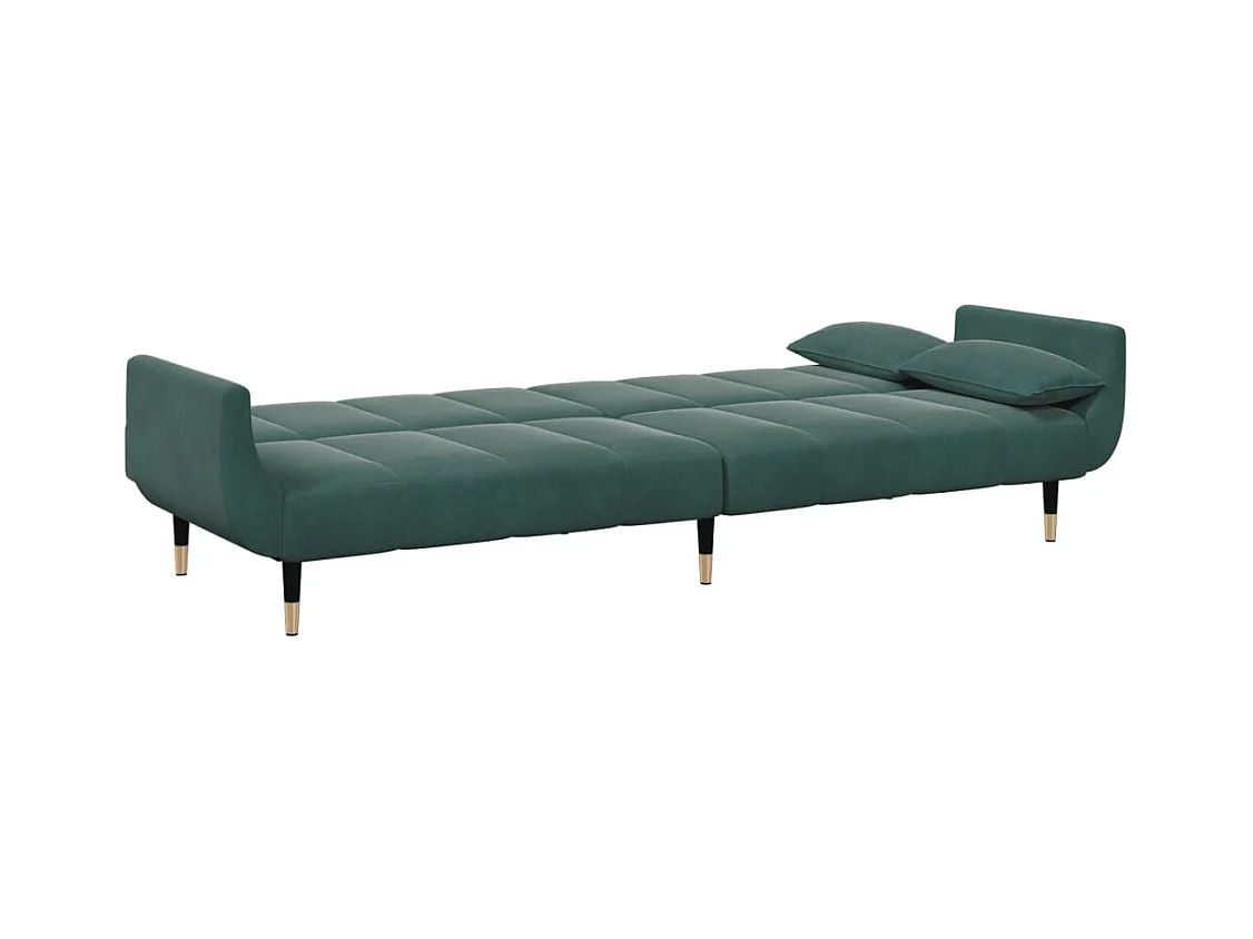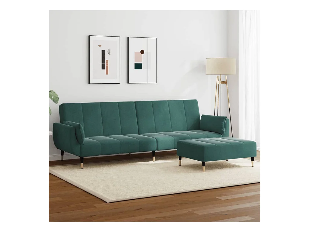 Canapé-lit à 2 places avec repose-pied vert foncé velours