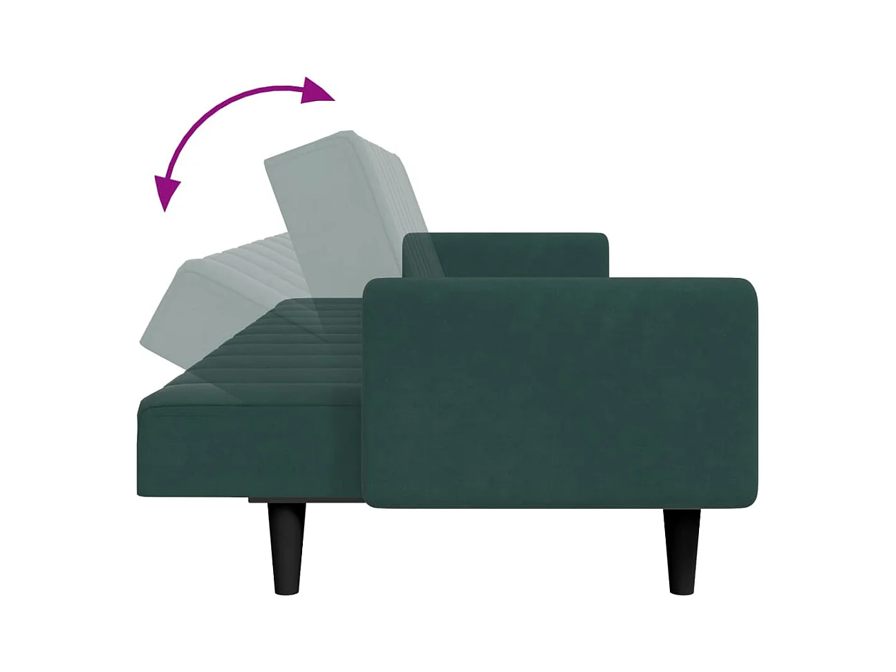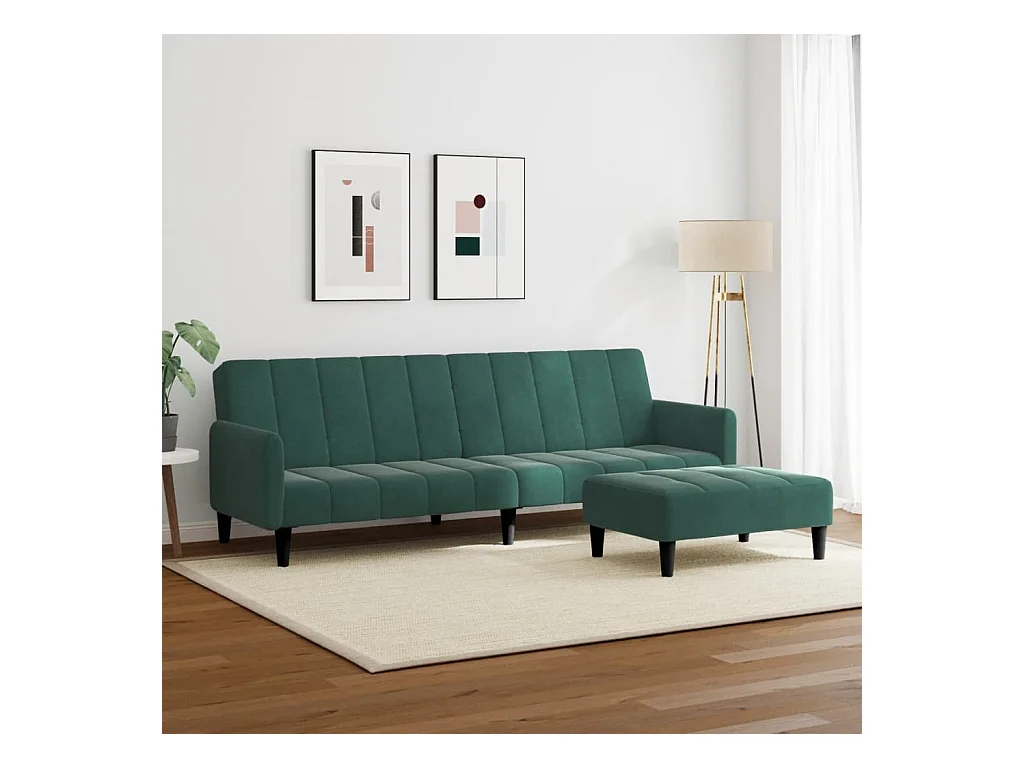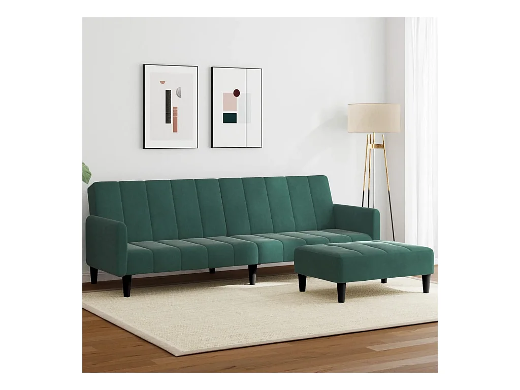 Canapé-lit à 2 places avec repose-pied vert foncé velours