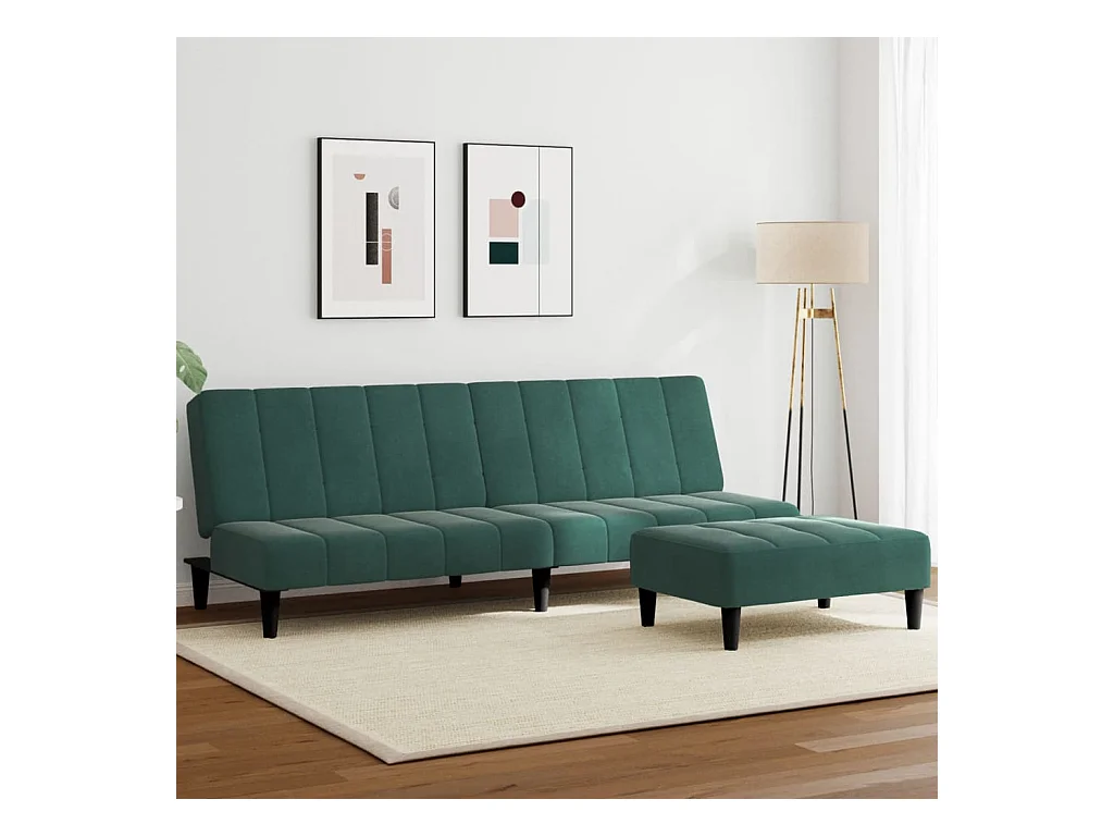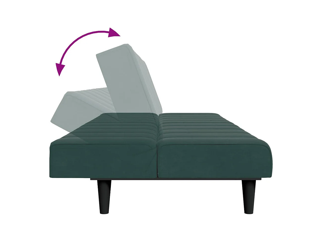 Canapé-lit à 2 places avec repose-pied vert foncé velours