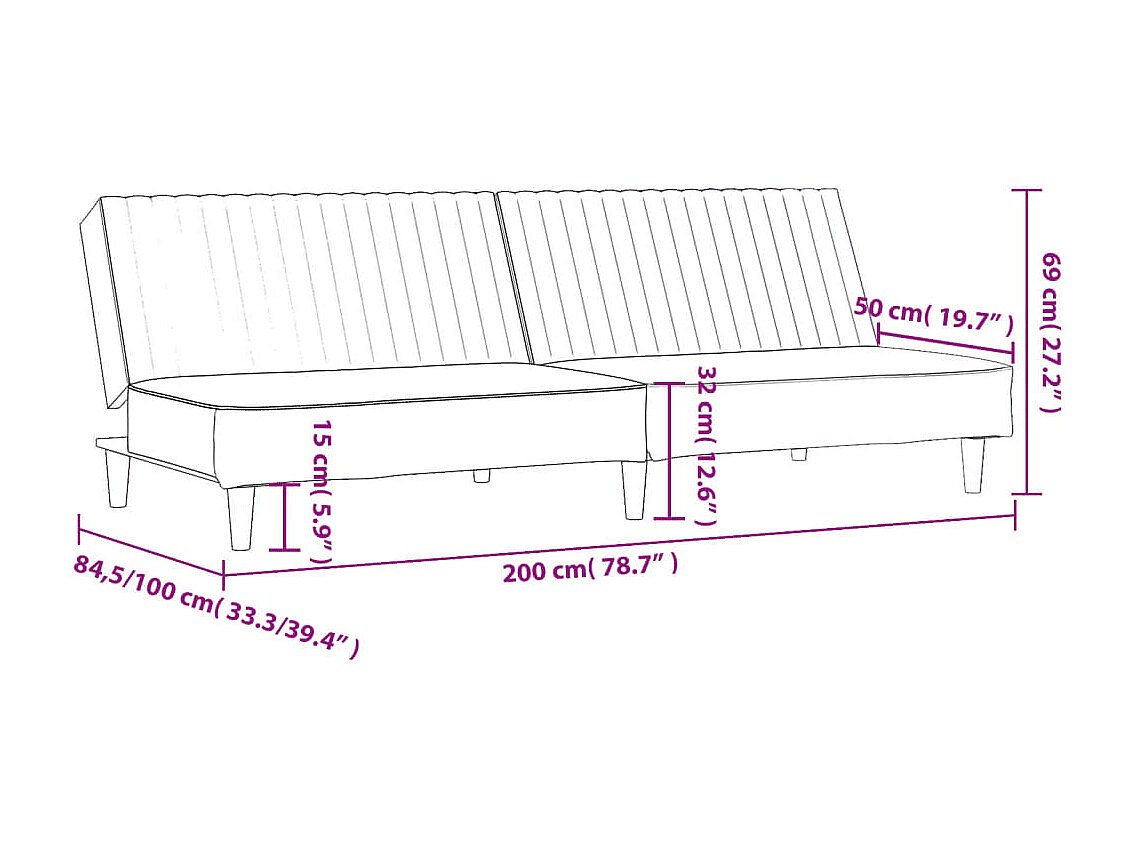 Canapé-lit à 2 places Bleu Velours