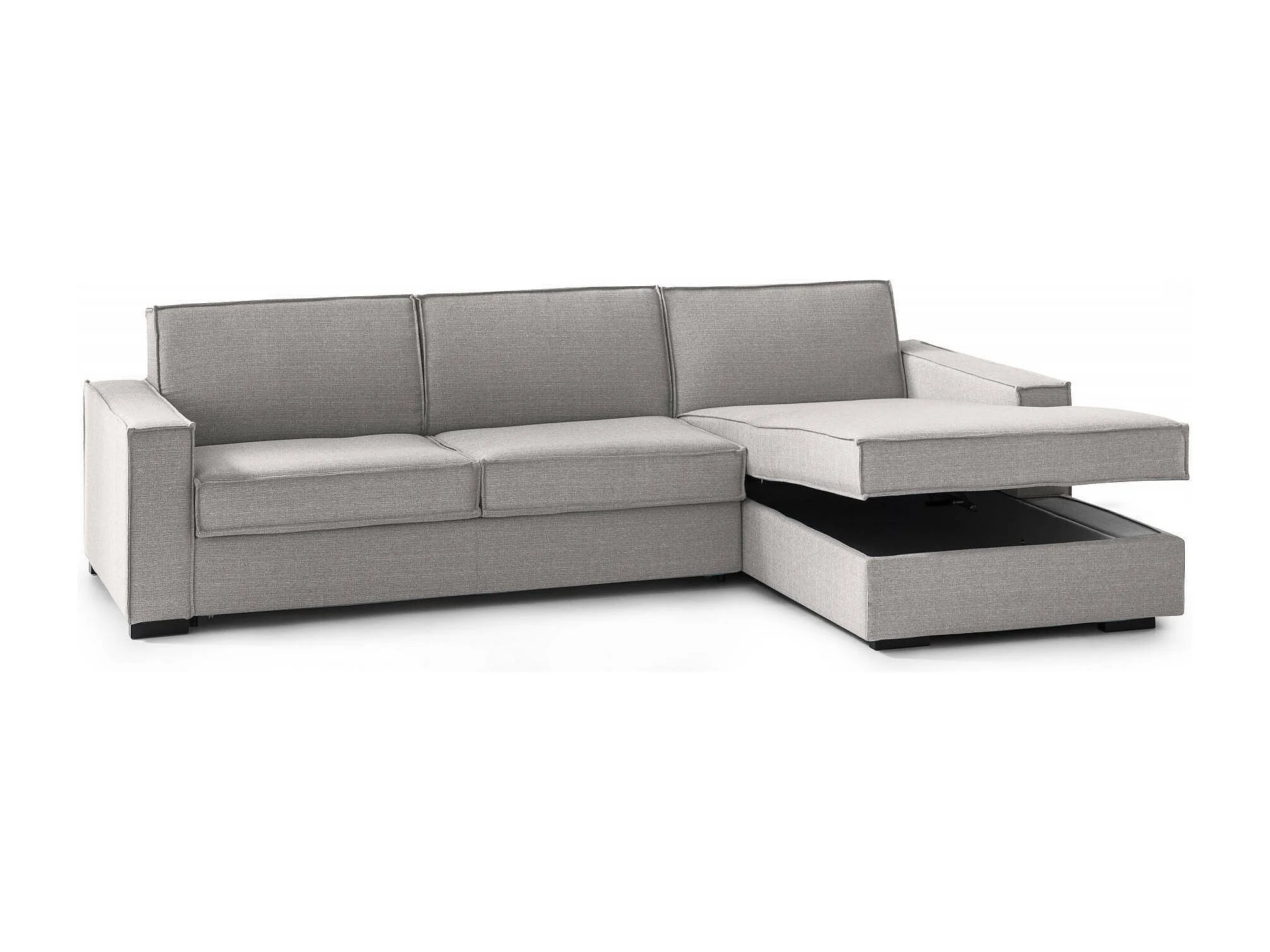 Canapé-lit Adelia, Canapé d'angle, 100% Made in Italy, Canapé avec ouverture pivotante, Péninsule de rangement droite, avec accoudoirs fins, 260x95h90 cm, Gris