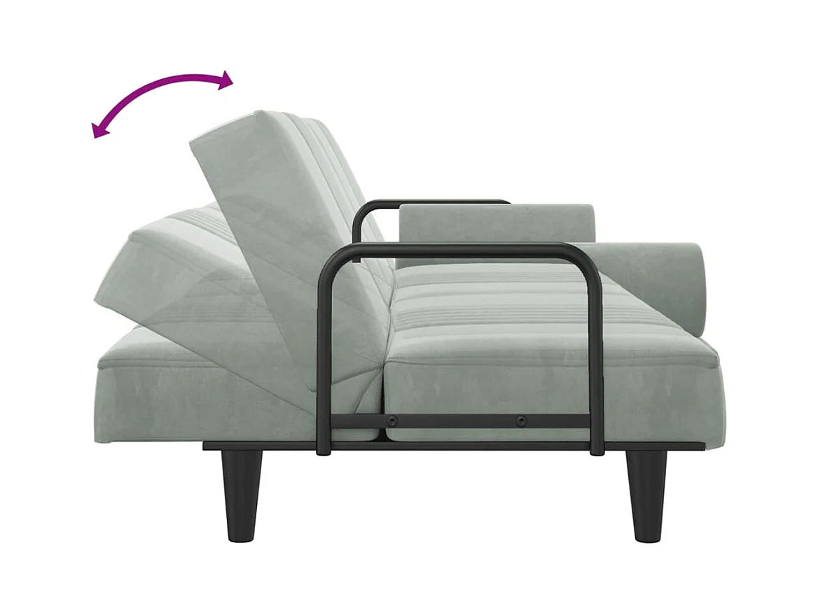 Canapé-lit avec accoudoirs gris clair velours