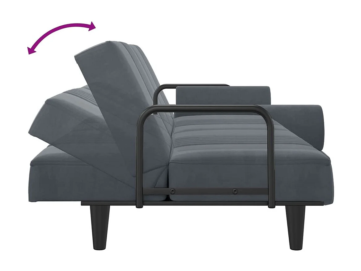 Canapé-lit avec accoudoirs gris foncé velours