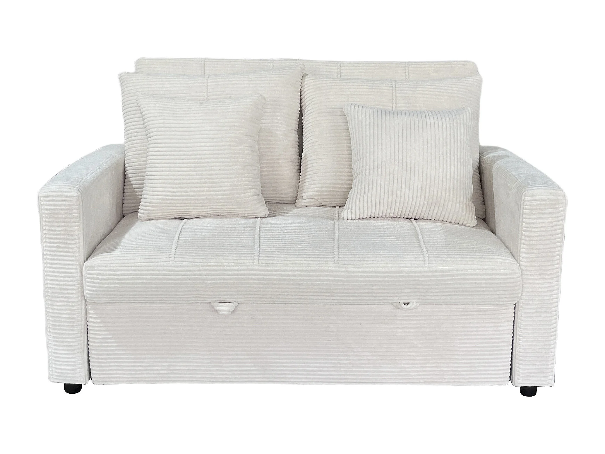 Canapé-lit, canapé 2 places convertible en velours côtelé coloris crème - Longueur 140 x Largeur 99 x Hauteur 88 cm