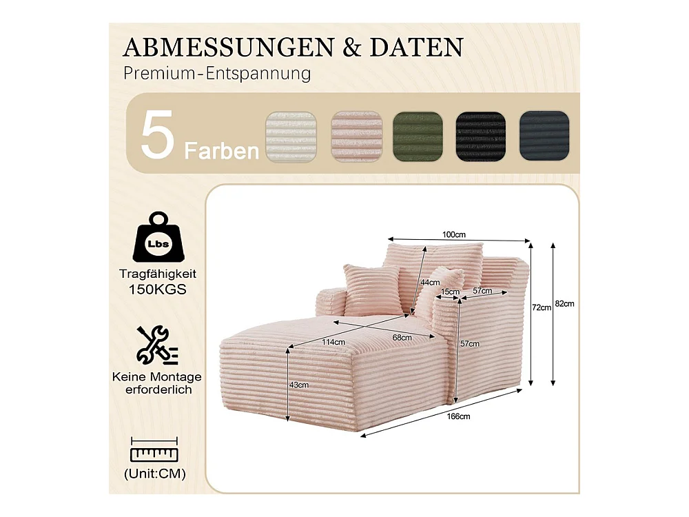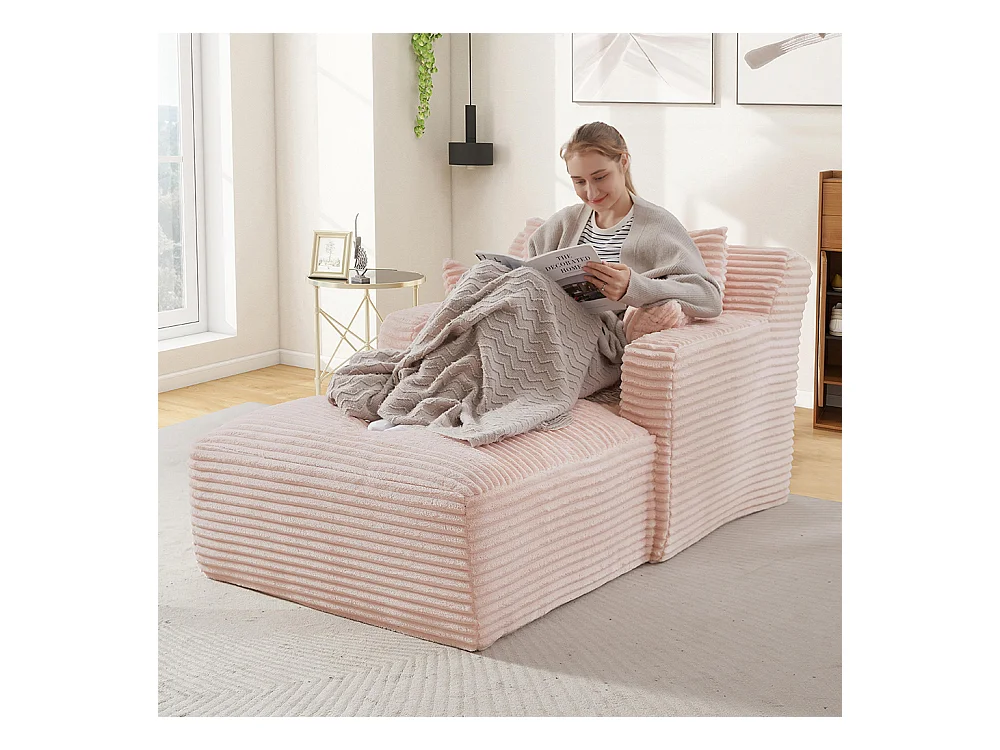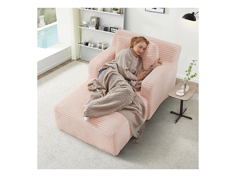 Canapé lit chaise longue moderne velours côtelé confortable fauteuil sans montage salon bureau appartement rose