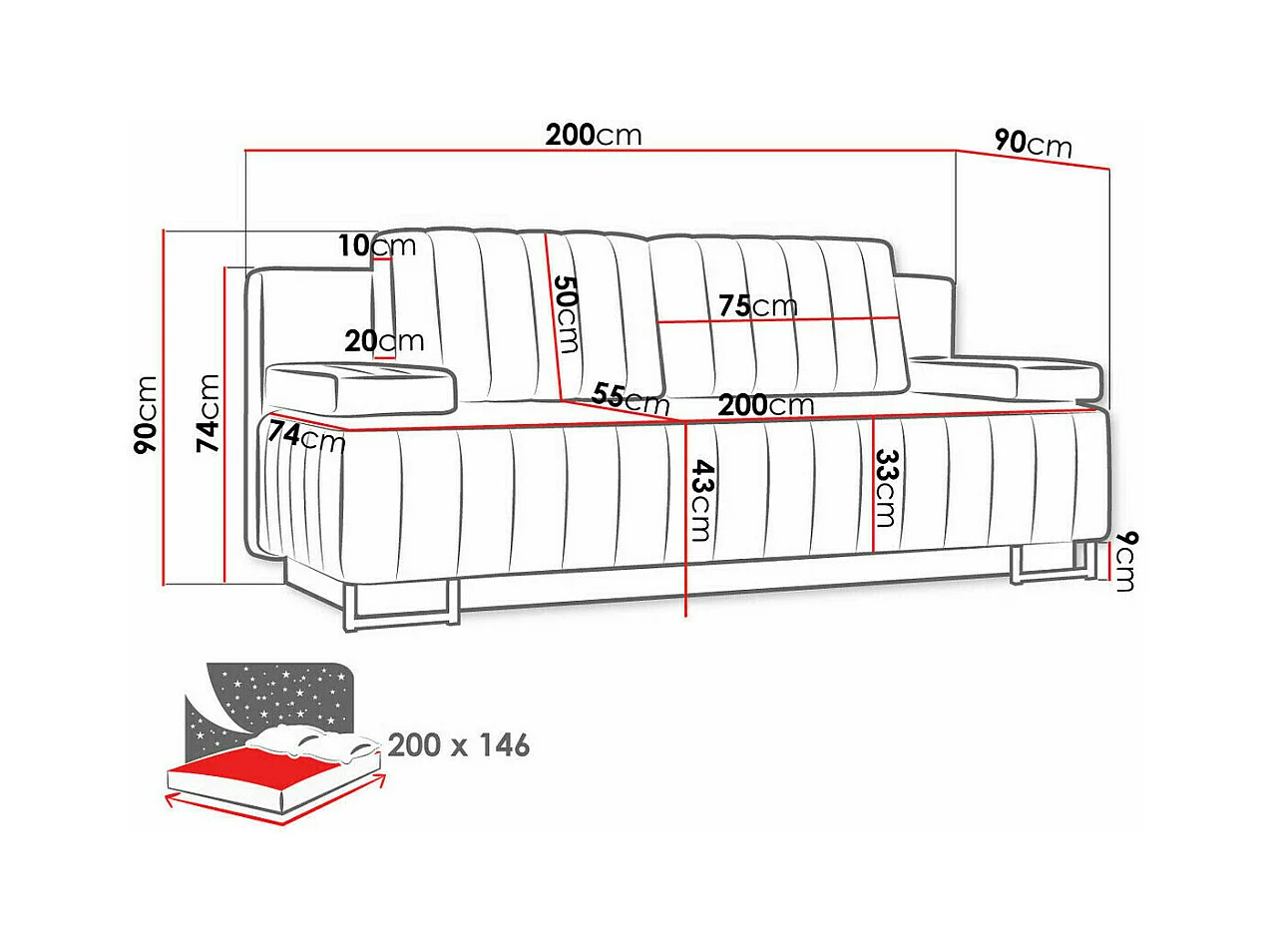 Canapé convertible Columbus 152, Boîte de literie, 90x200x90cm, Mobilier déjà assemblé