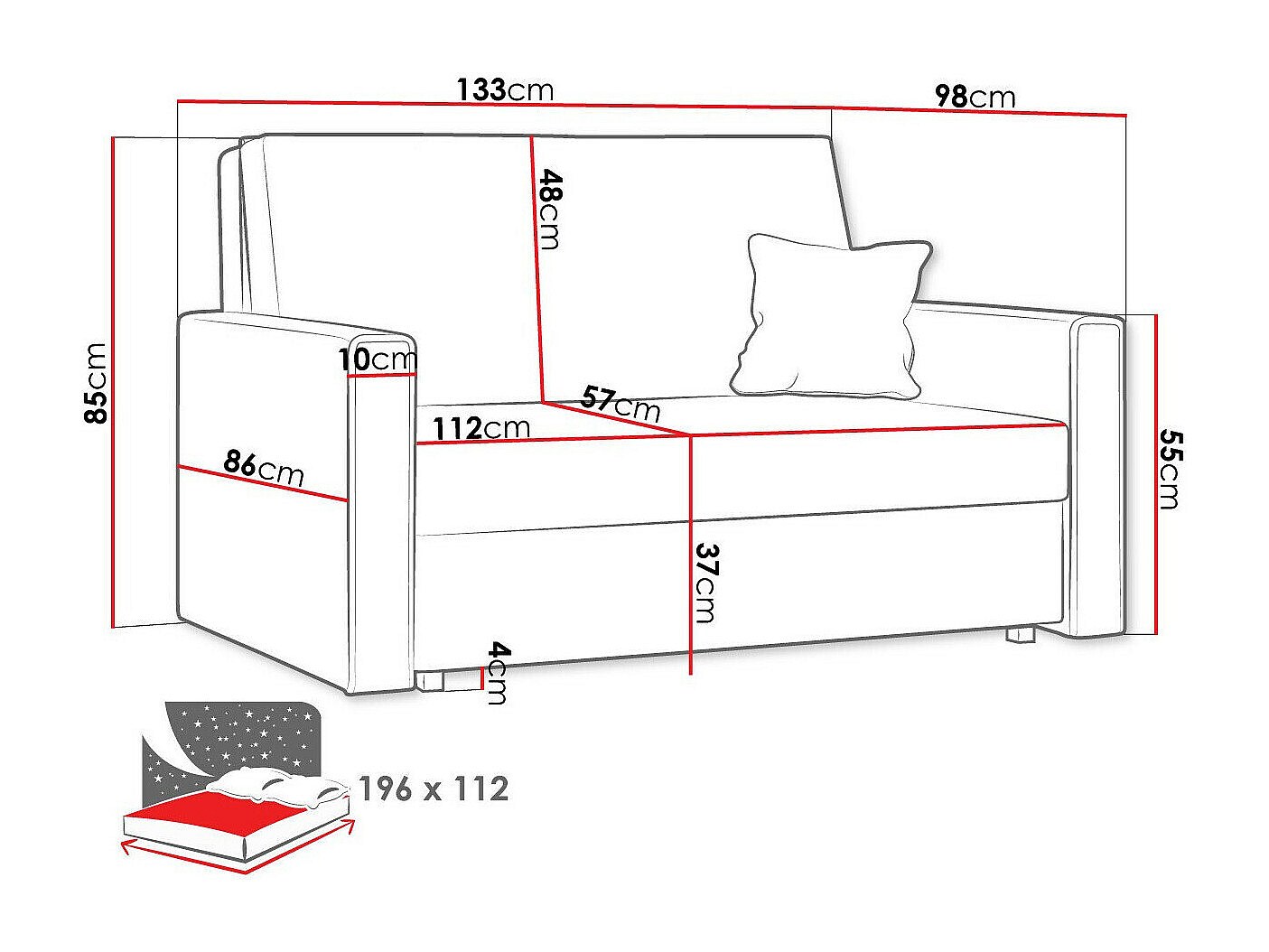 Canapé convertible Columbus 189, Boîte de literie, 85x133x98cm, Mobilier déjà assemblé