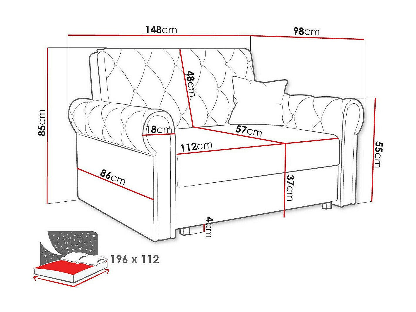 Canapé convertible Columbus 199, Boîte de literie, 85x148x98cm, Mobilier déjà assemblé