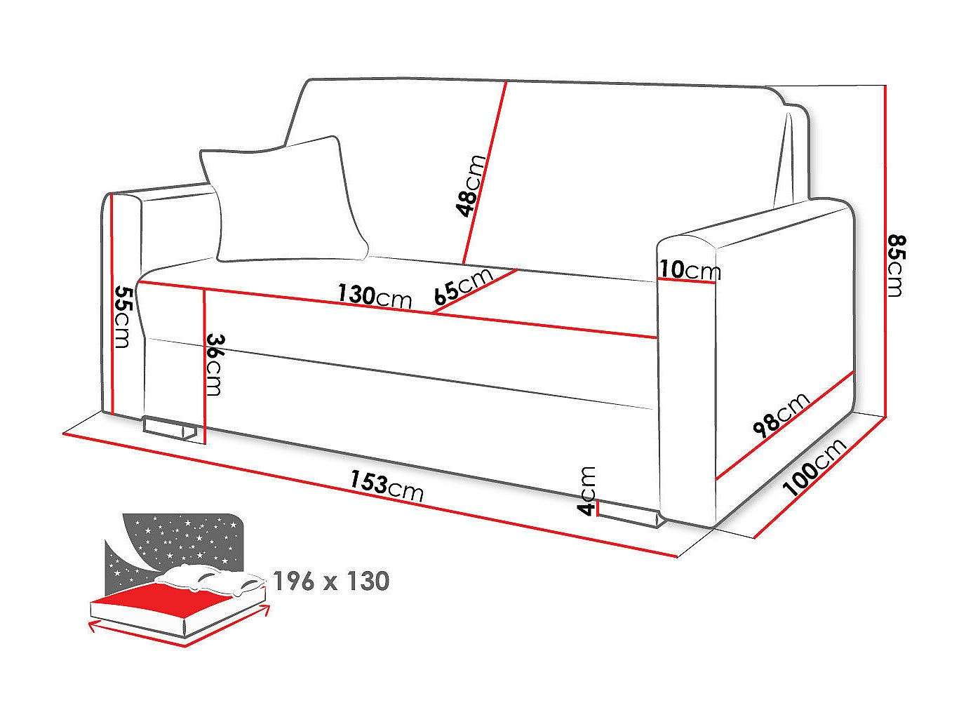 Canapé convertible Columbus 205, Boîte de literie, 85x153x100cm, Mobilier déjà assemblé