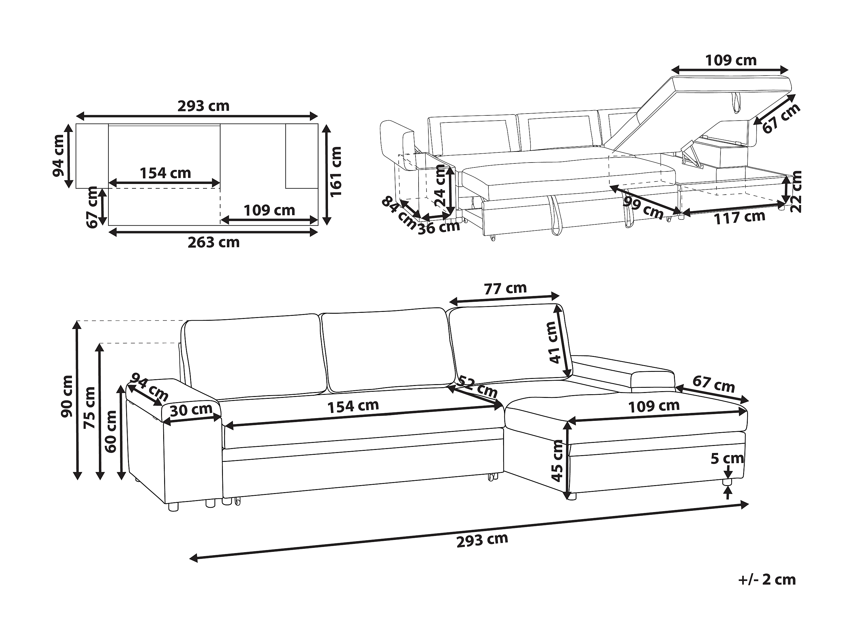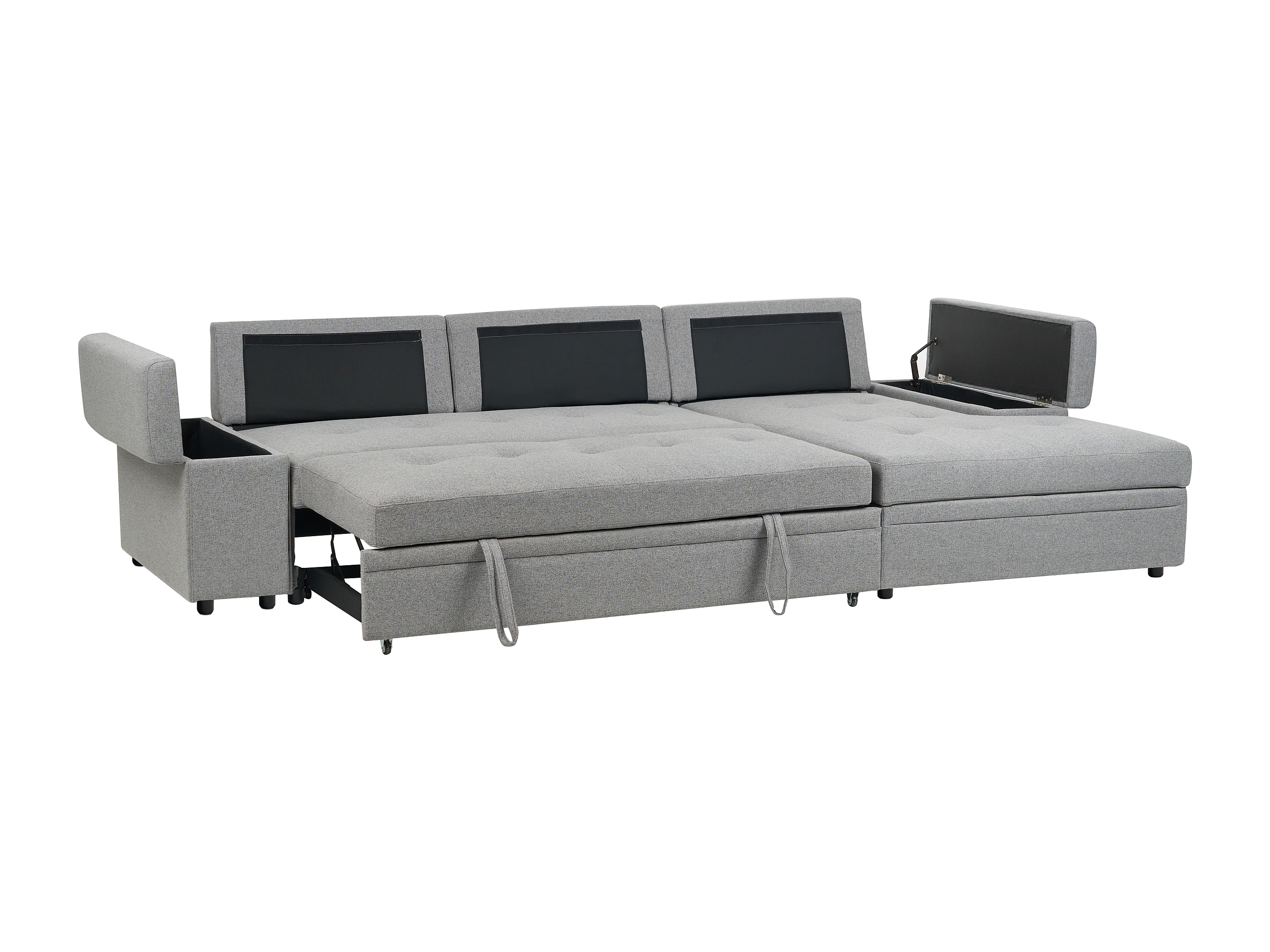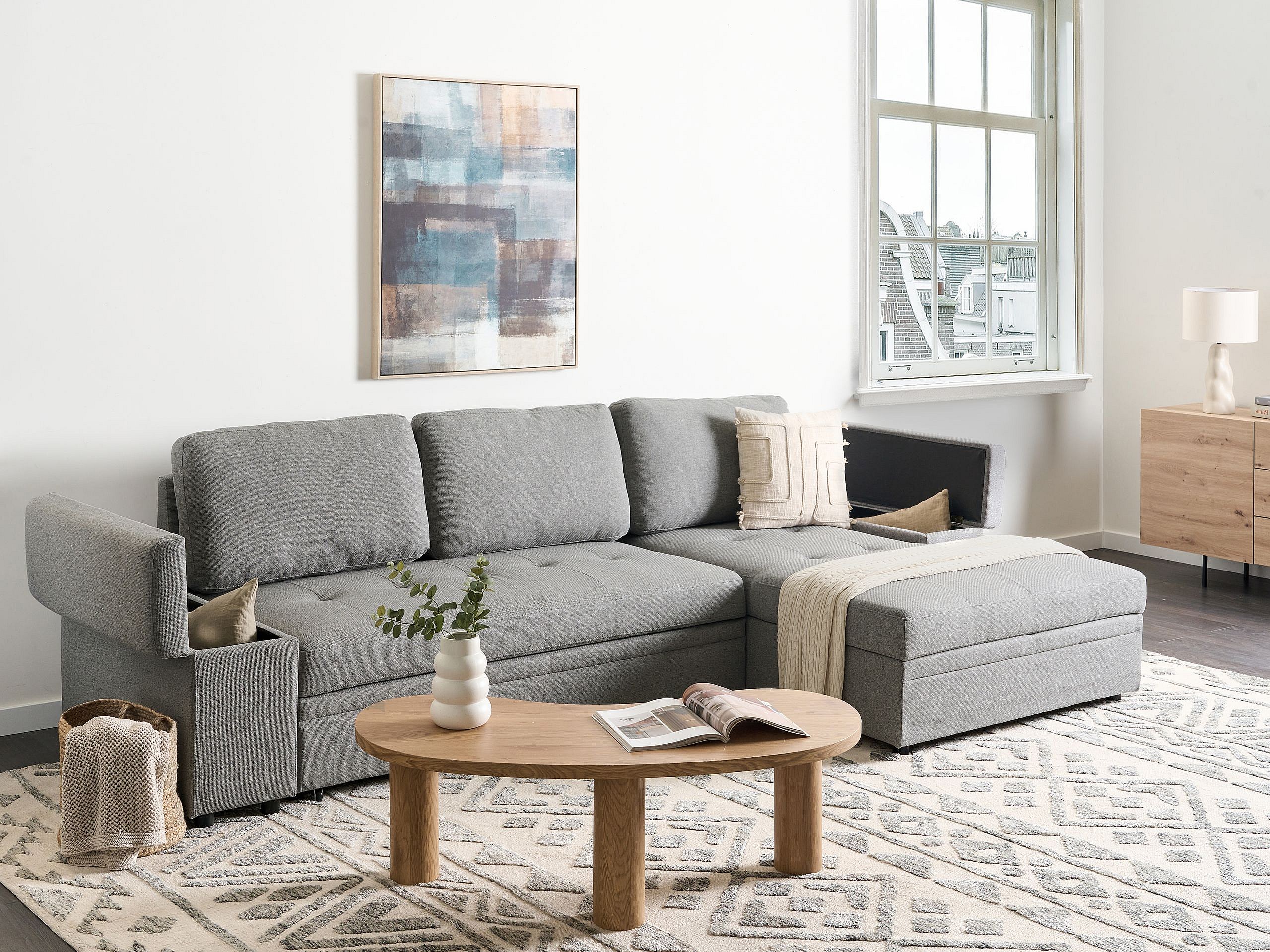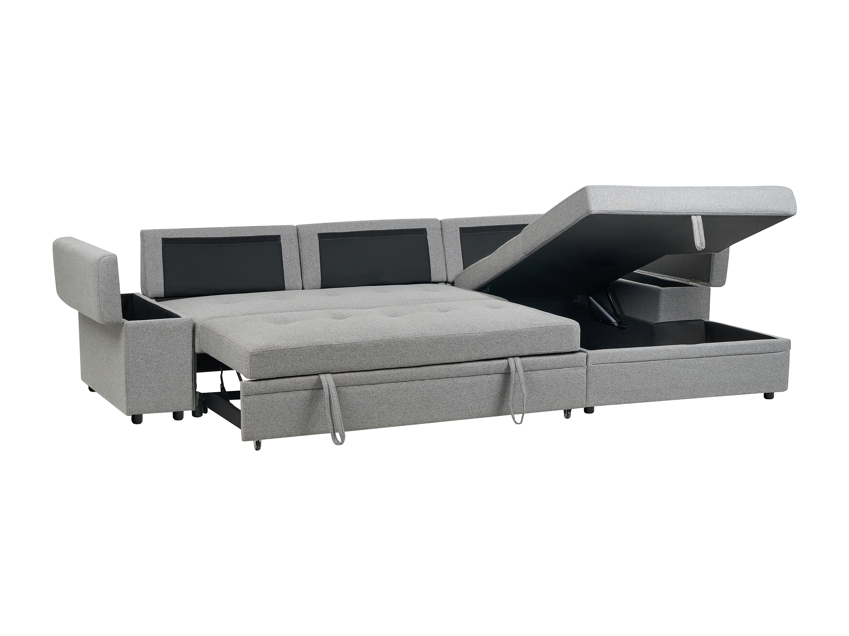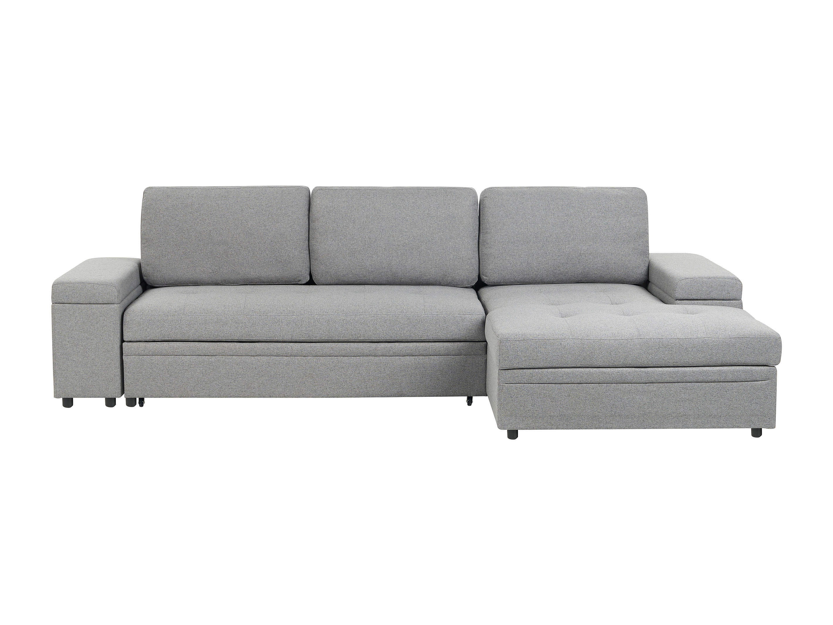 Canapé-lit d'angle 3 places HRISEY Lin synthétique Gris avec rangement Côté droite