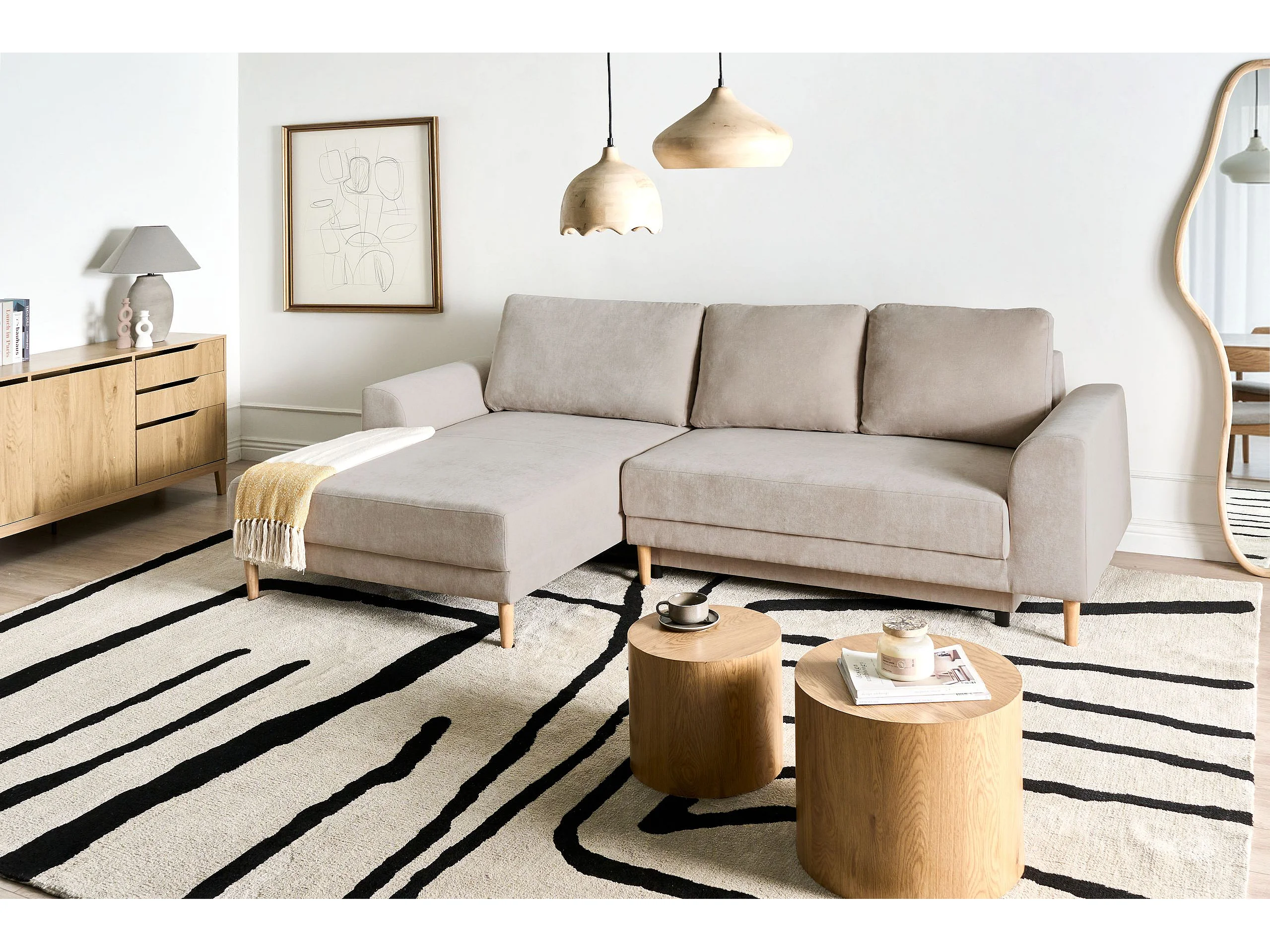 Canapé-lit d'angle 3 places NUBORG Tissu chenille Beige clair Côté droit