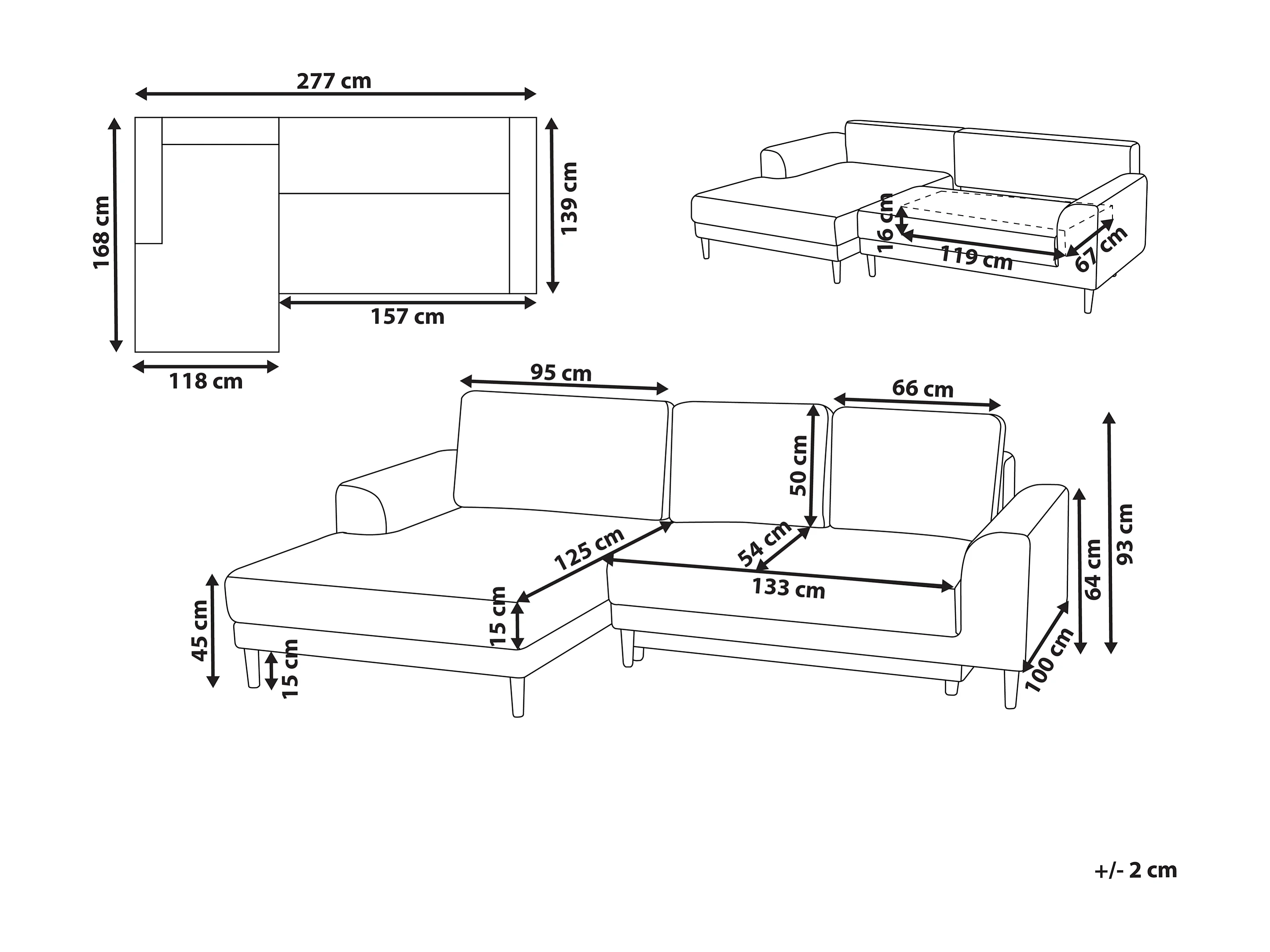 Canapé-lit d'angle 3 places NUBORG Tissu chenille Marron clair Côté droit