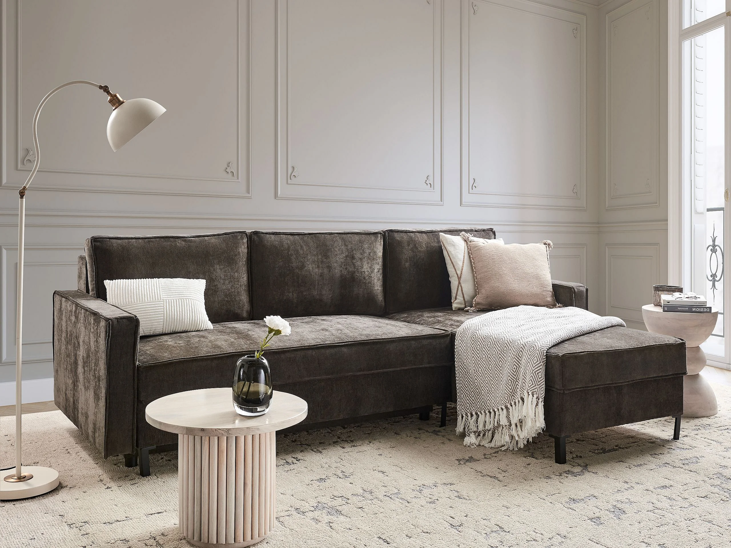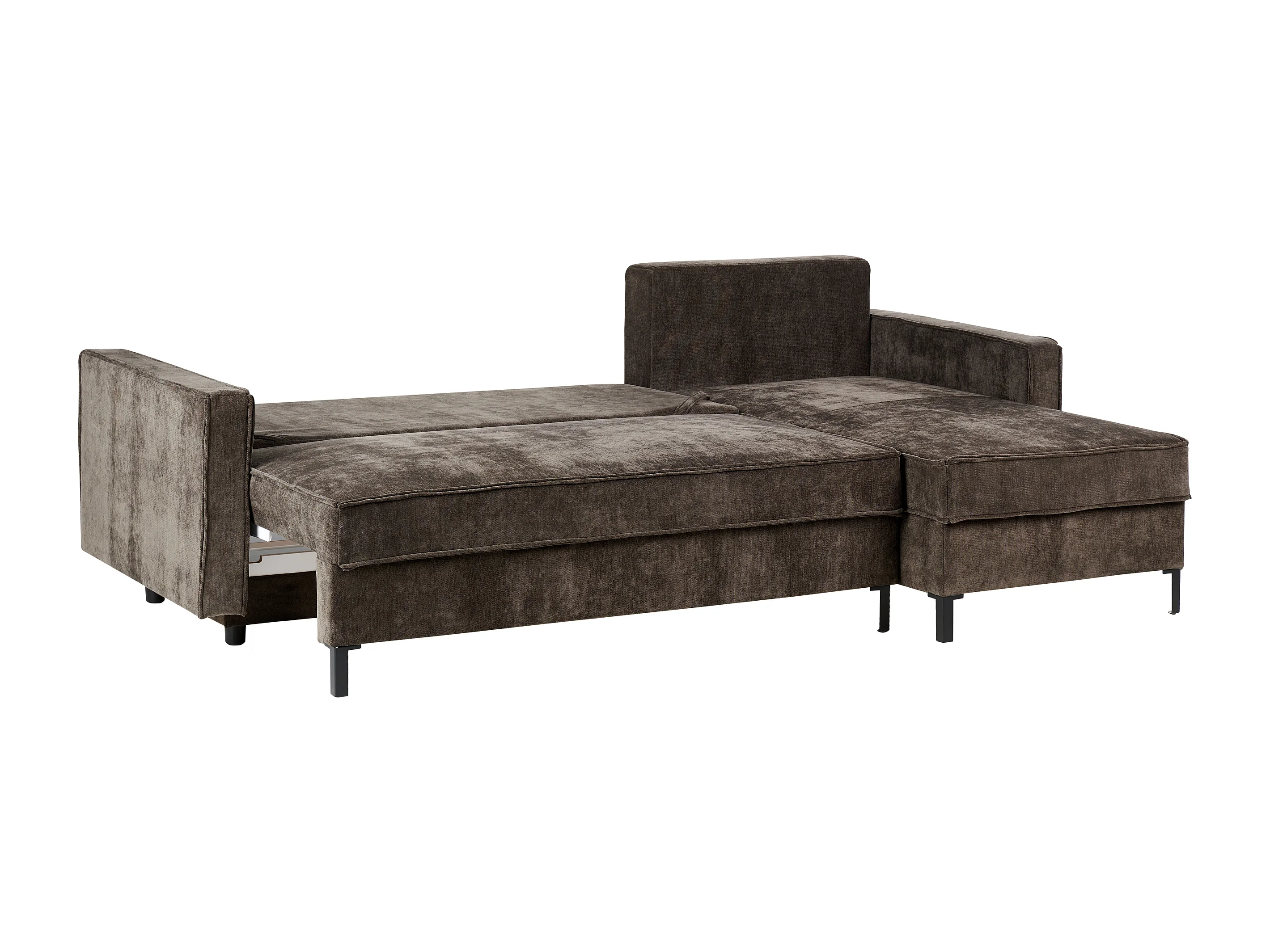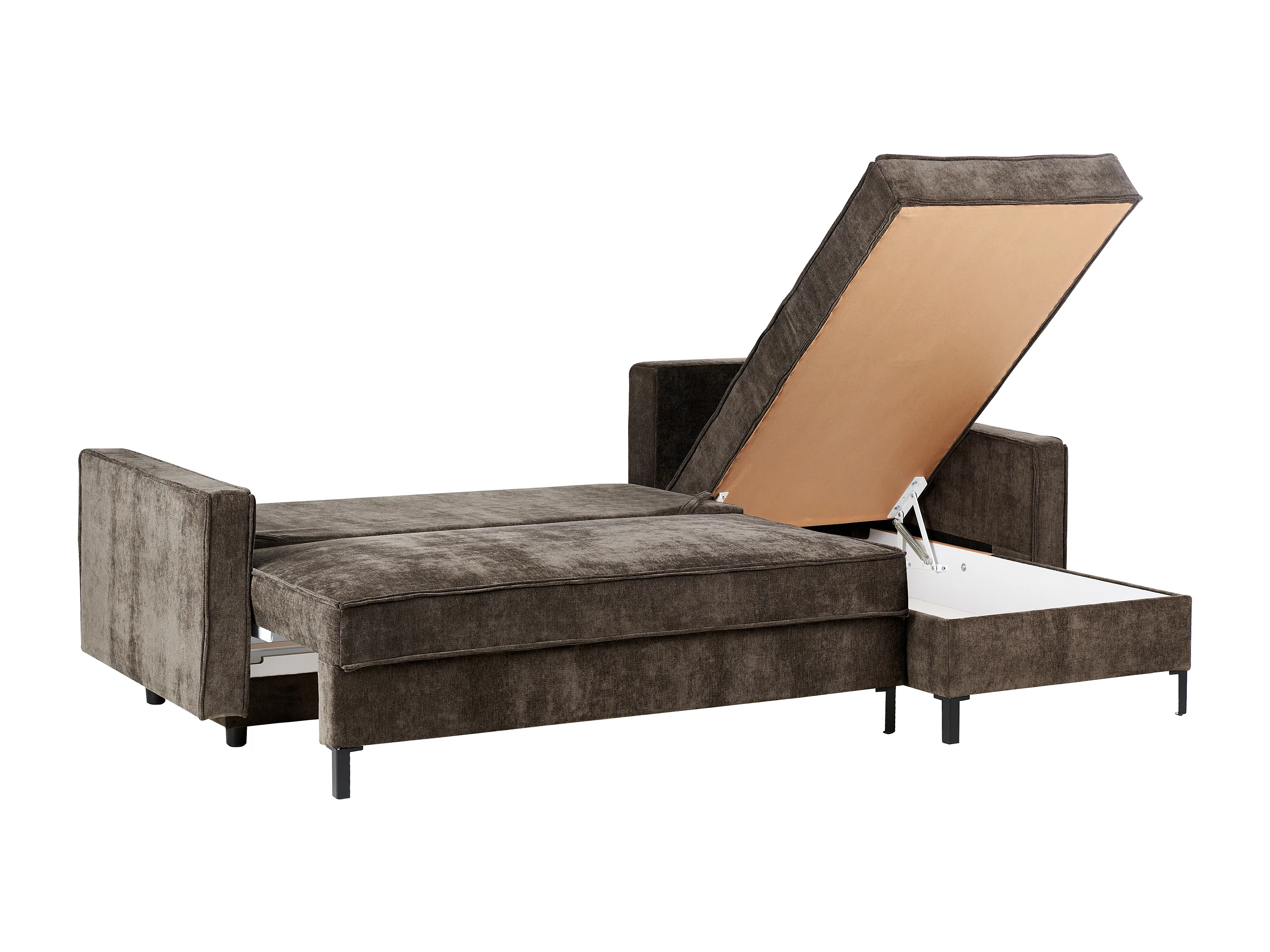 Canapé-lit d'Angle à droite en Tissu avec Rangement et Dossier Rembourré Marron Tejn
