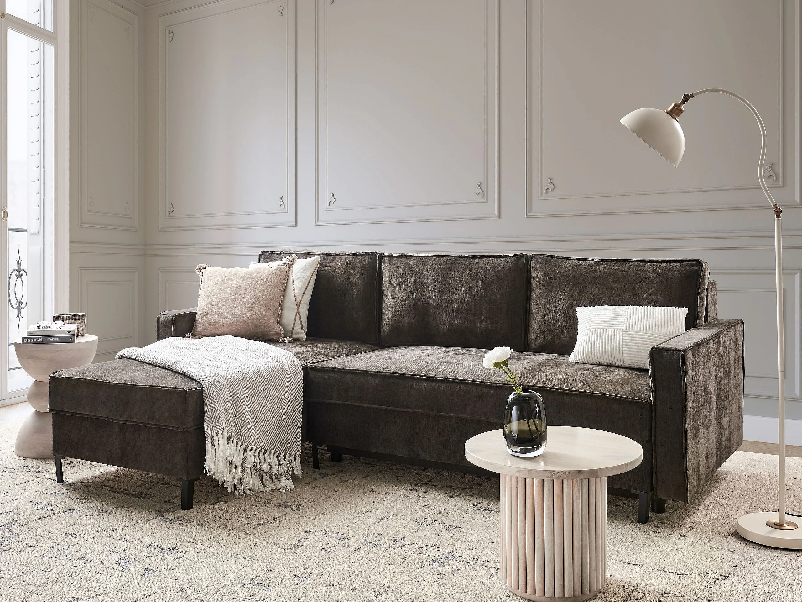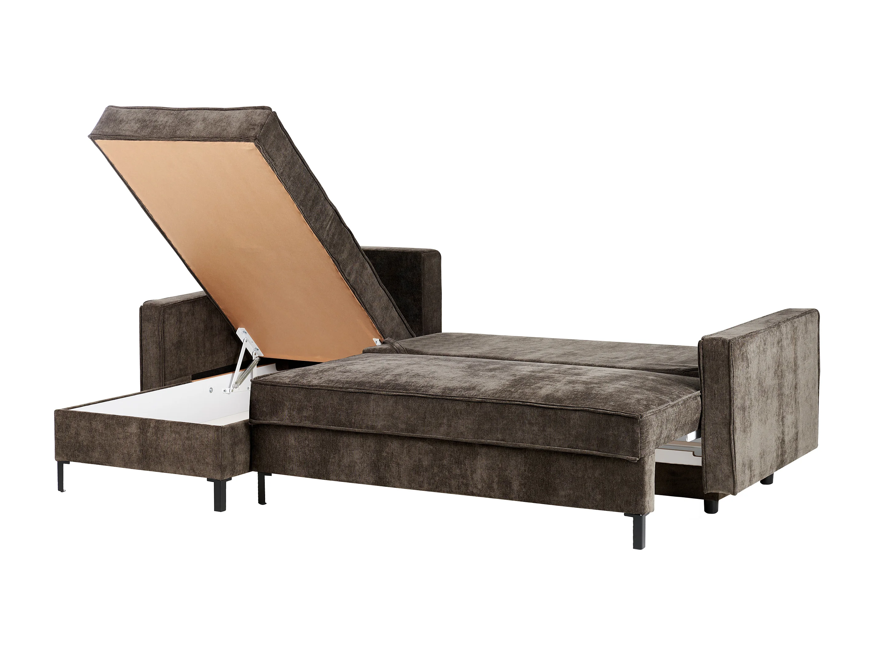 Canapé-lit d'Angle à gauche en Tissu avec Rangement et Dossier Rembourré Marron Tejn