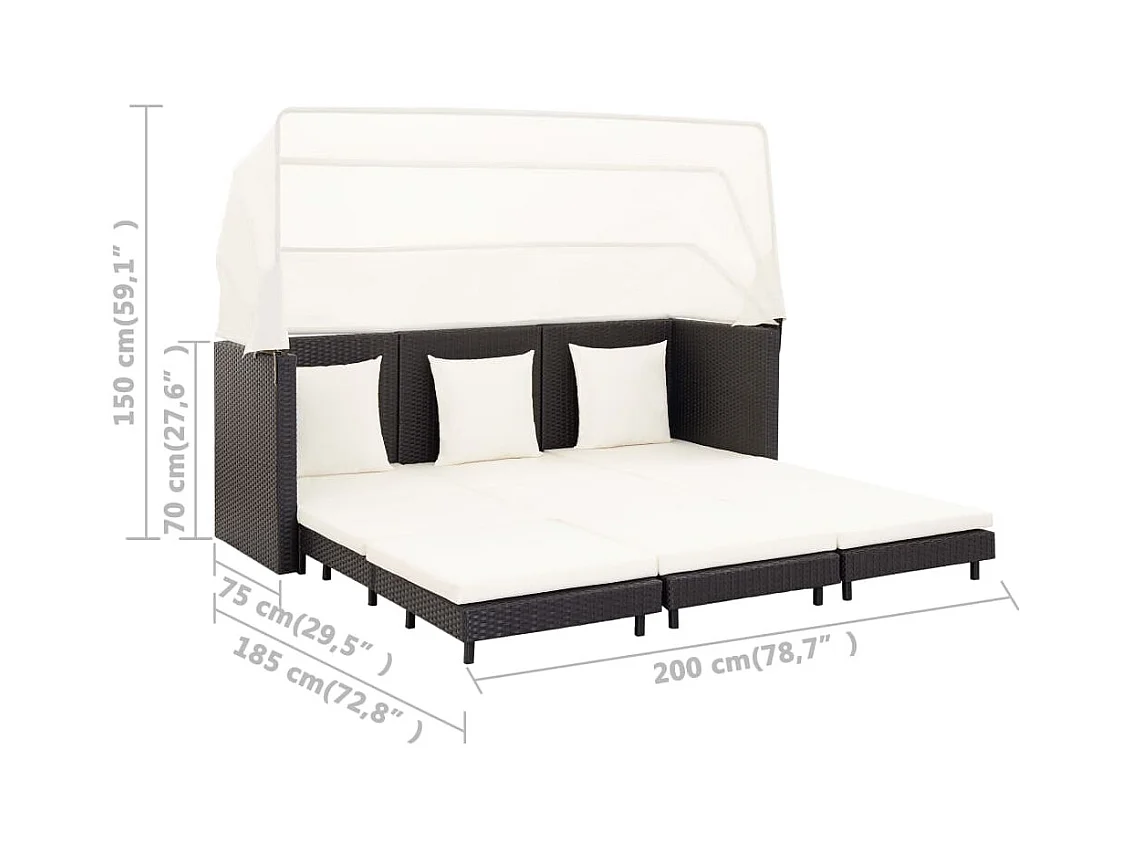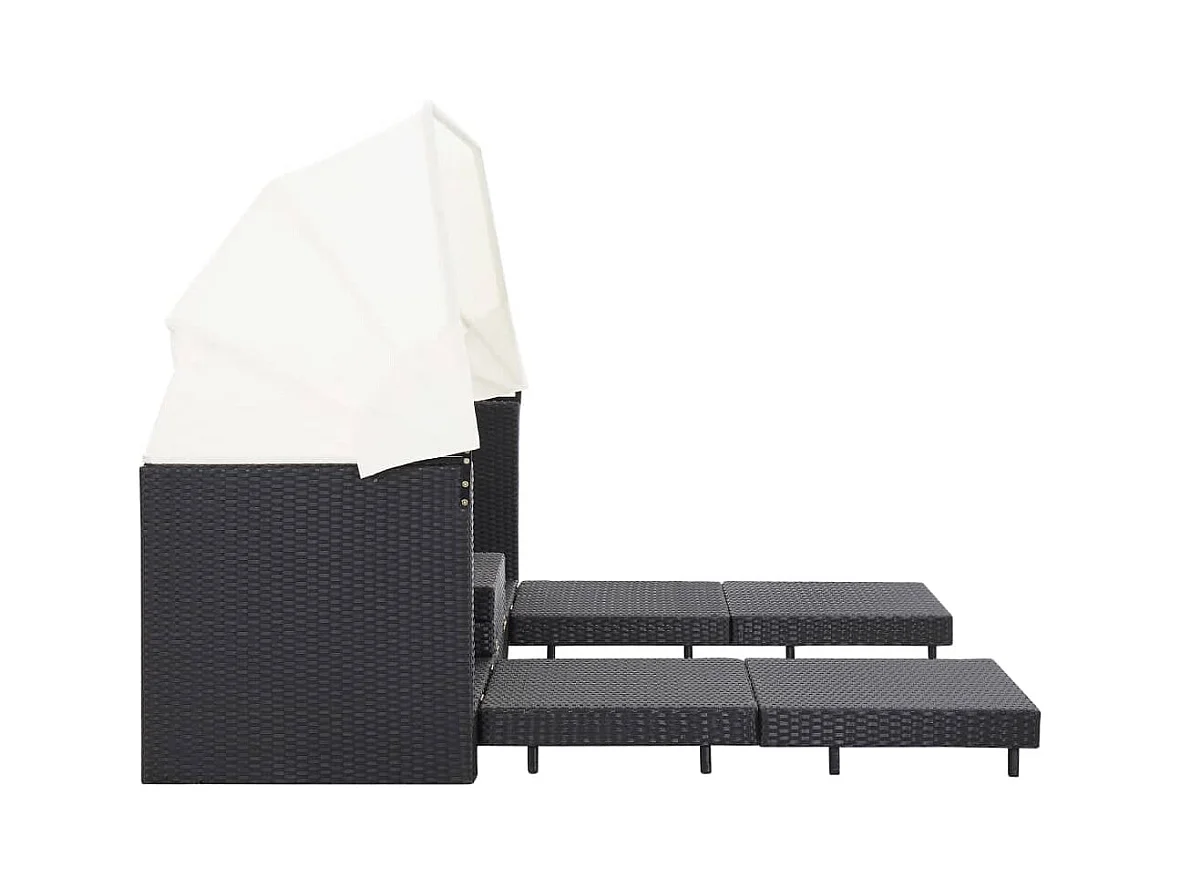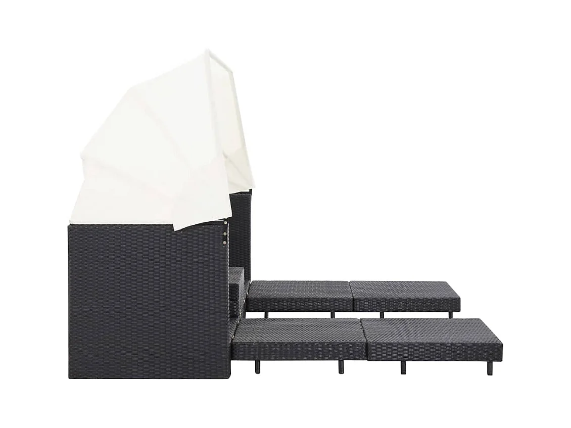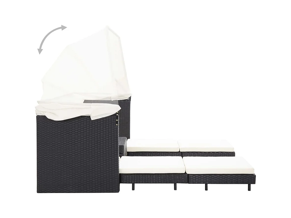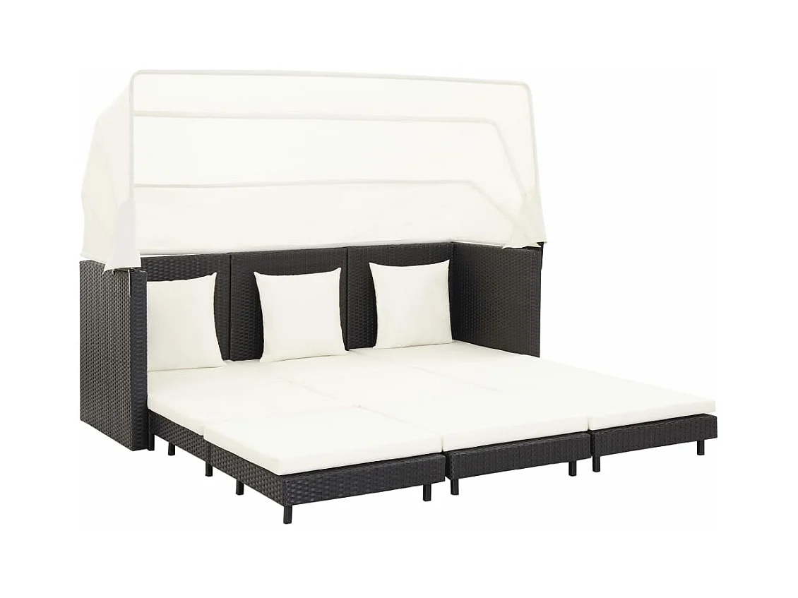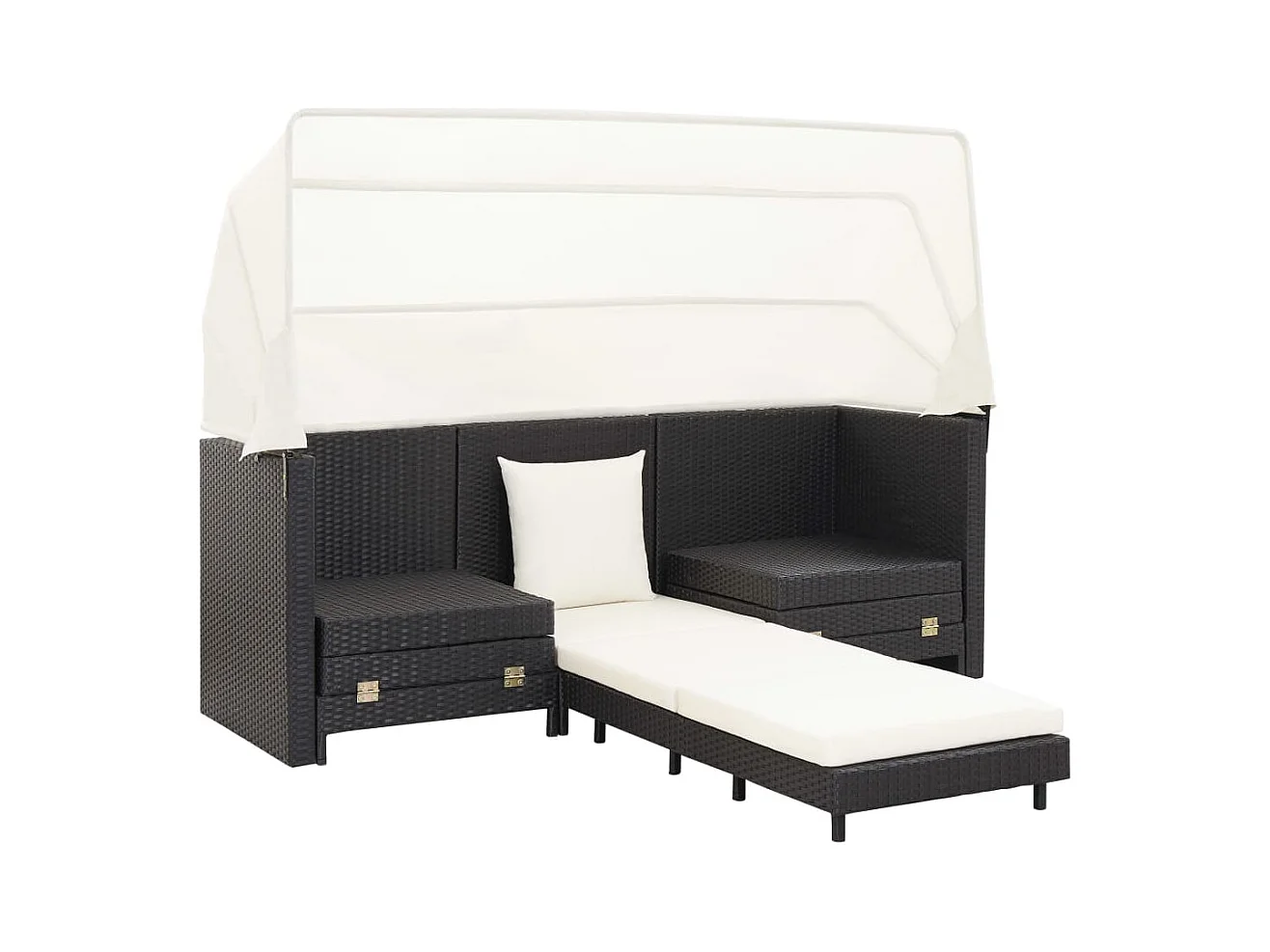 Canapé-lit extensible 3 places avec toit Résine tressée Noir
