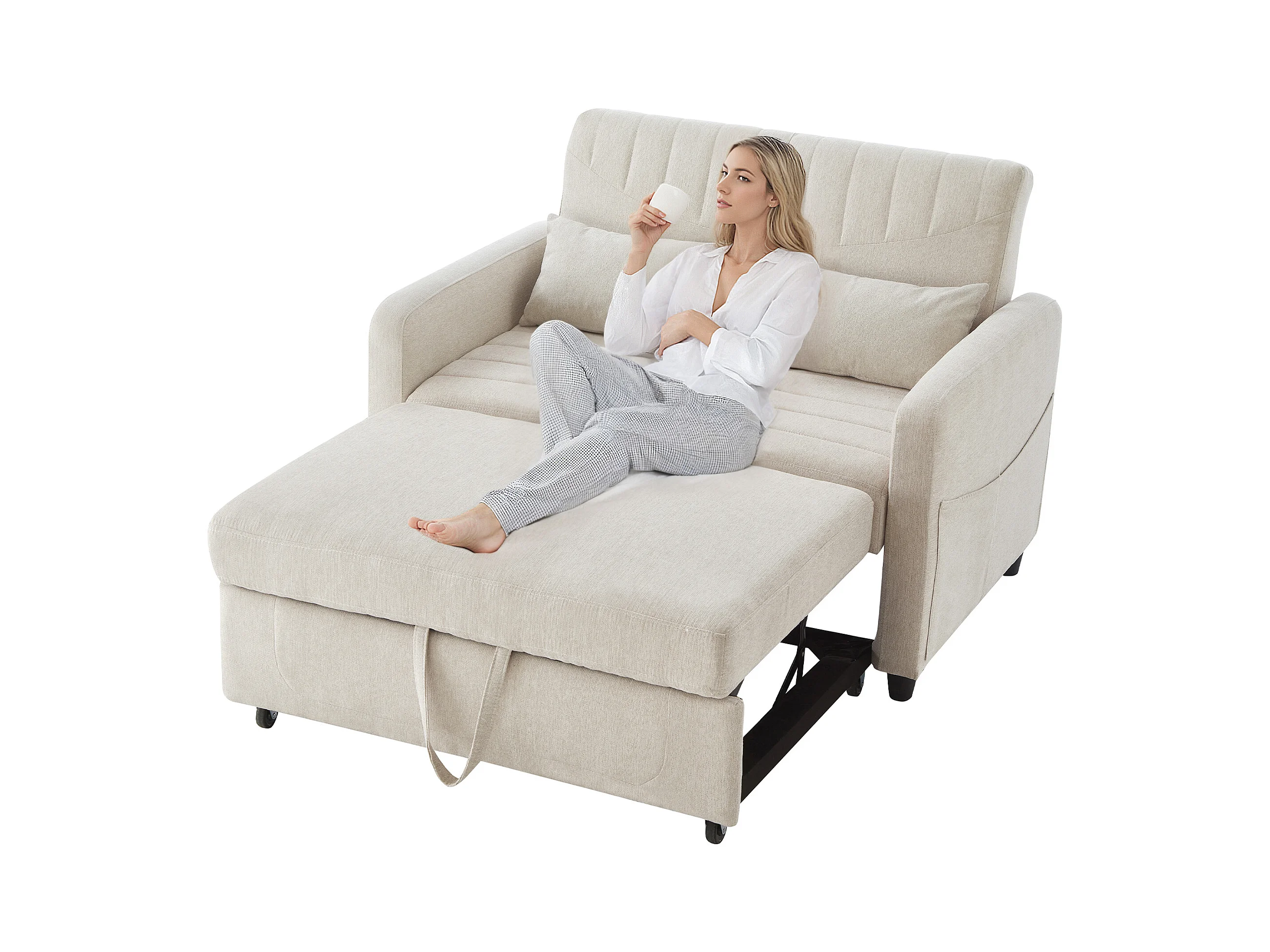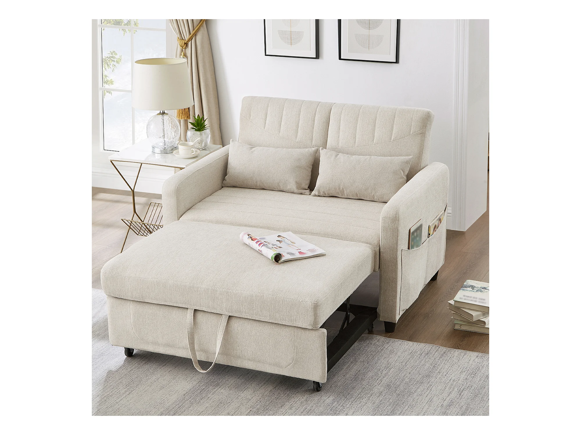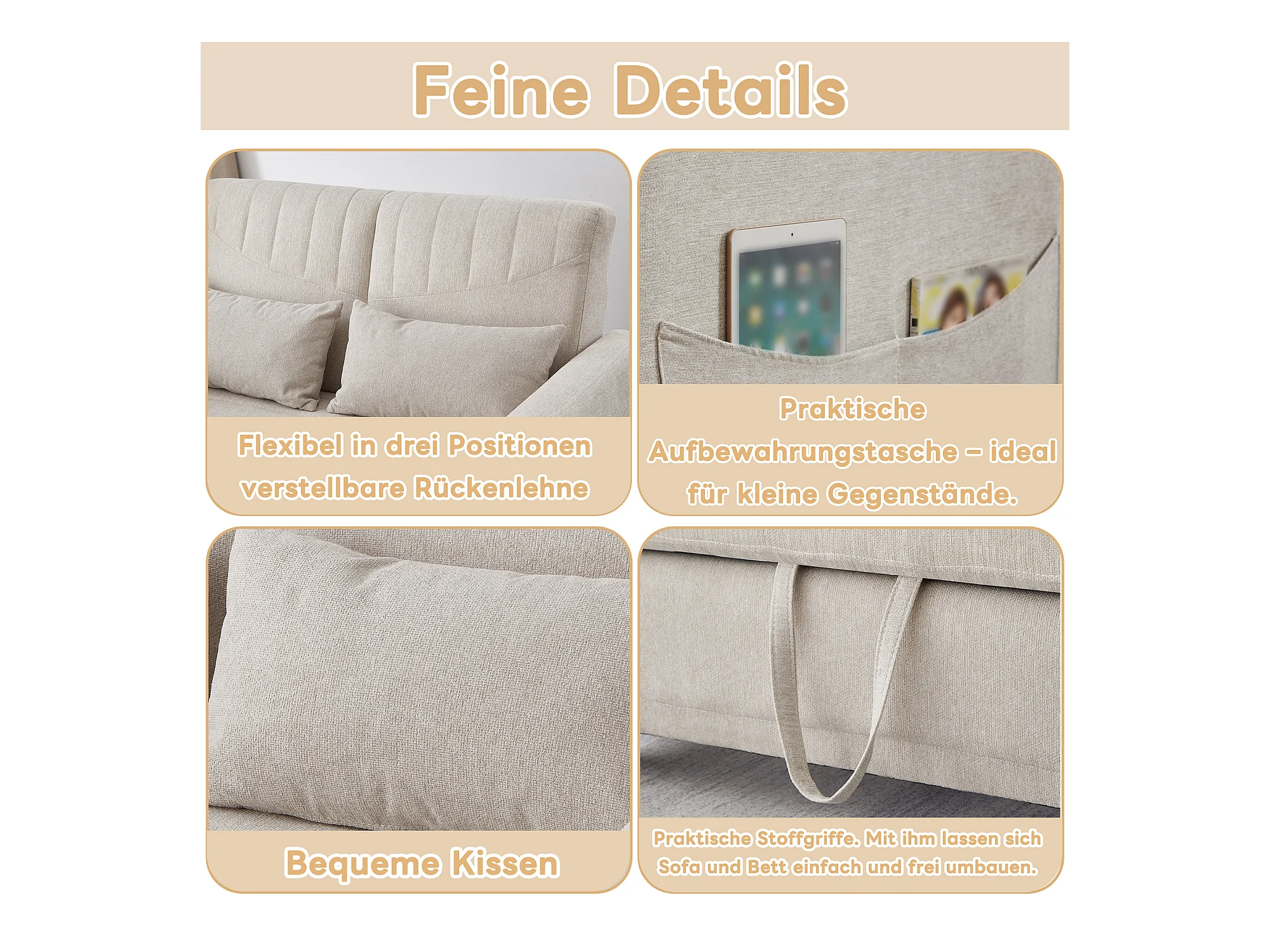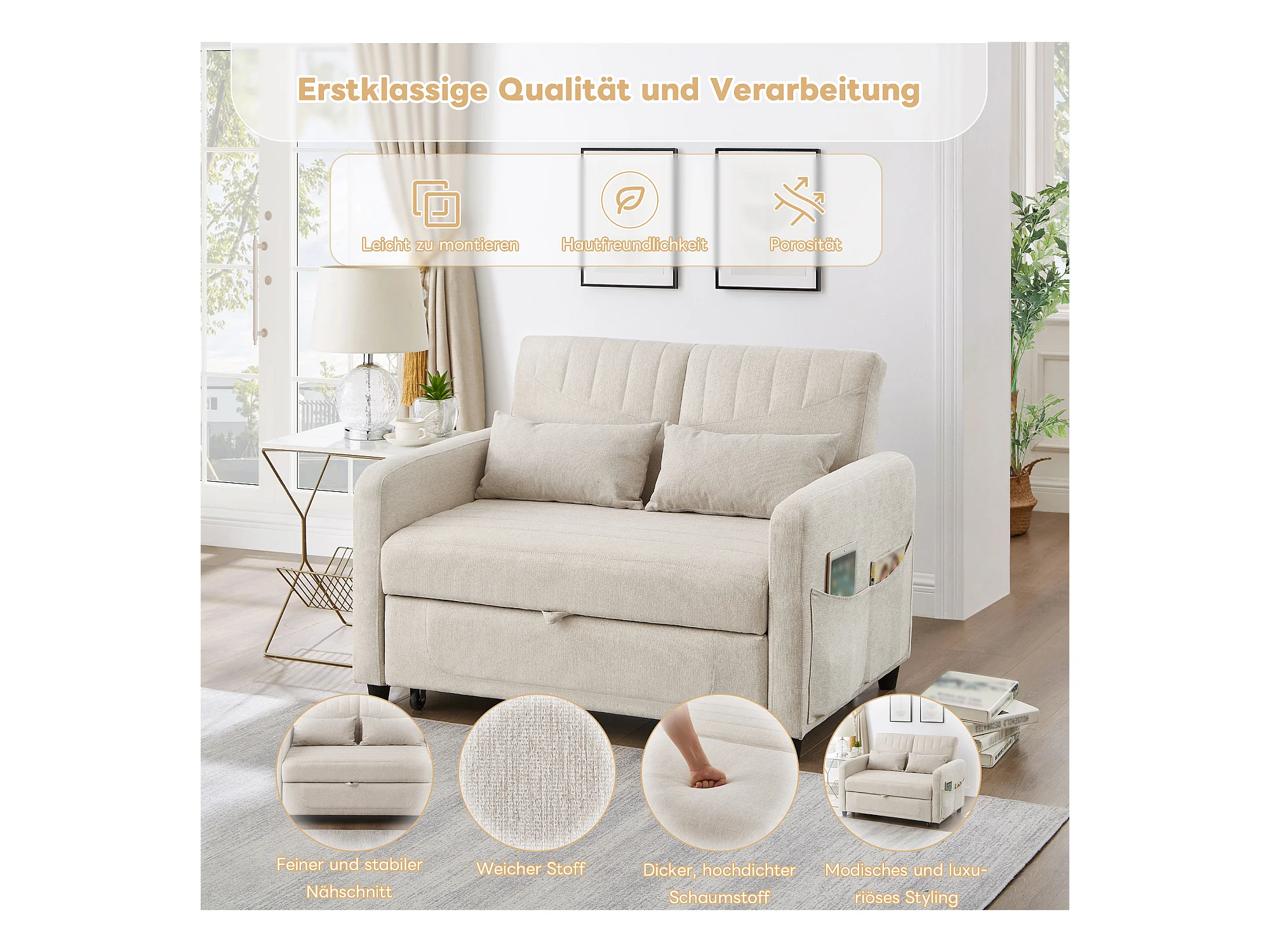 Canapé-lit pliant 2 places extensible - 90 x 120 cm - dossier réglable - tissu en coton et lin - beige