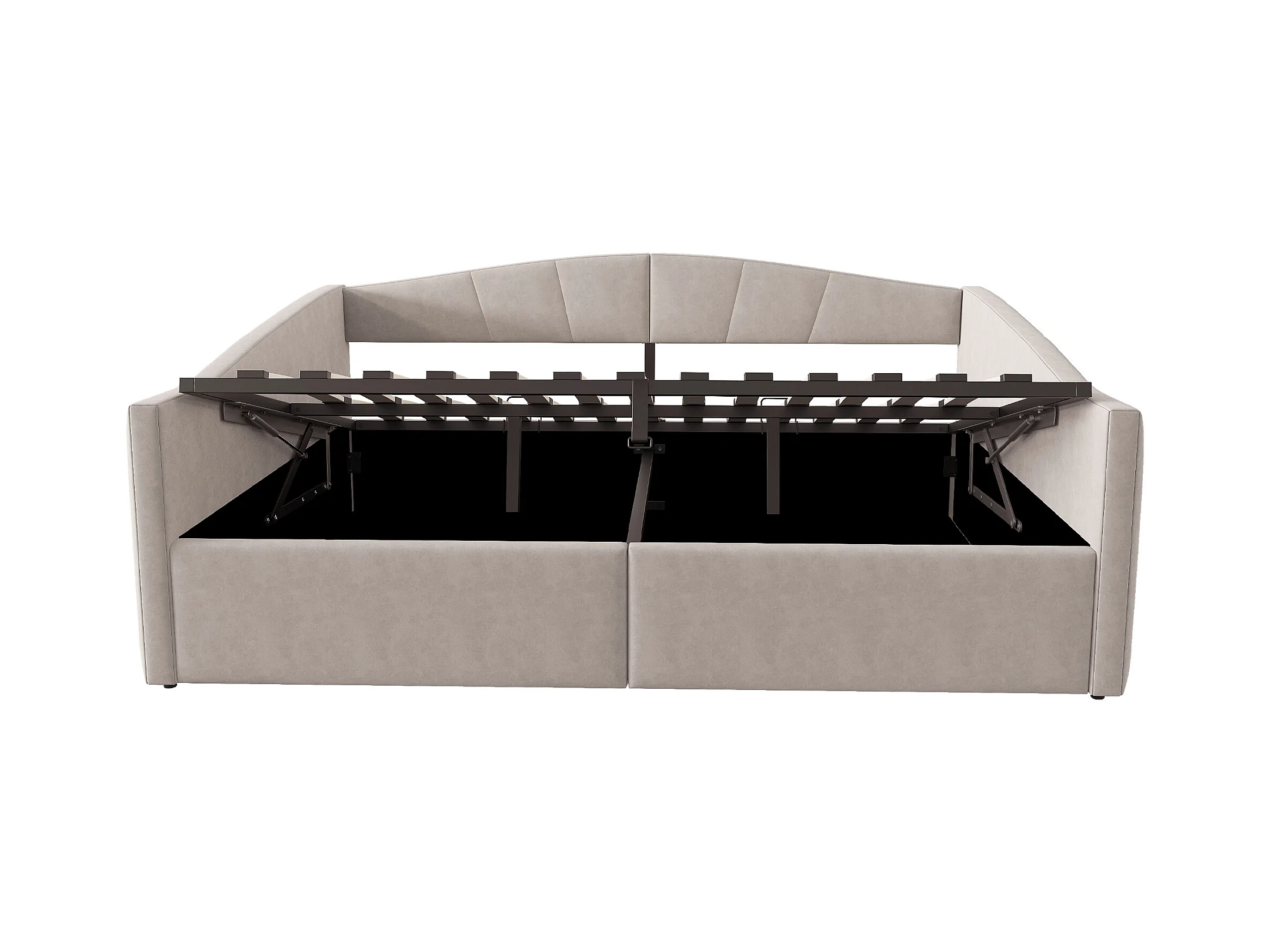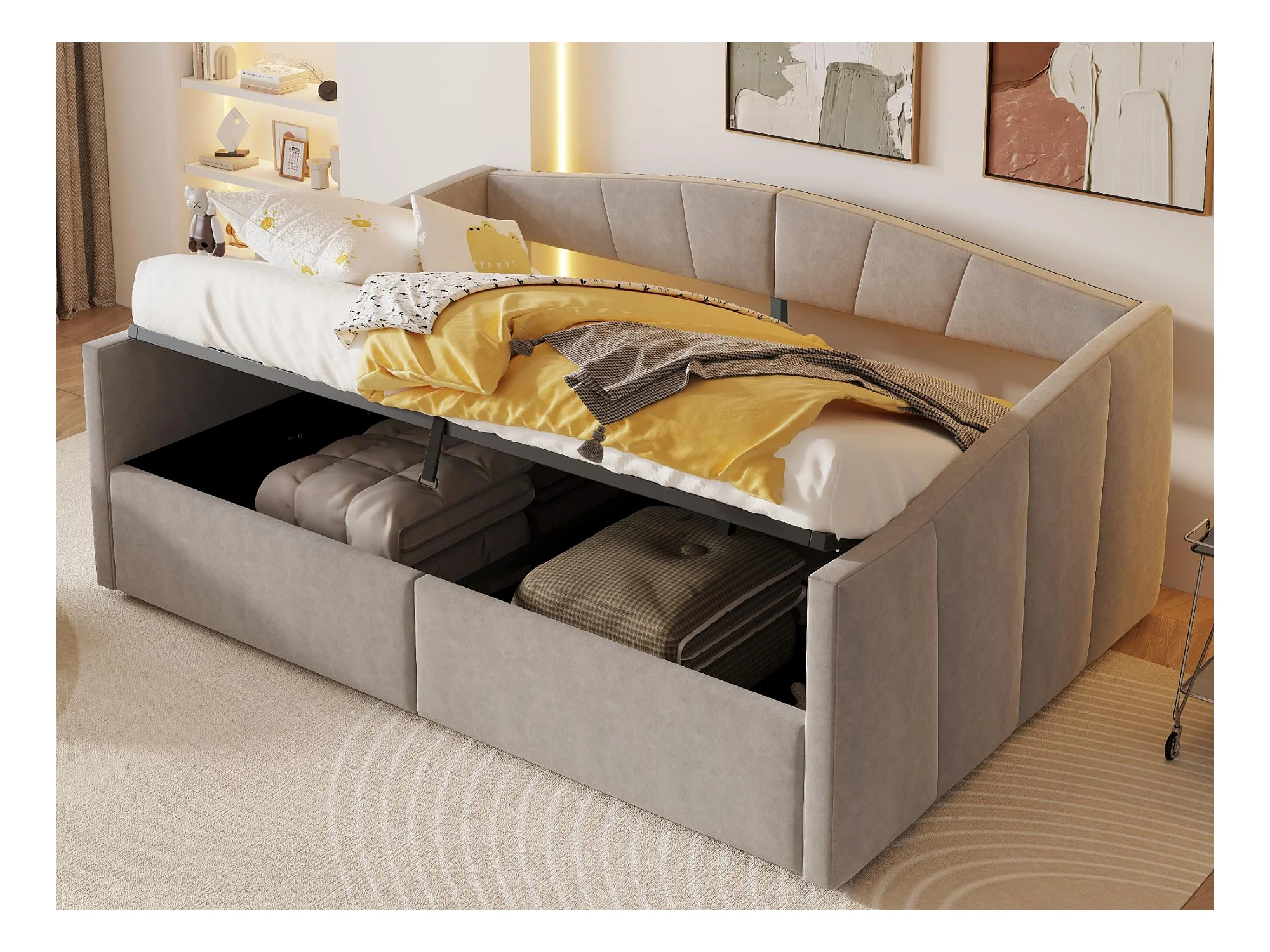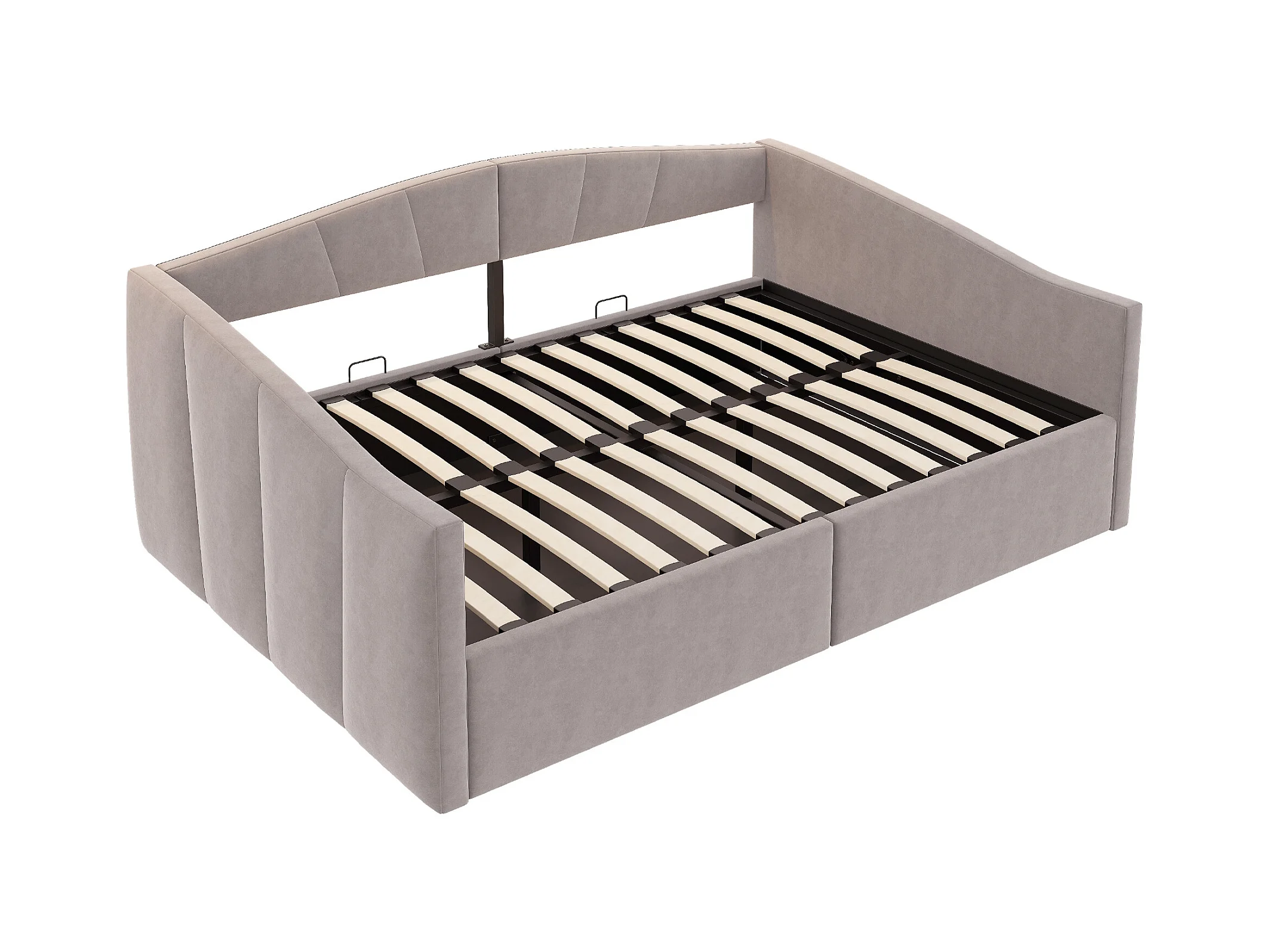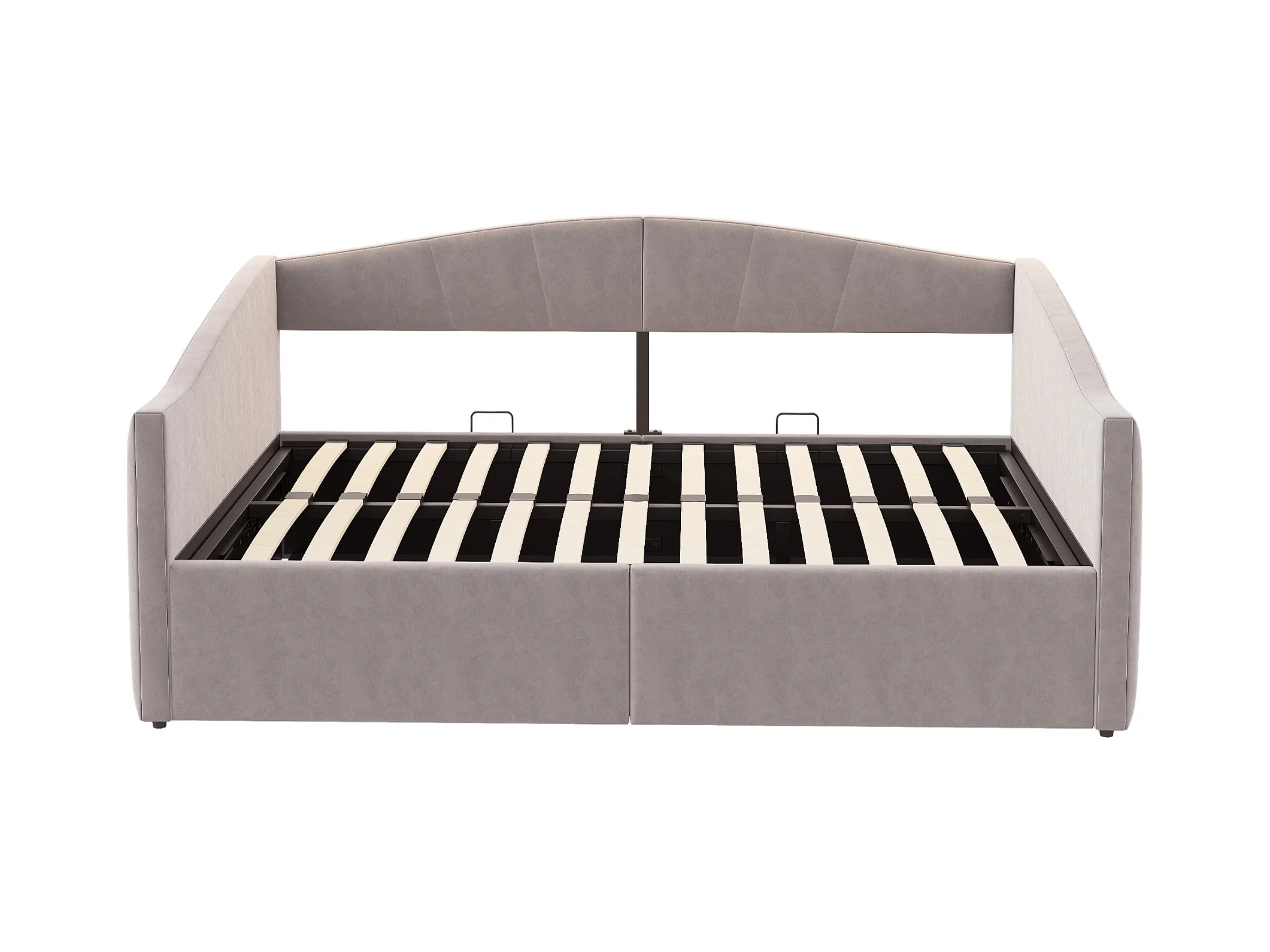 Canapé-lit rembourré 140x200cm - avec sommier à lattes - tissu velours - Gris clair (matelas non inclus)