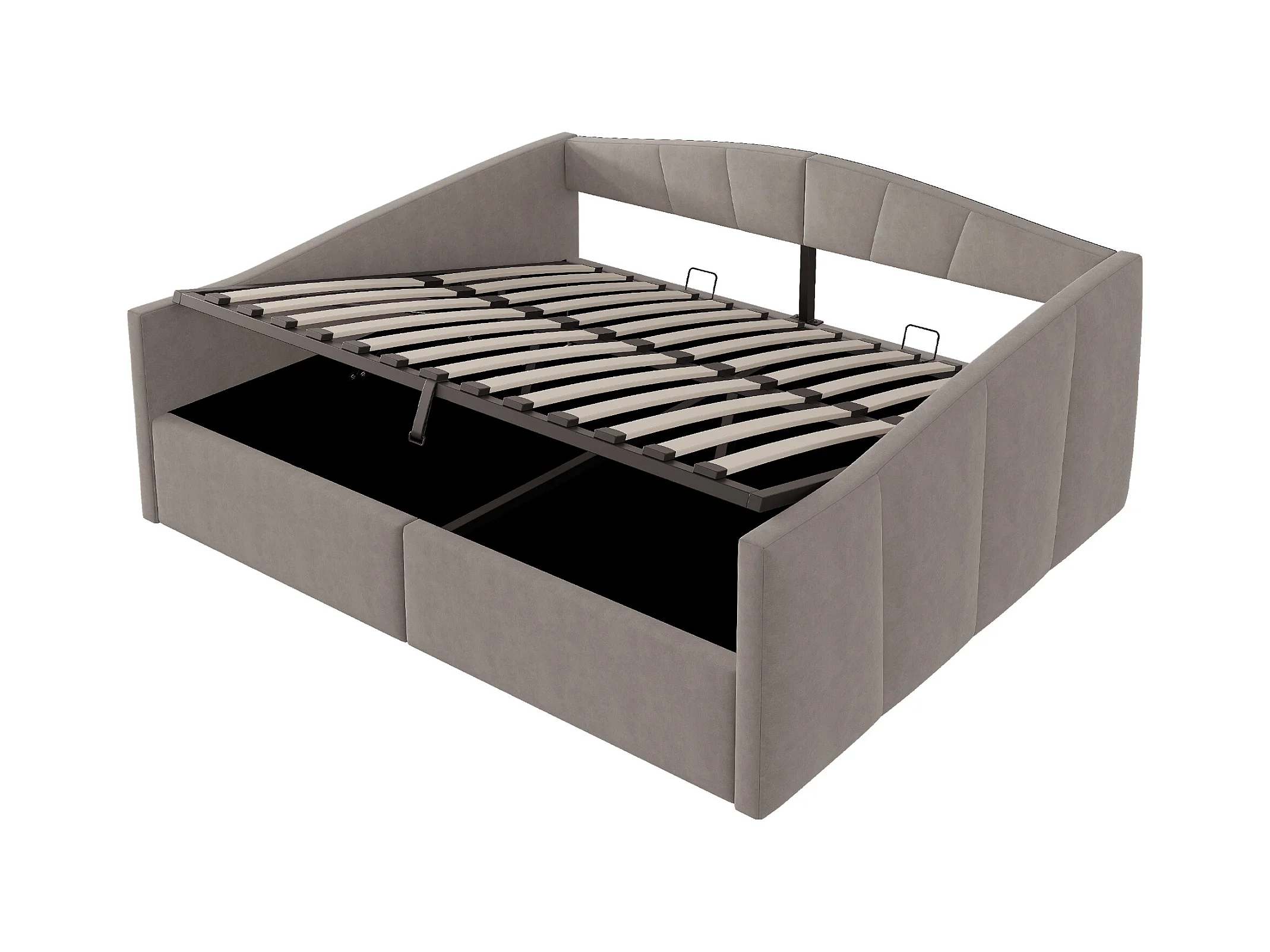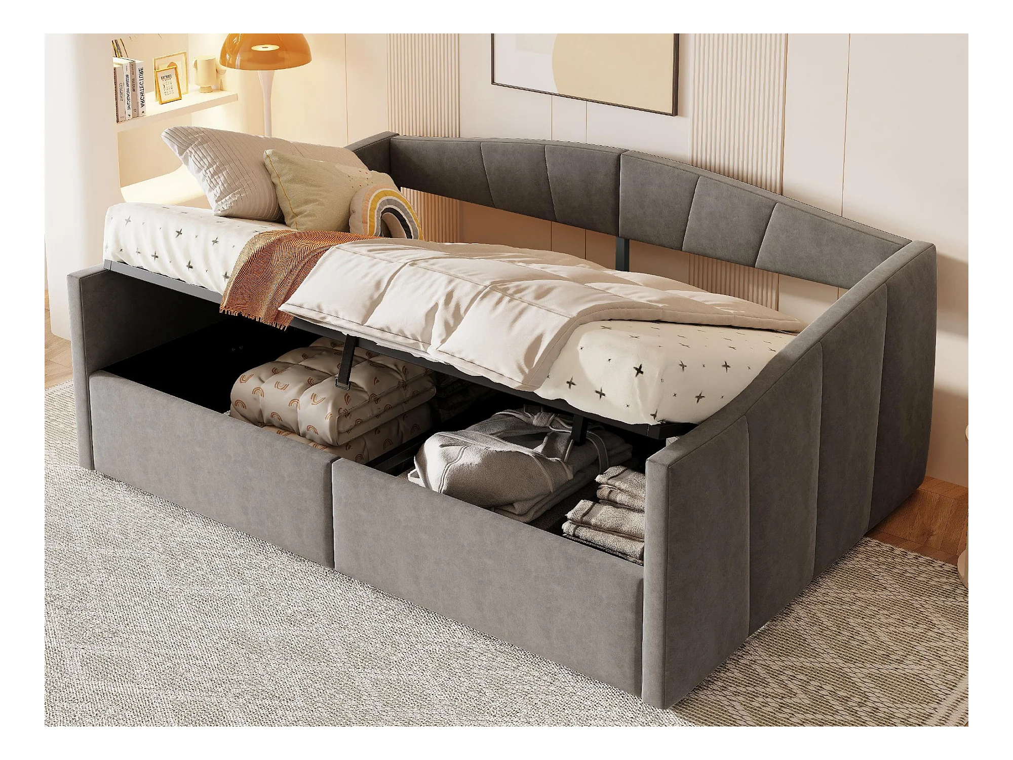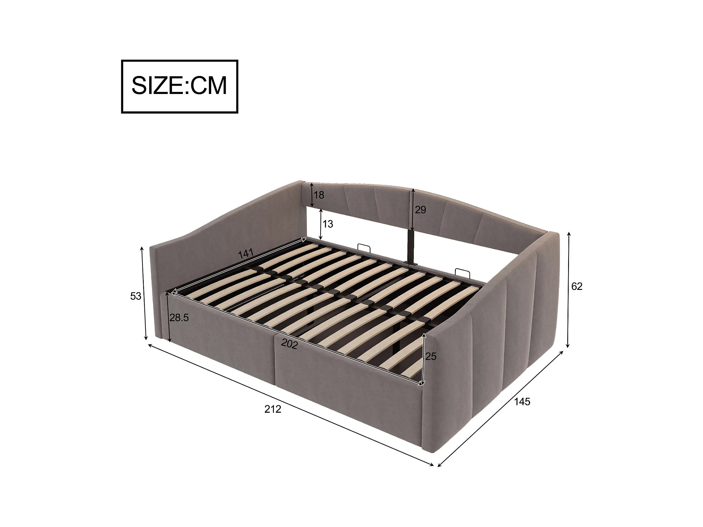 Canapé-lit rembourré 140x200cm - avec sommier à lattes - tissu velours - Gris (matelas non inclus)