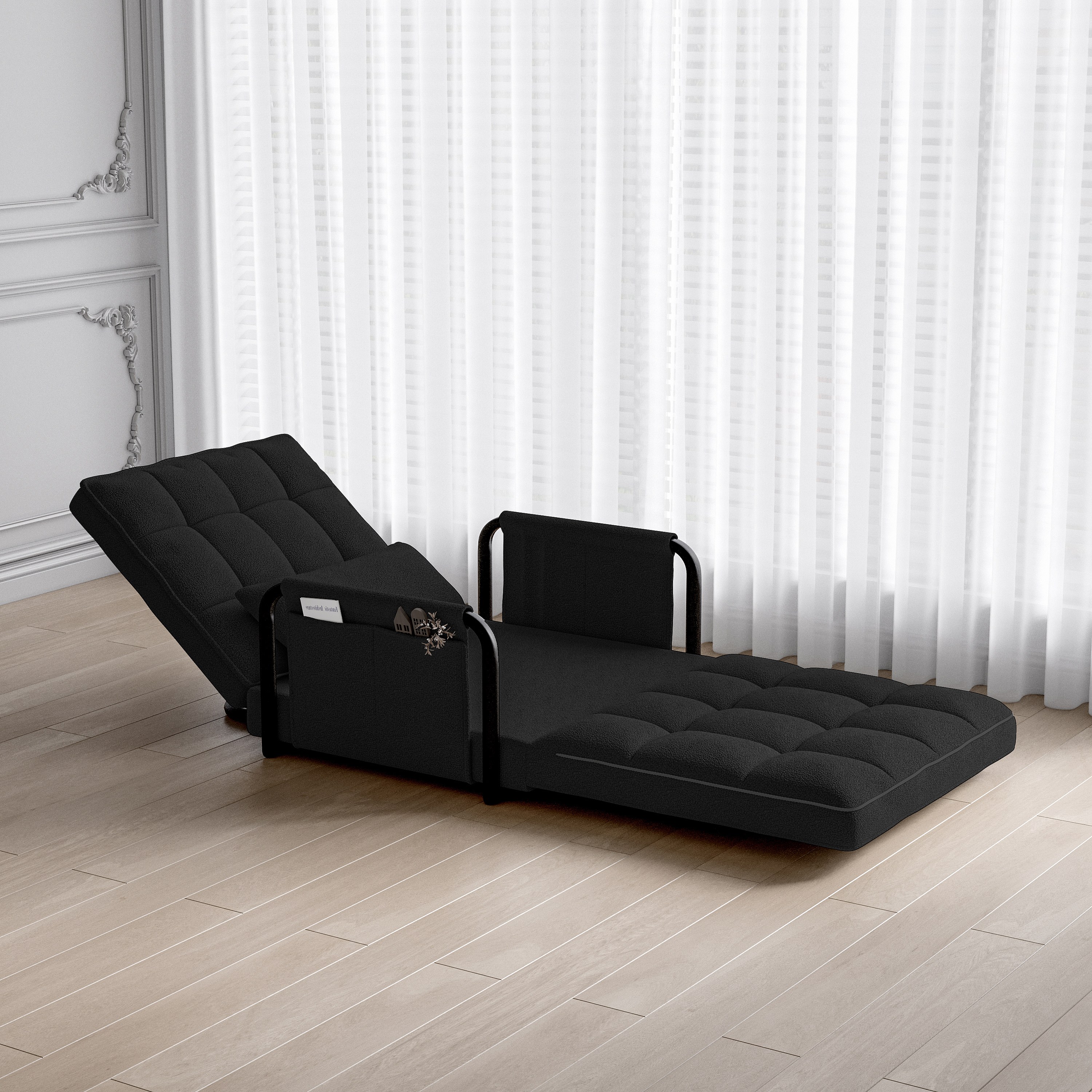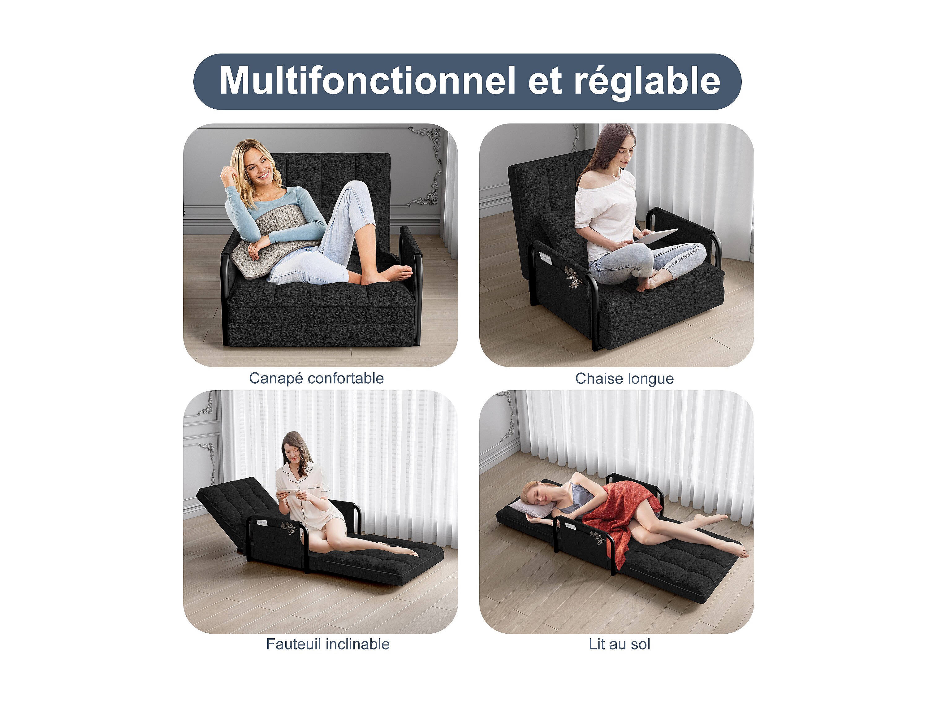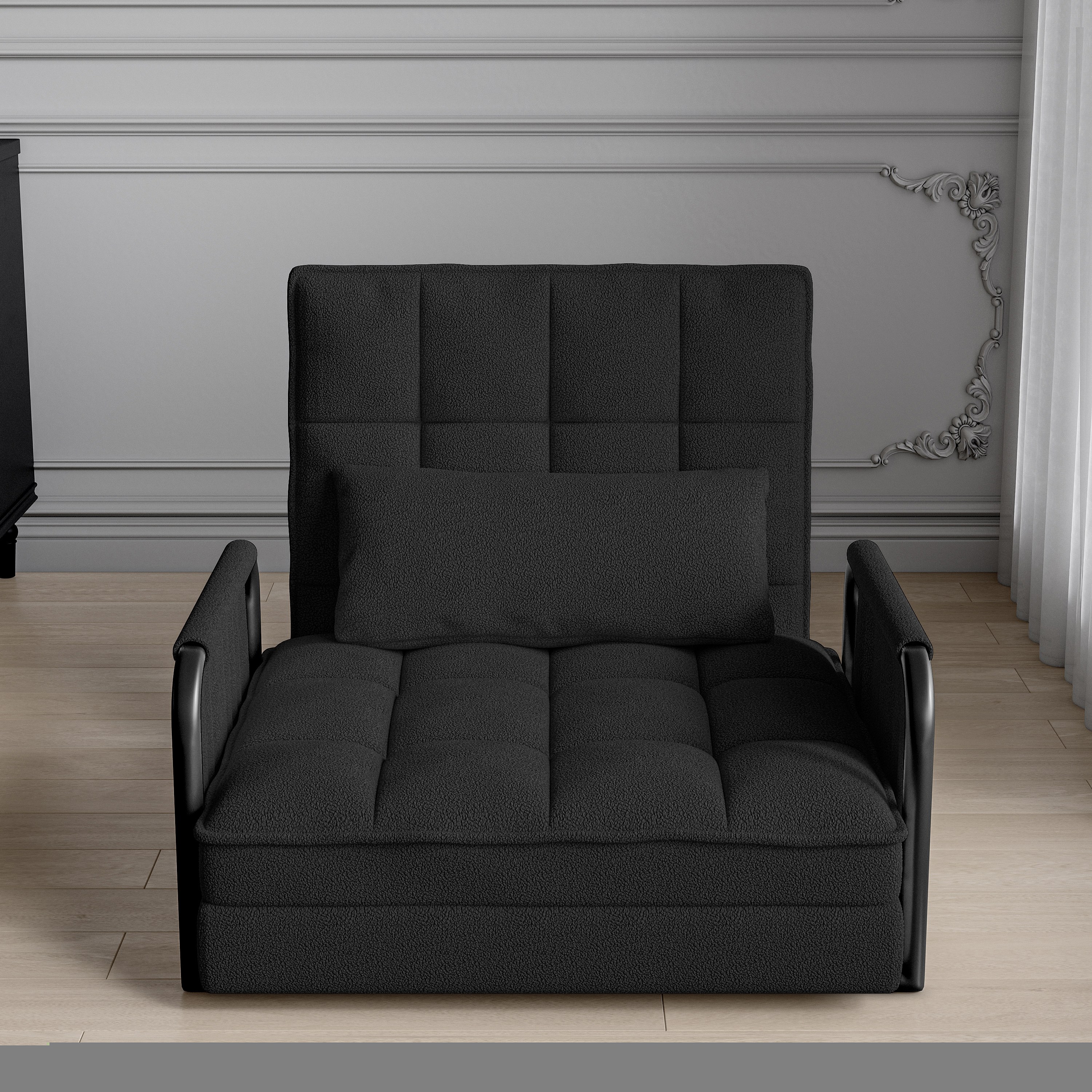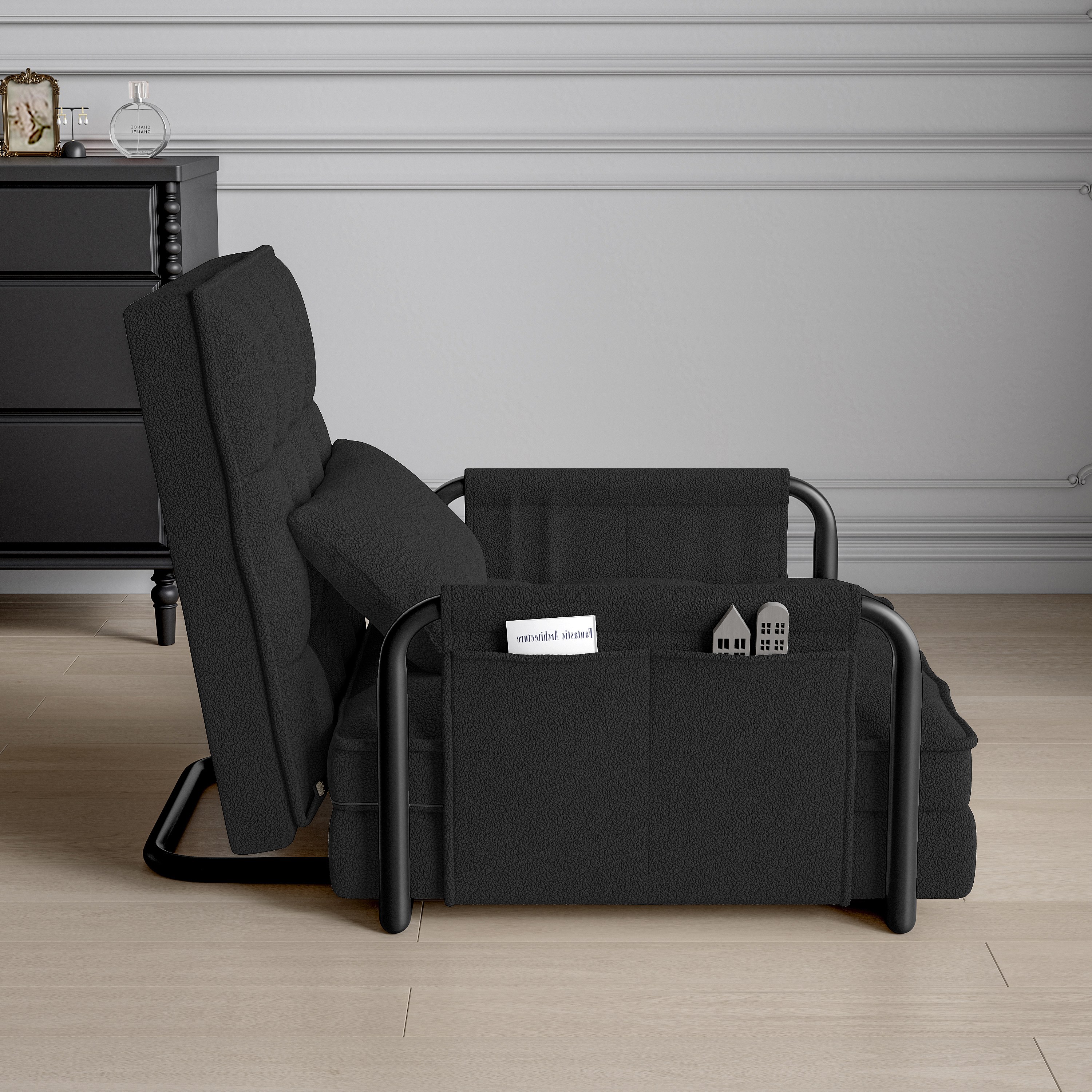 Canapé Lit Simple Convertible, 4 en 1 Canapé-lit Fauteuil, 5 Positions réglables, Coussin et Accoudoirs Métal, Laine d’agneau, Noir