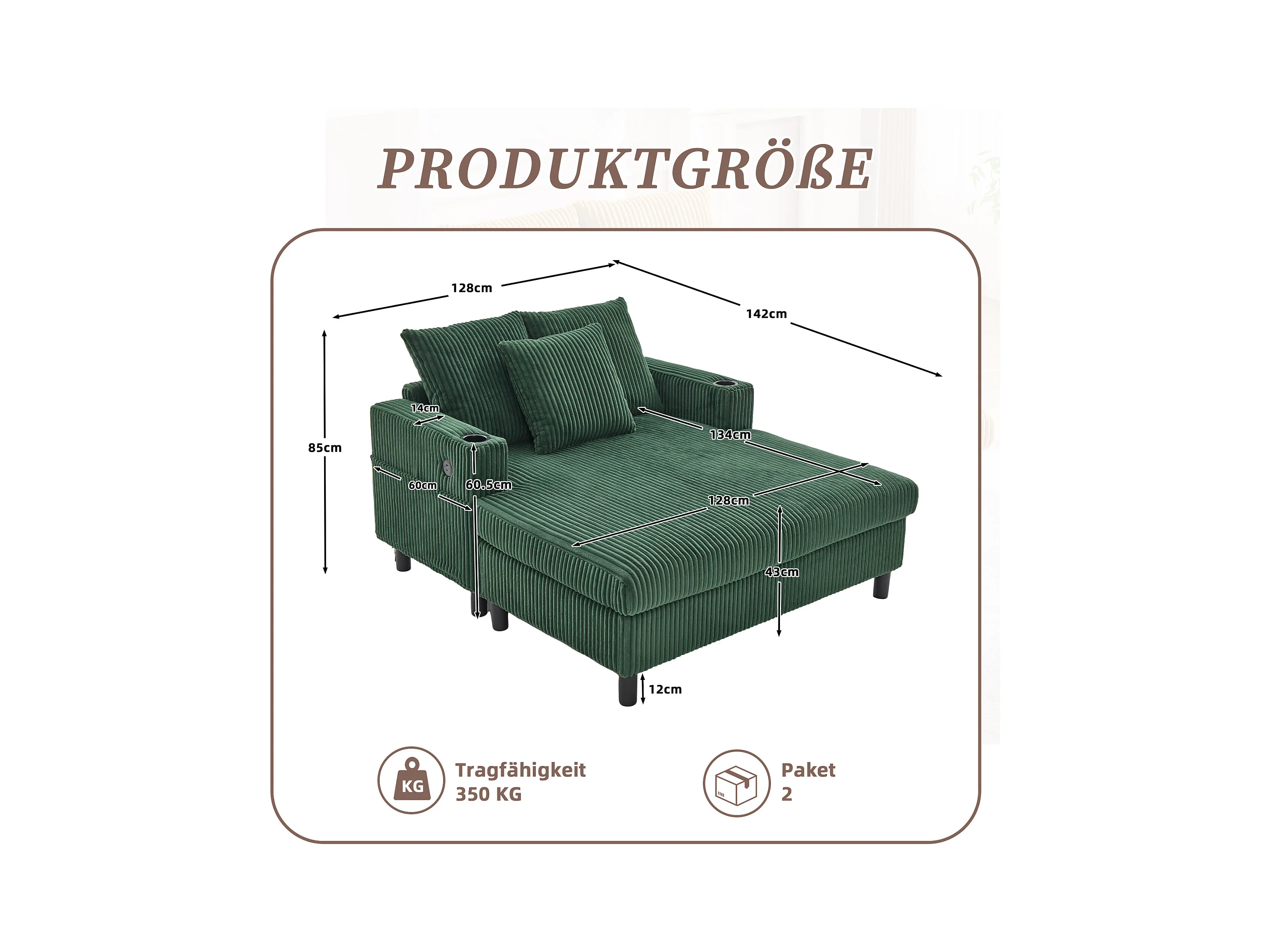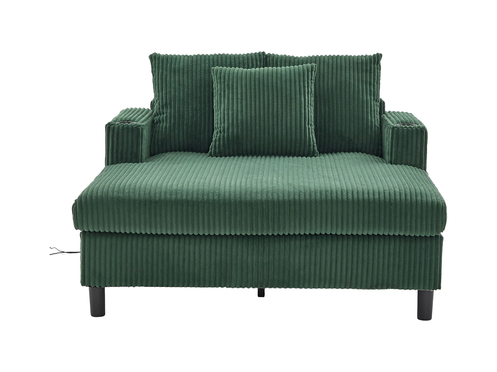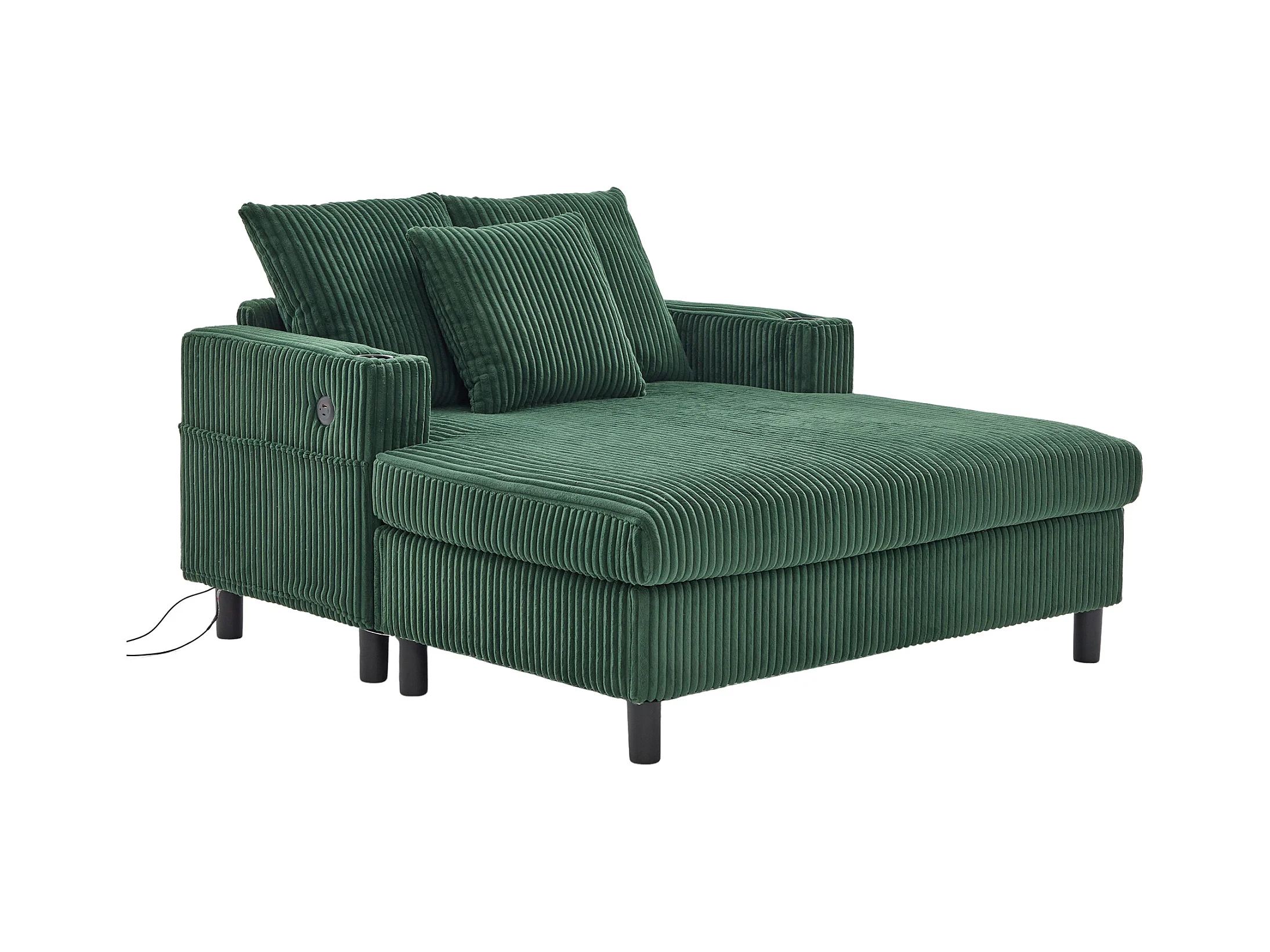 Canapé lounge en peluche vert avec port USB, éclairage LED et porte-gobelets