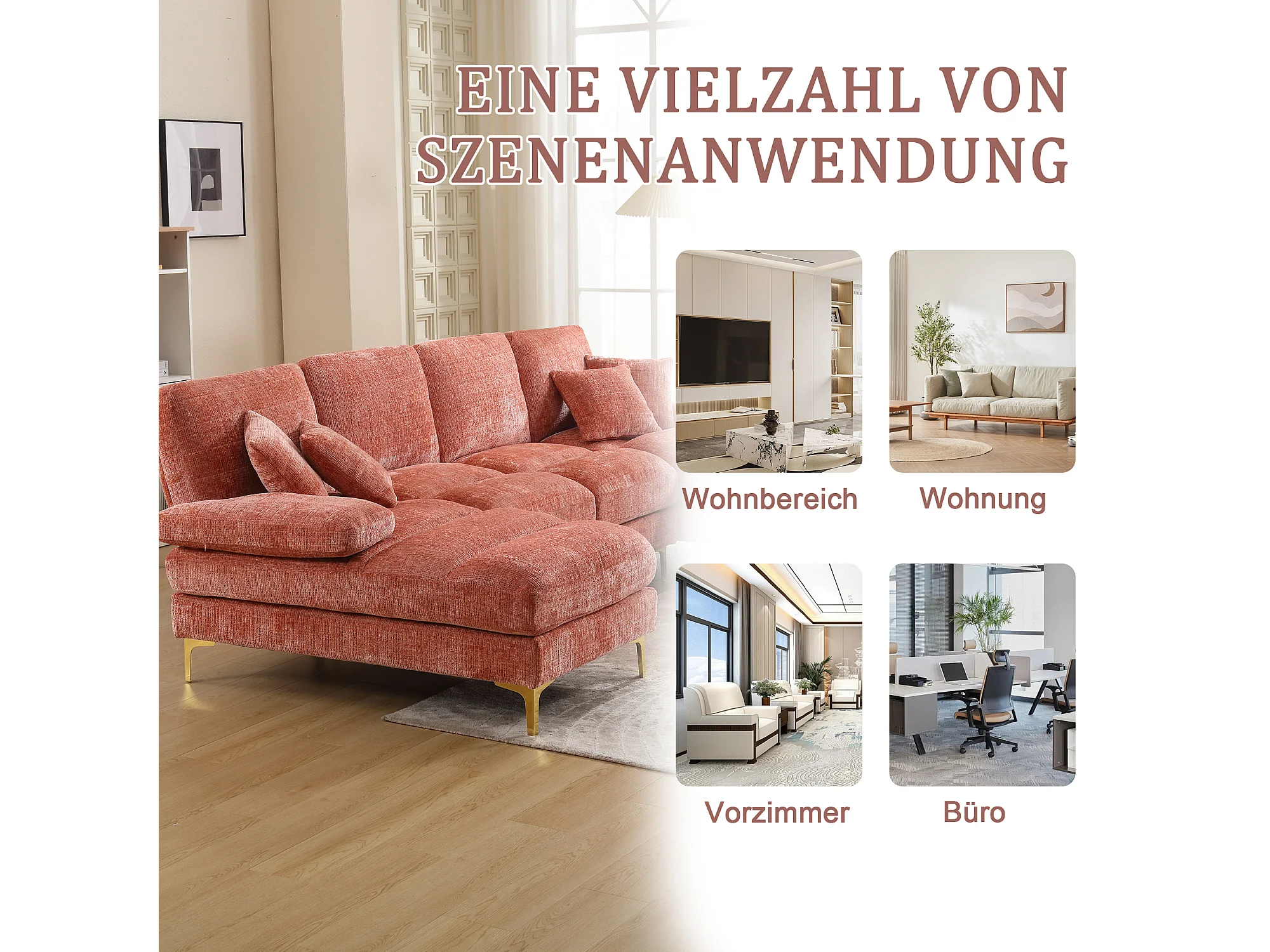 Canapé 4 Places Panoramique en Chenille Rose à Double Couche (272x136x88 cm) - Pieds Dorés pour un Confort Exceptionnel