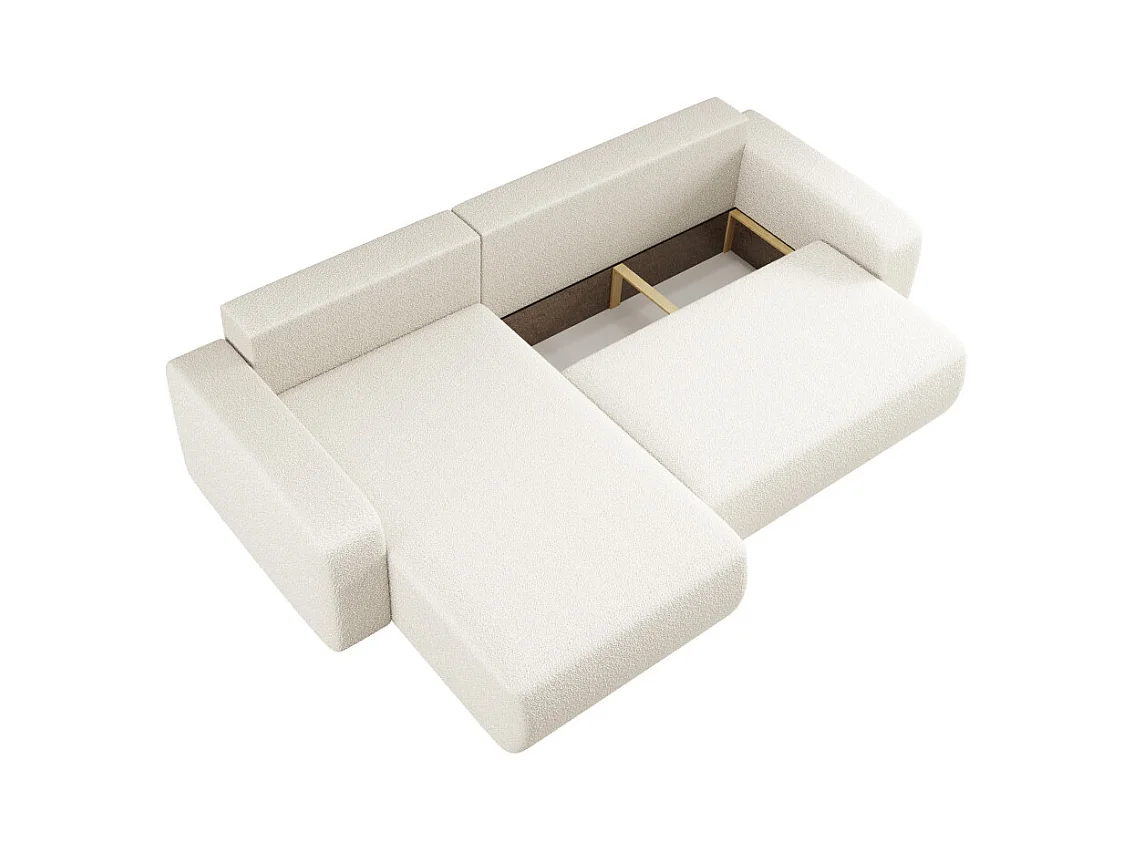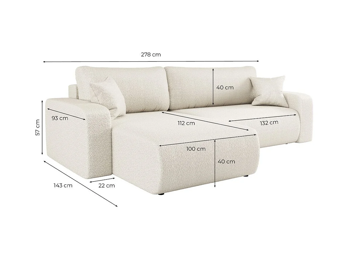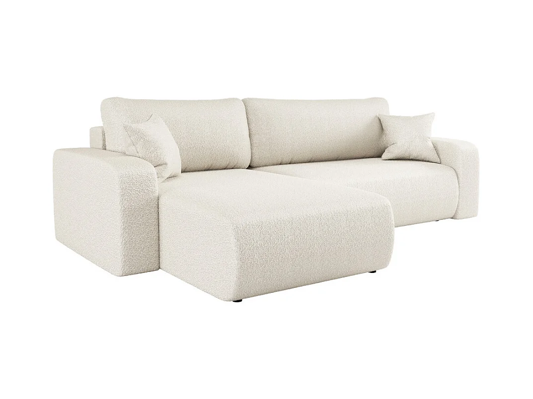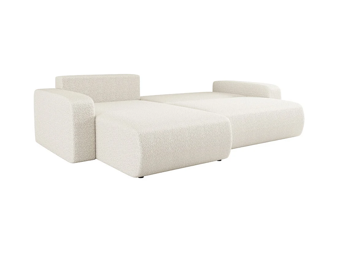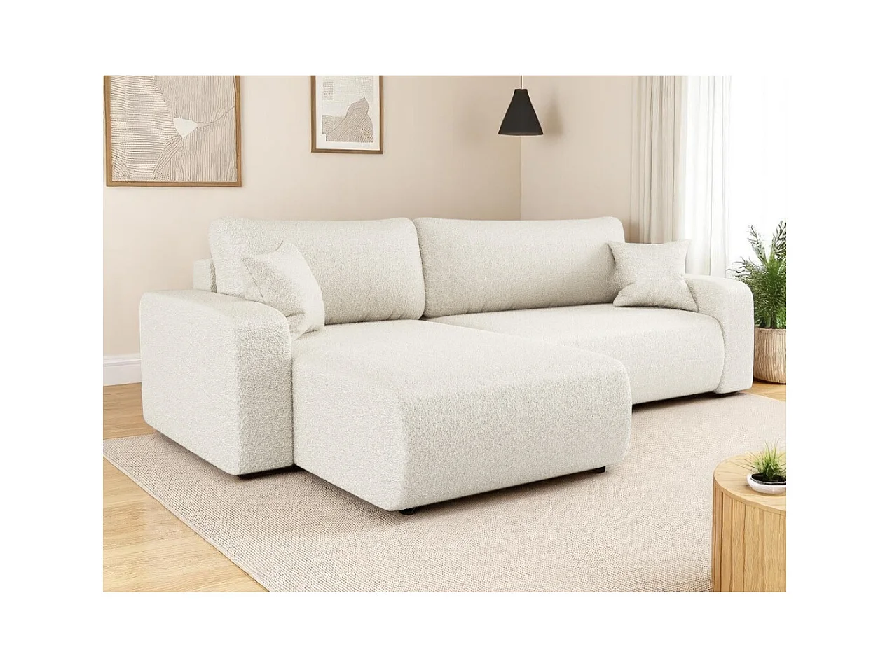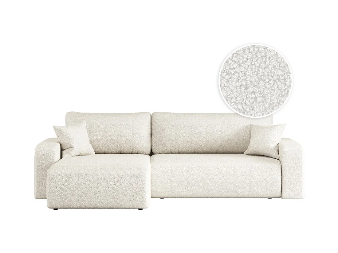 Canapé ALYA d'angle max réversible et convertible 5 places en tissu bouclette - Blanc