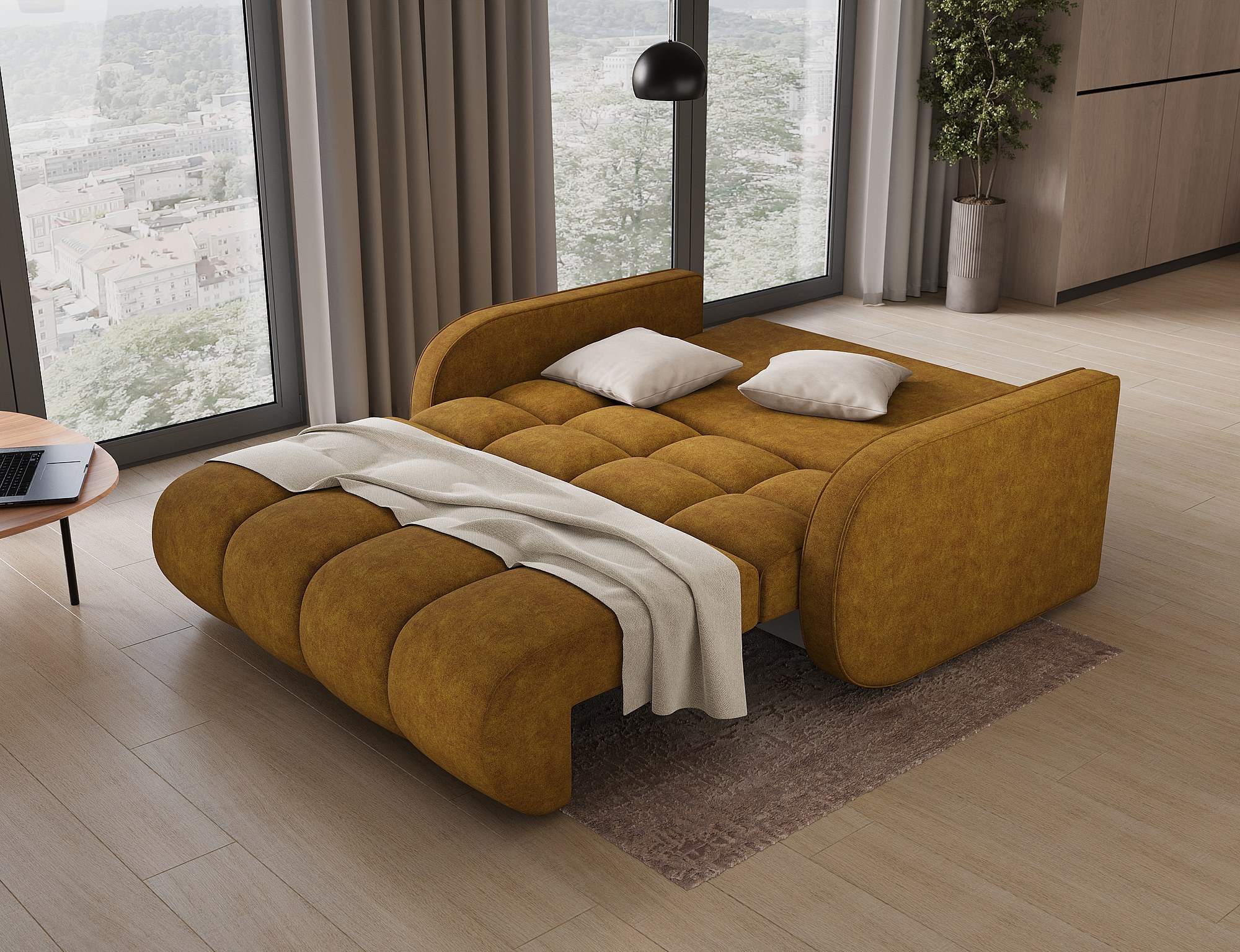 Canapé convertible tissu DENVERS – Avec coffre de rangement-Jaune