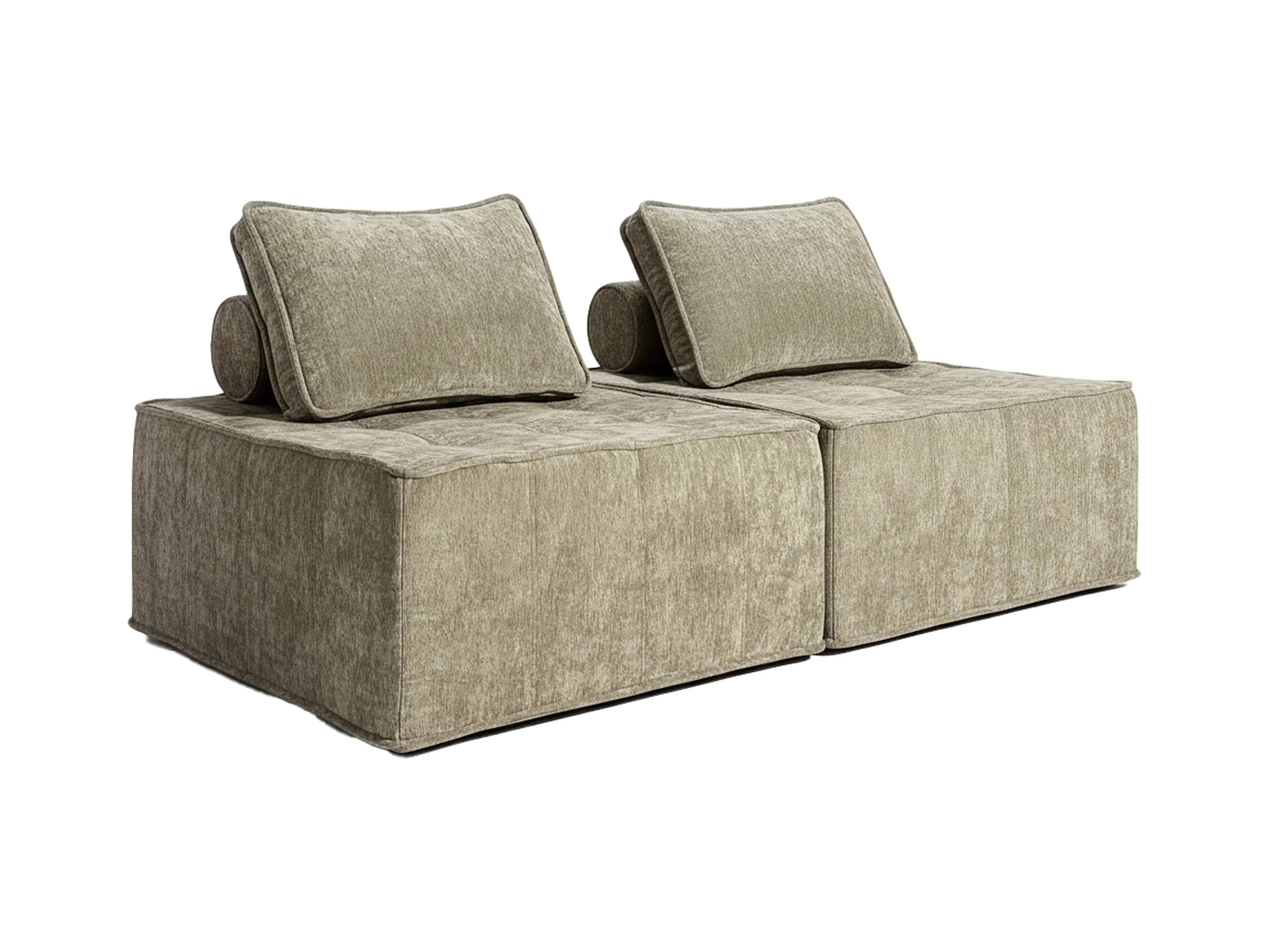 Canapé modulable 2 places en tissu avec coussins taupe