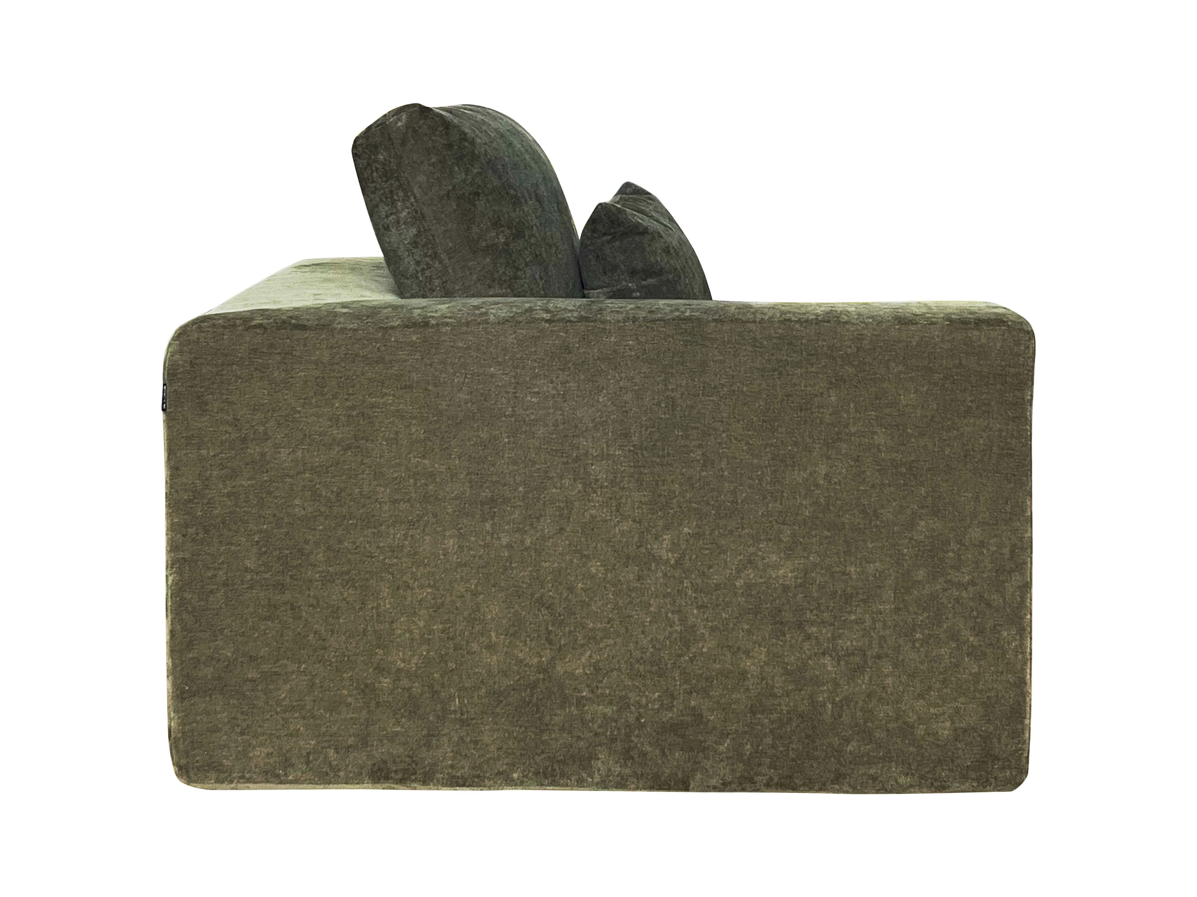 Canapé modulable 2 places en tissu avec coussins vert