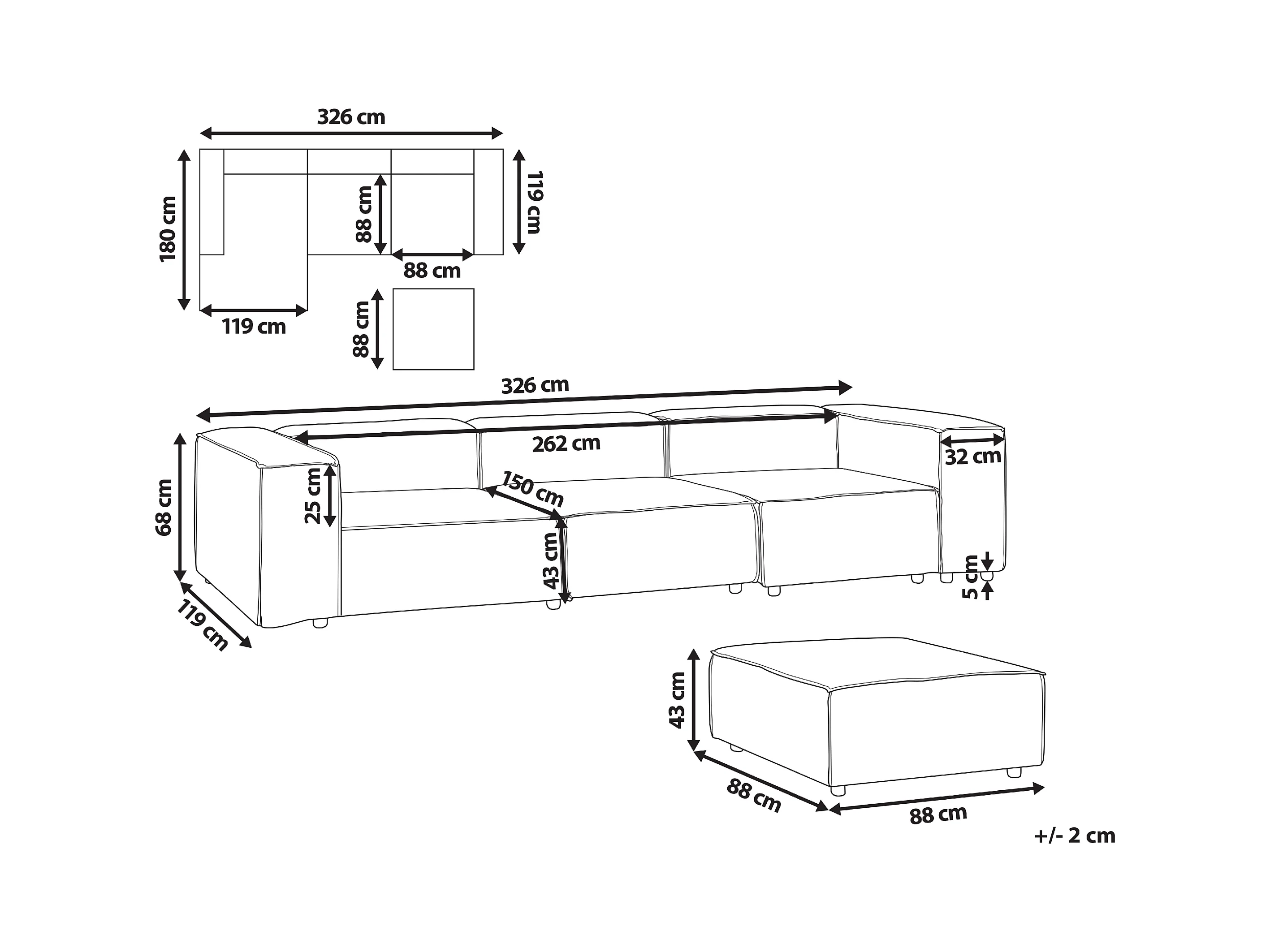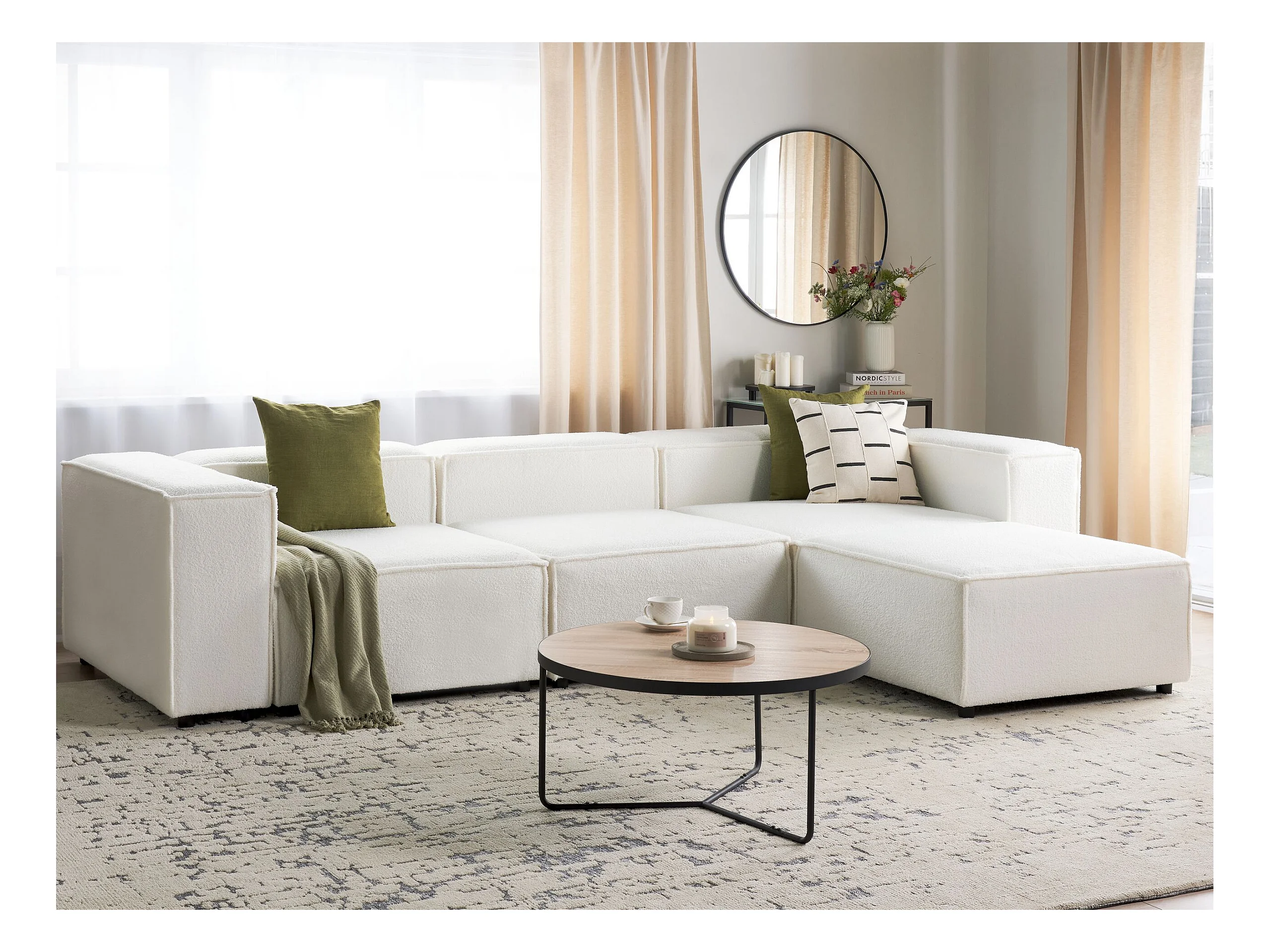 Canapé d'angle modulable 3 places ARDAL Bouclé Blanc avec ottoman