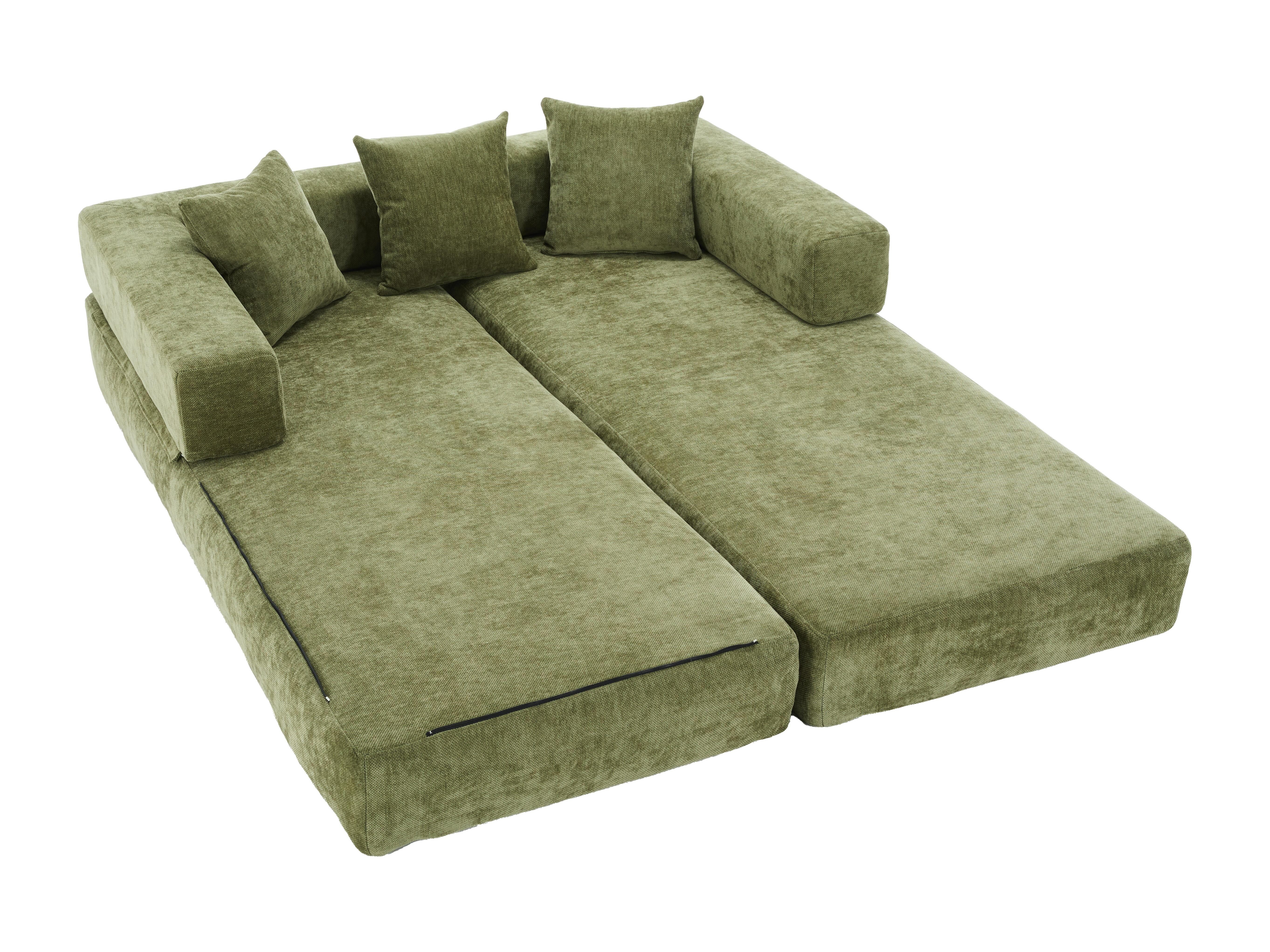 Canapé modulable en chenille vert - Canapé convertible en plusieurs formes - 3 coussins inclus - Parfait pour salon, chambre et bureau