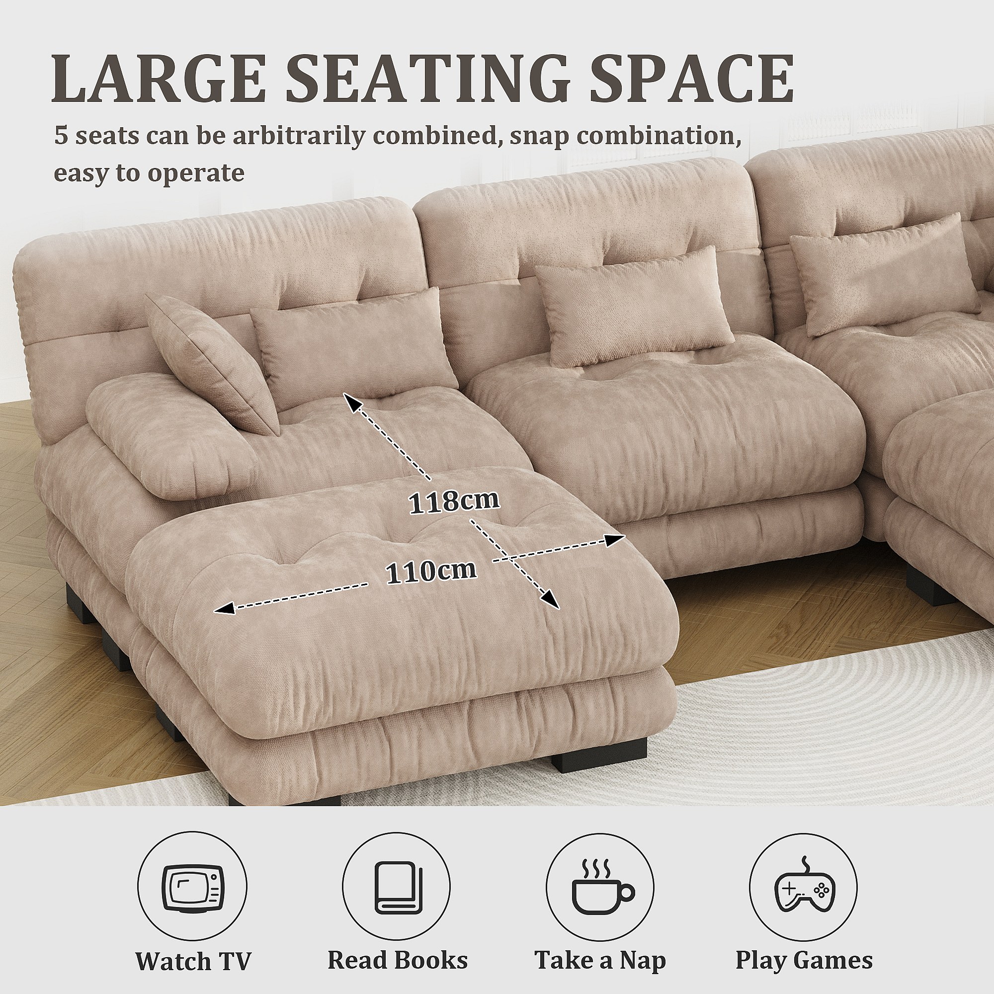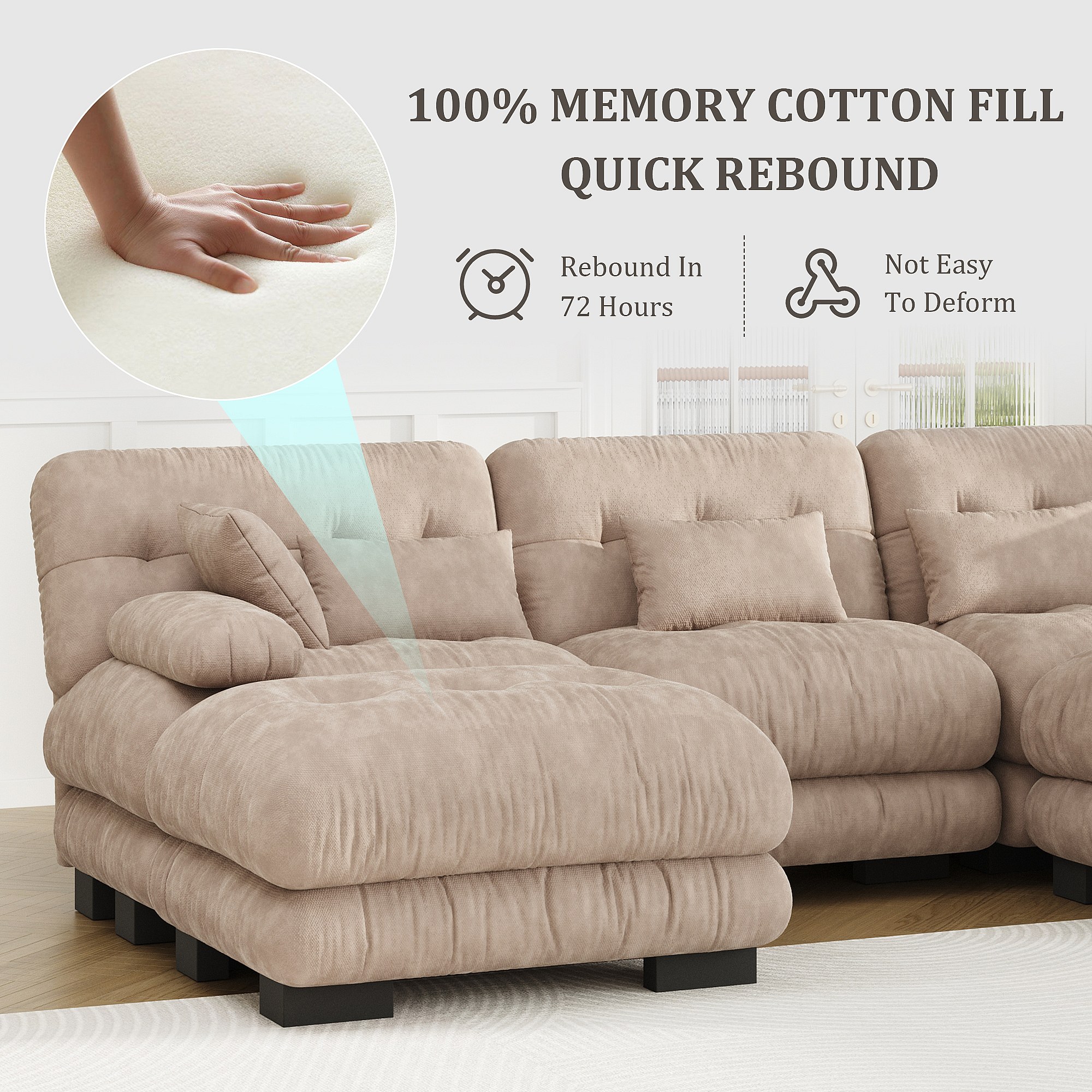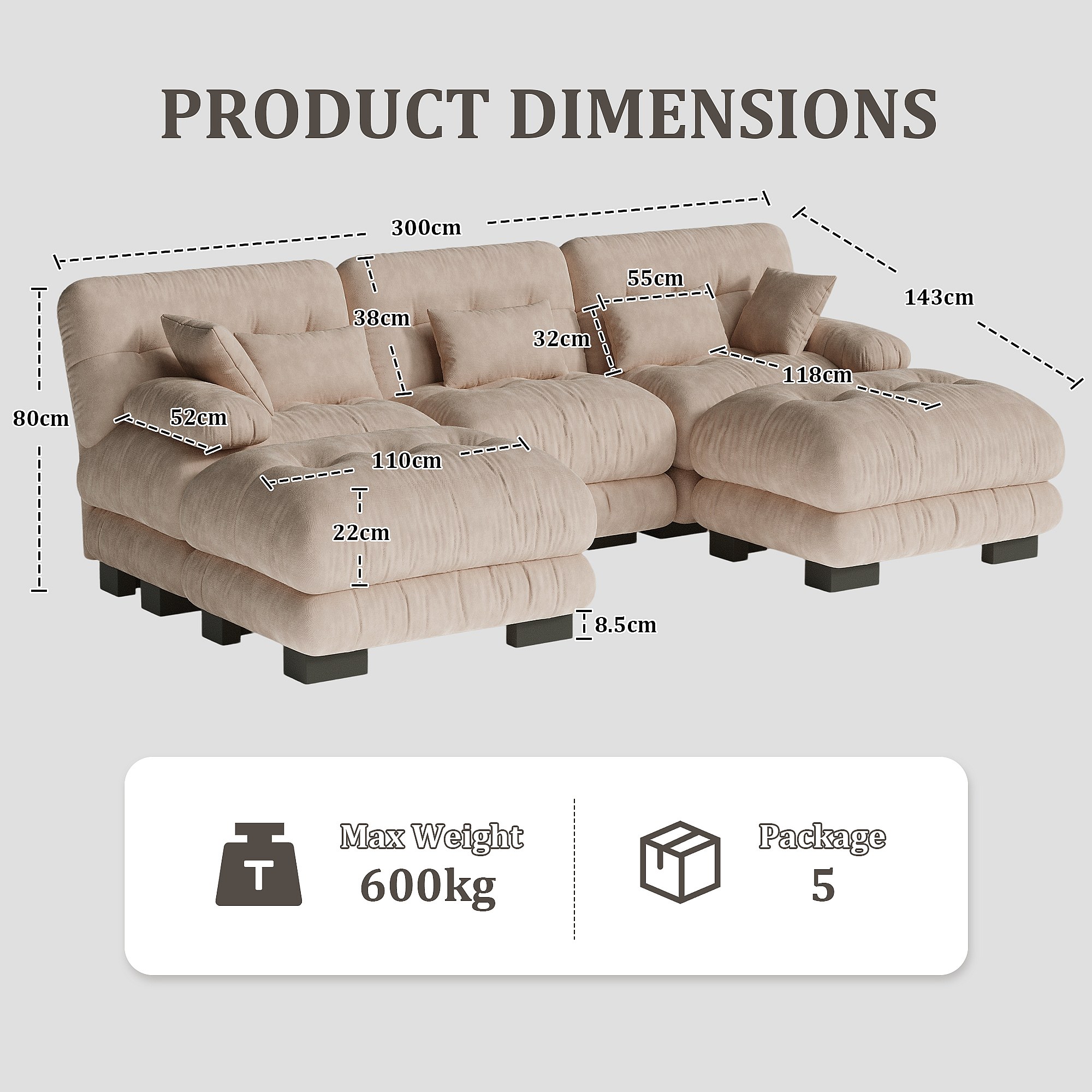 Canapé 5 Places en Velours - canapé d'angle modulable - Kaki - 300 x 143 x 80 cm - Confort et Douceur Absolus pour Votre Salon