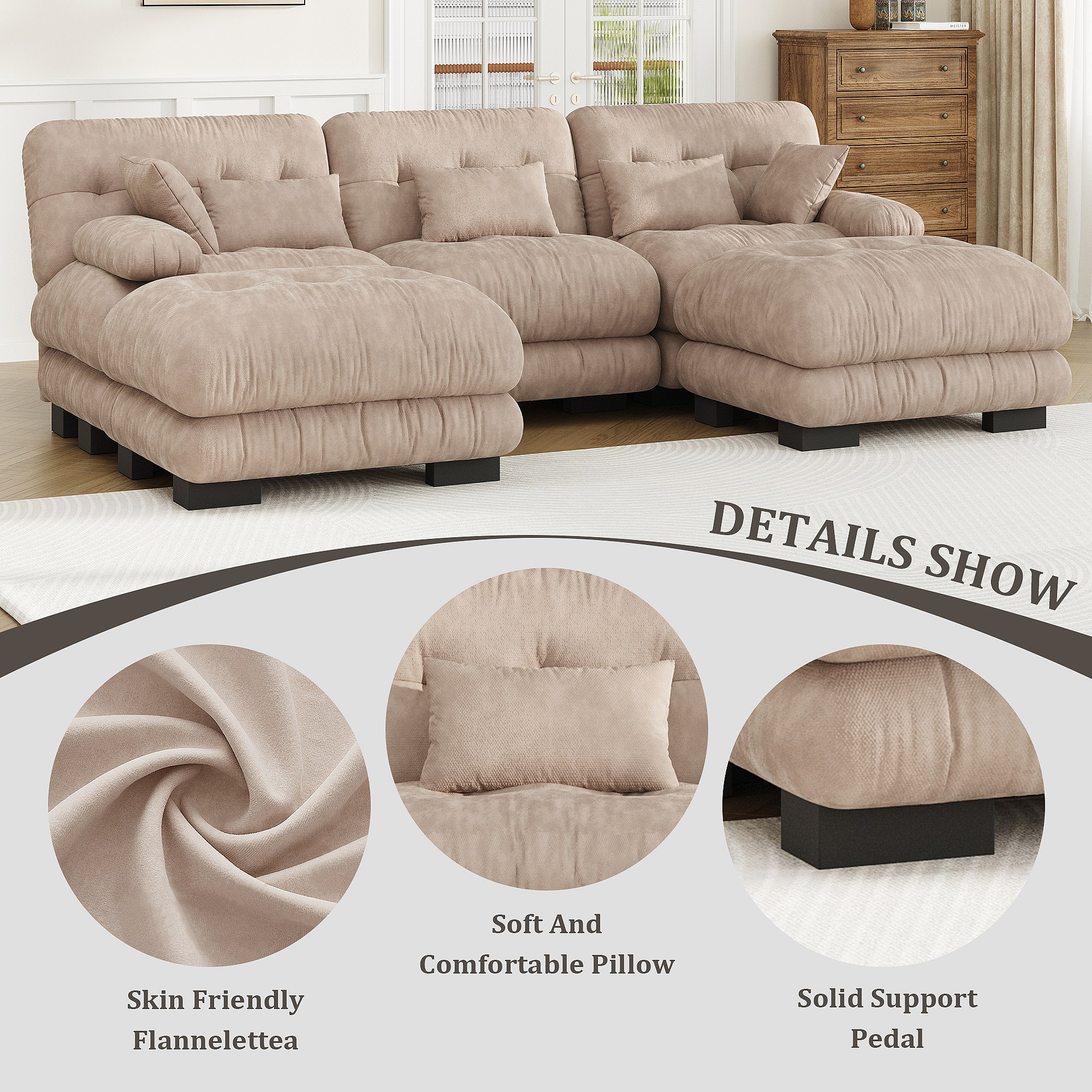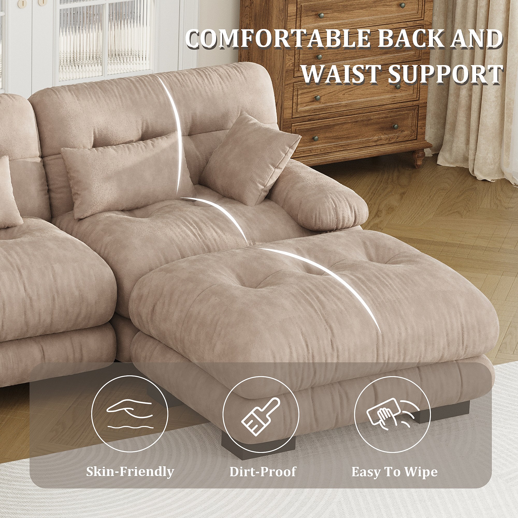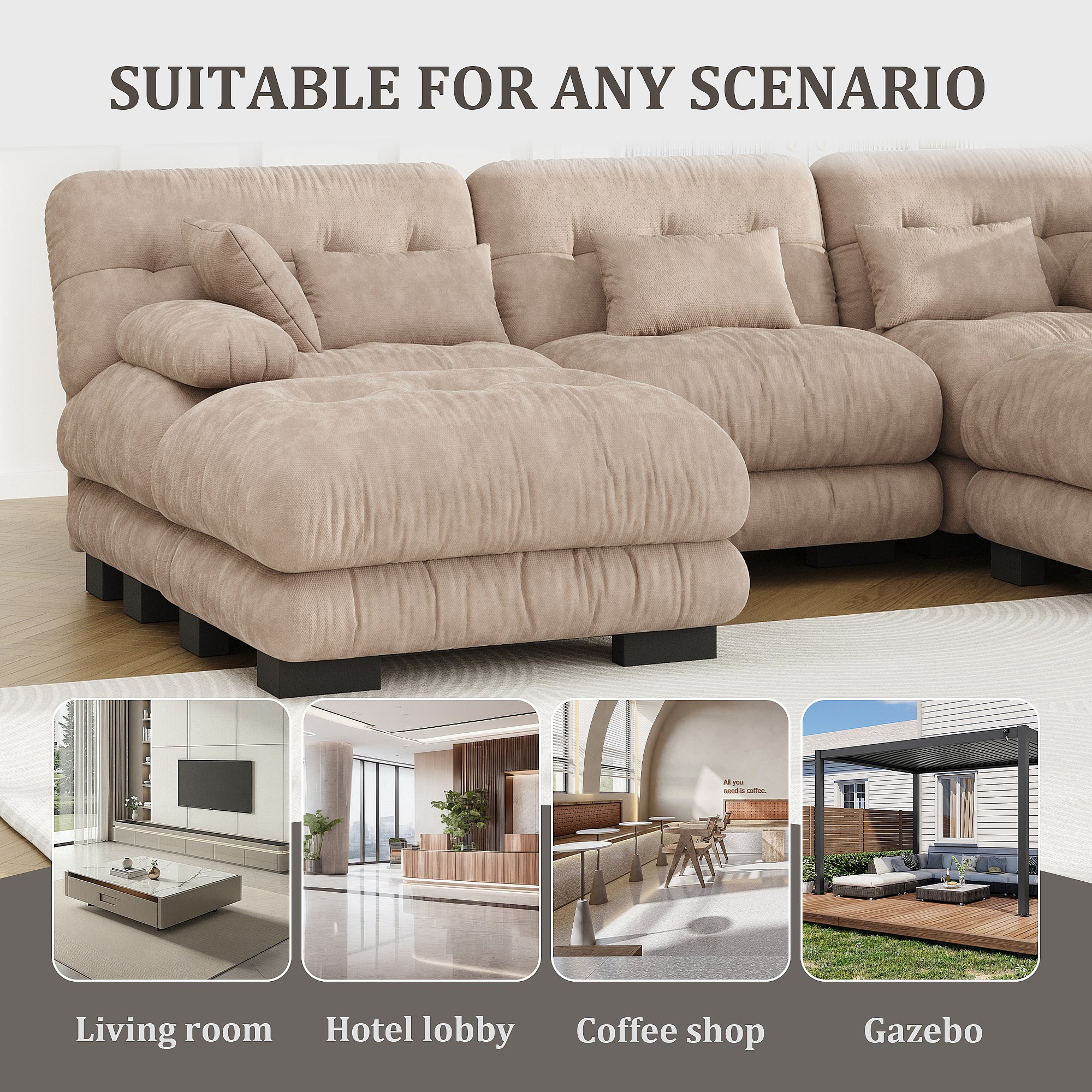 Canapé 5 Places en Velours - canapé d'angle modulable - Kaki - 300 x 143 x 80 cm - Confort et Douceur Absolus pour Votre Salon
