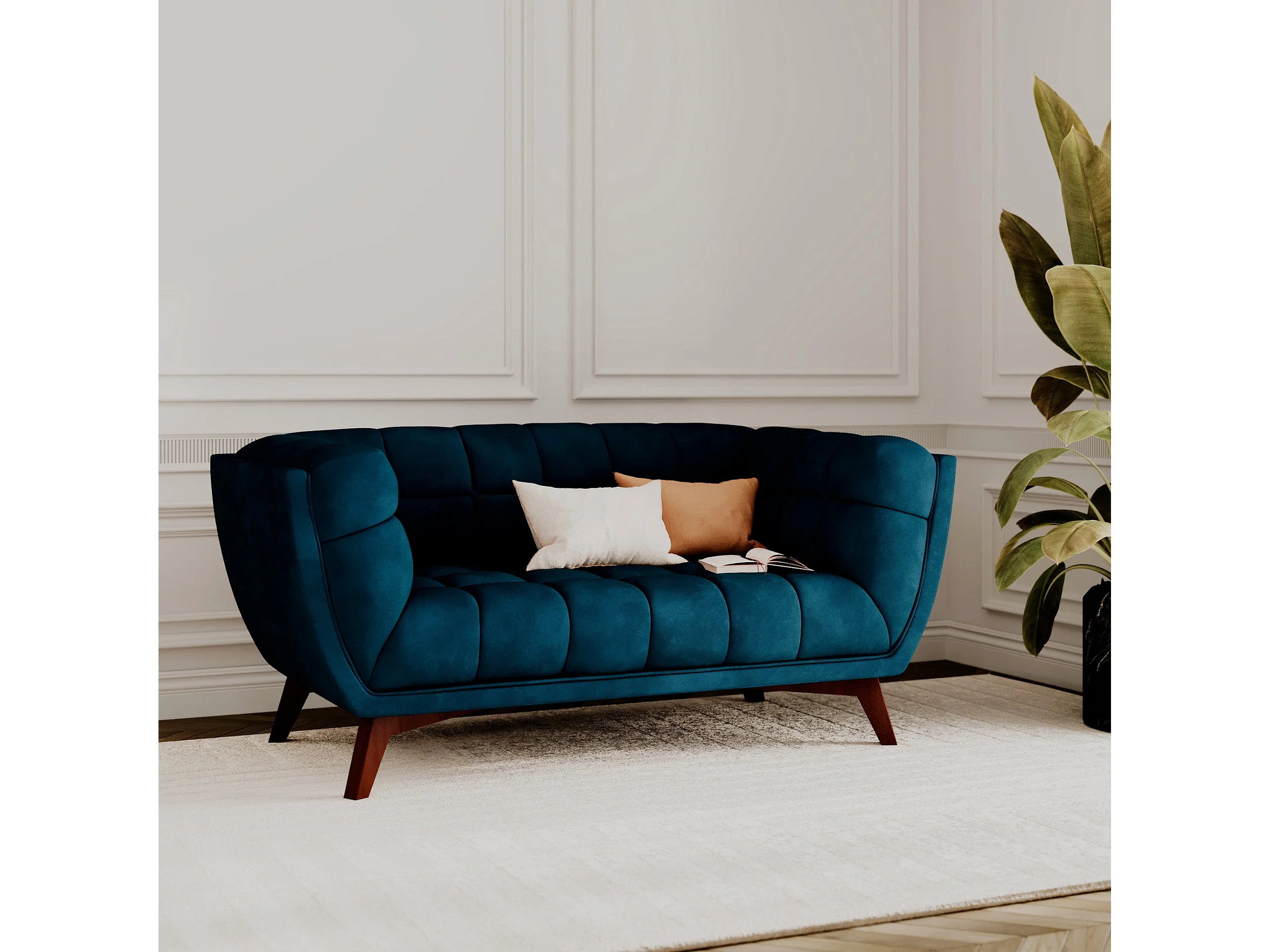 Canapé.2 places en velours bleu foncé - Mona