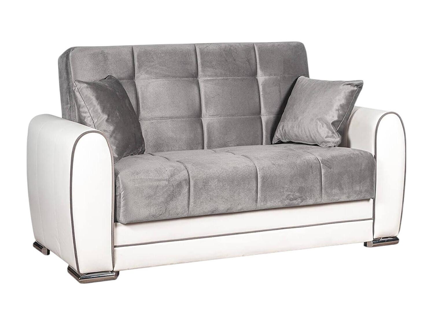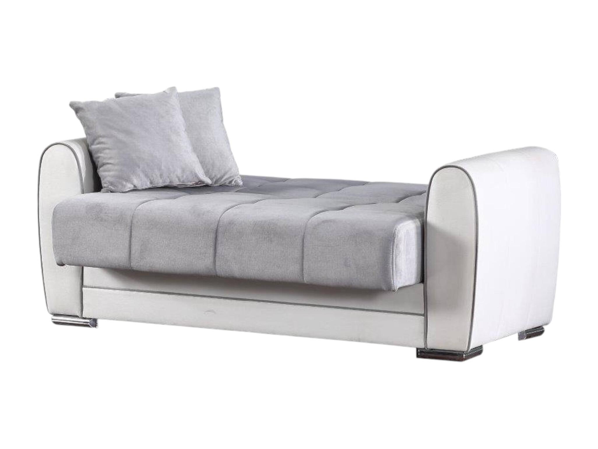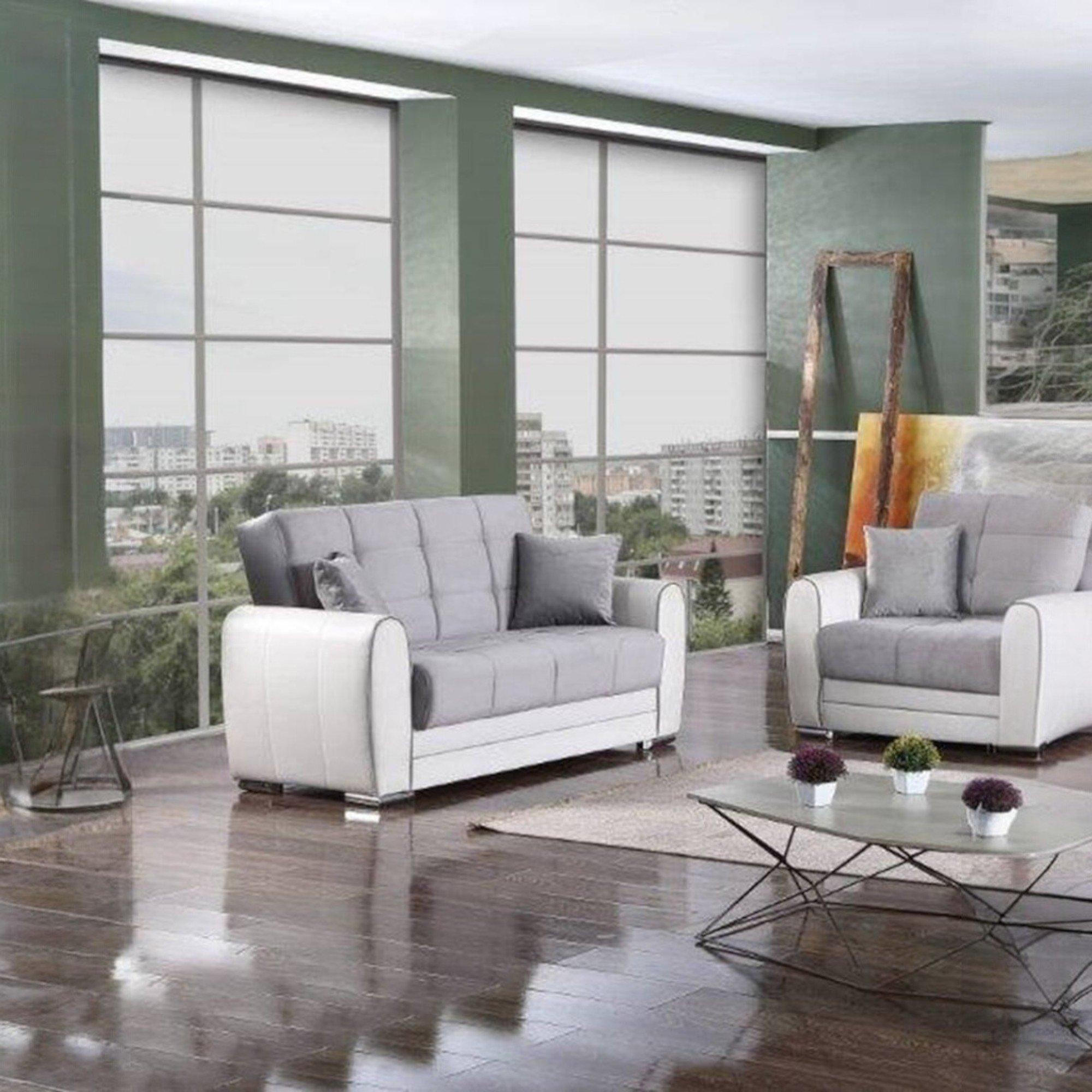 Canapé Pablito, Canapé d'angle conteneur en éco-cuir et tissu, Canapé de salon avec ouverture clic-clac et péninsule réversible, 163x84h91 cm, Blanc et Gris