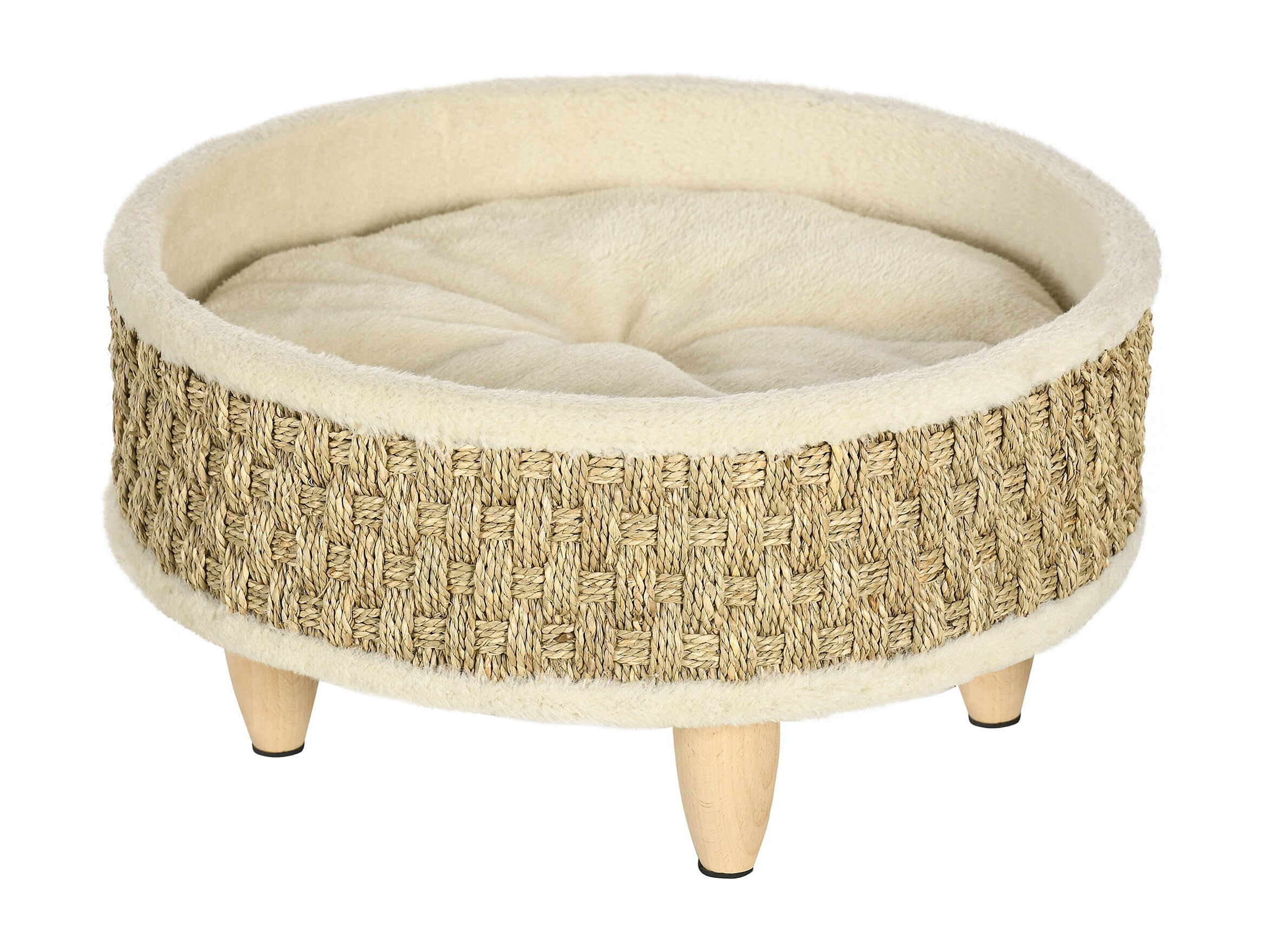Canapé panier lit chien chat style cosy naturel - coussin inclus - dim. Ø 48 x 24,5H cm - bois pin jonc de mer