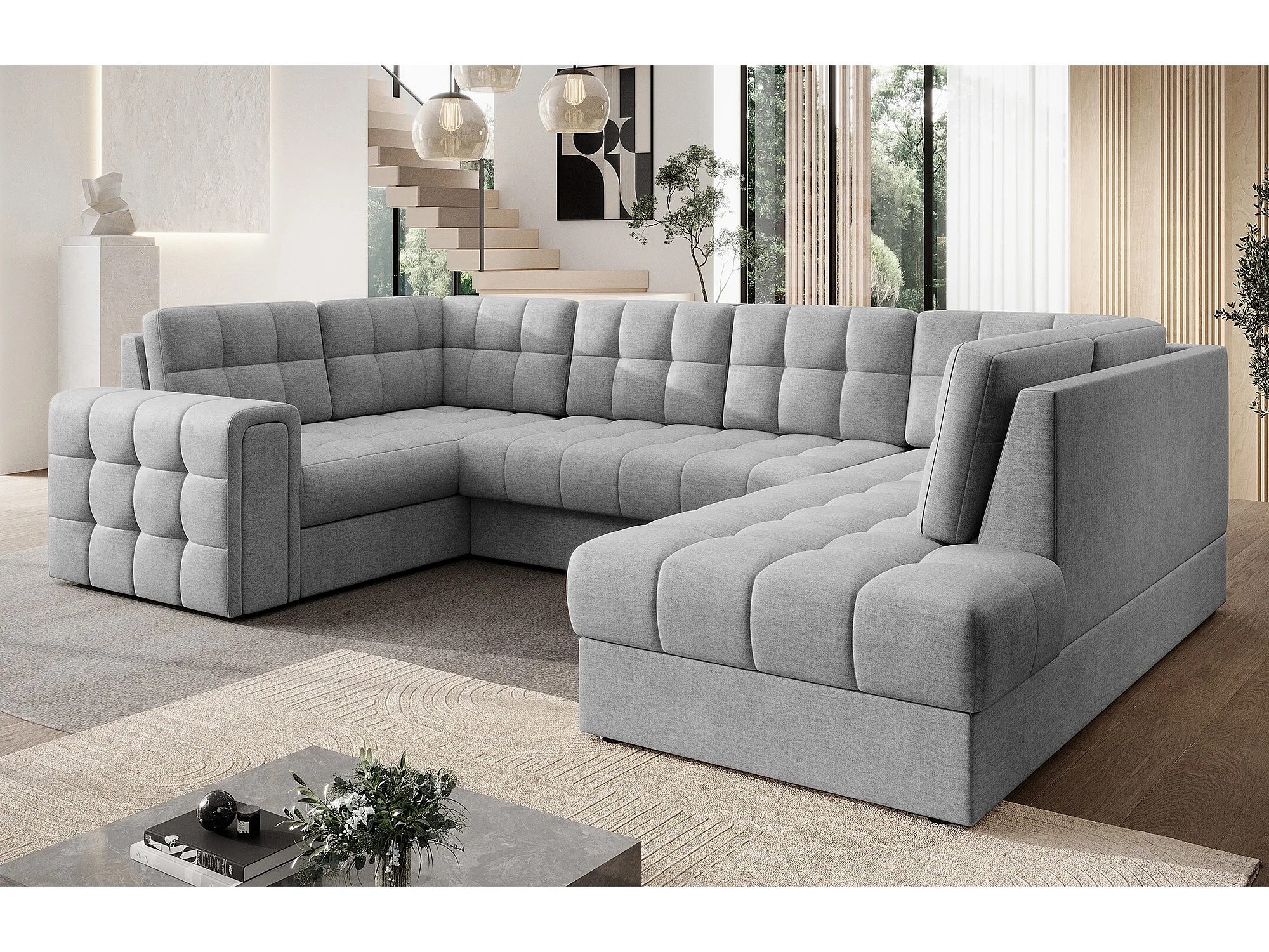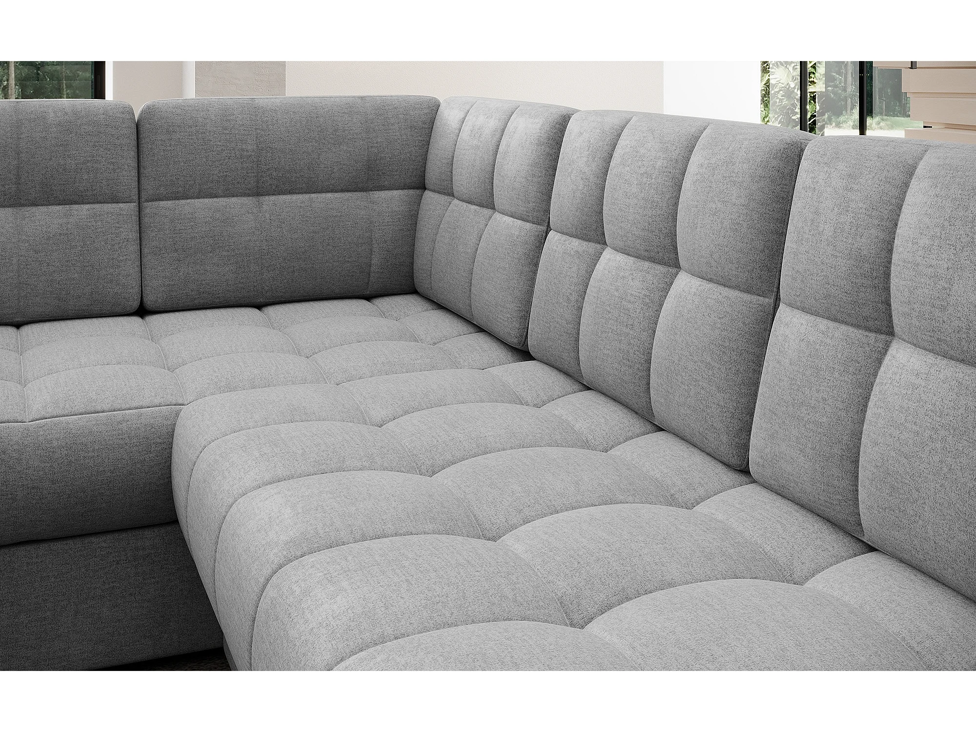 Canapé panoramique BLOOM tissu capitonné - Rangement et convertible-Gris clair-Coffre à droite
